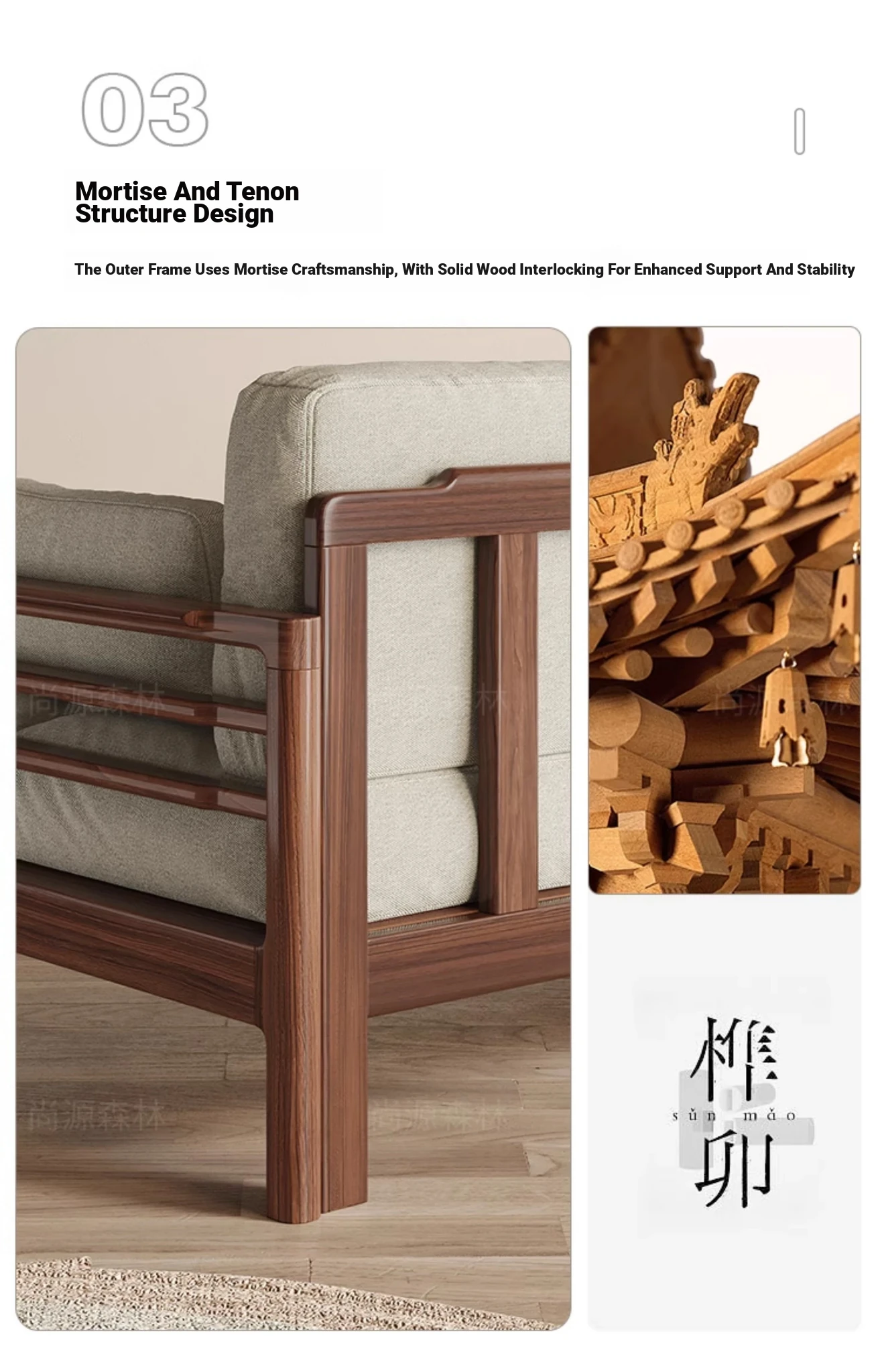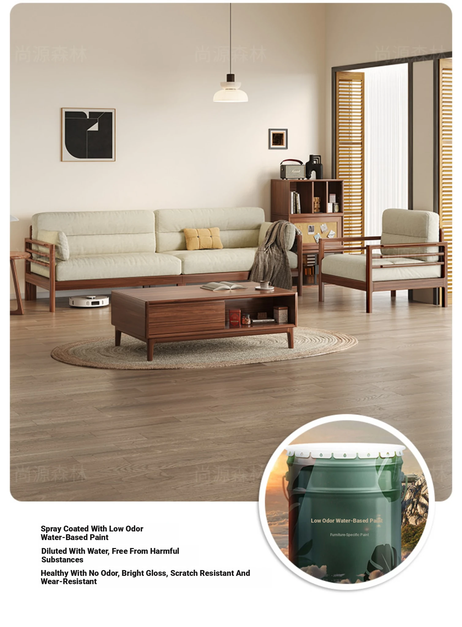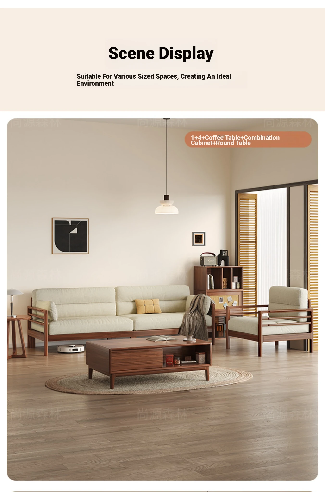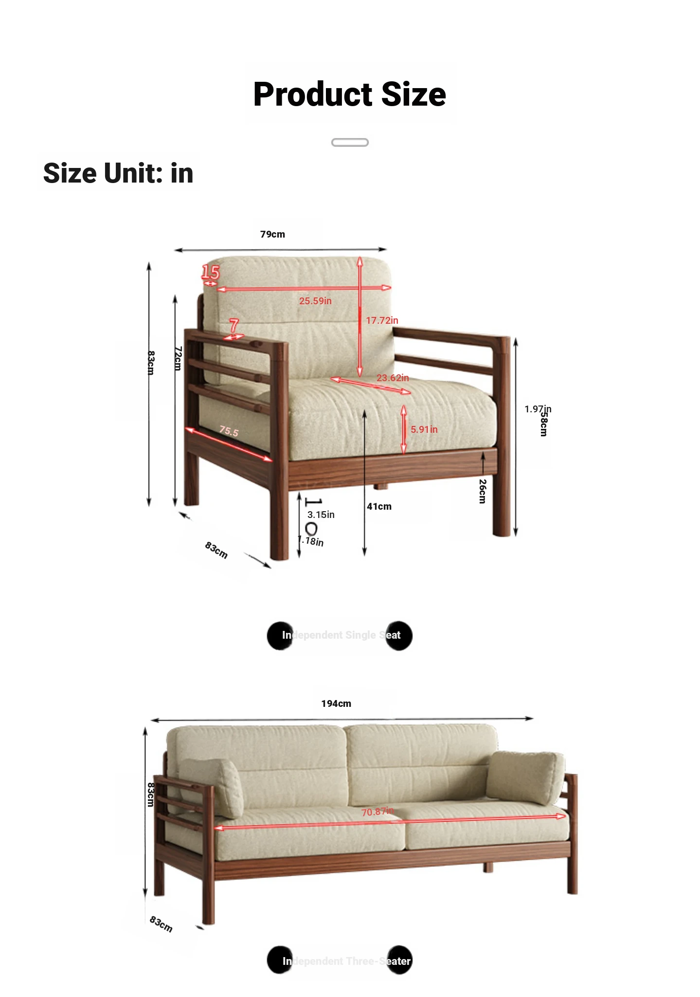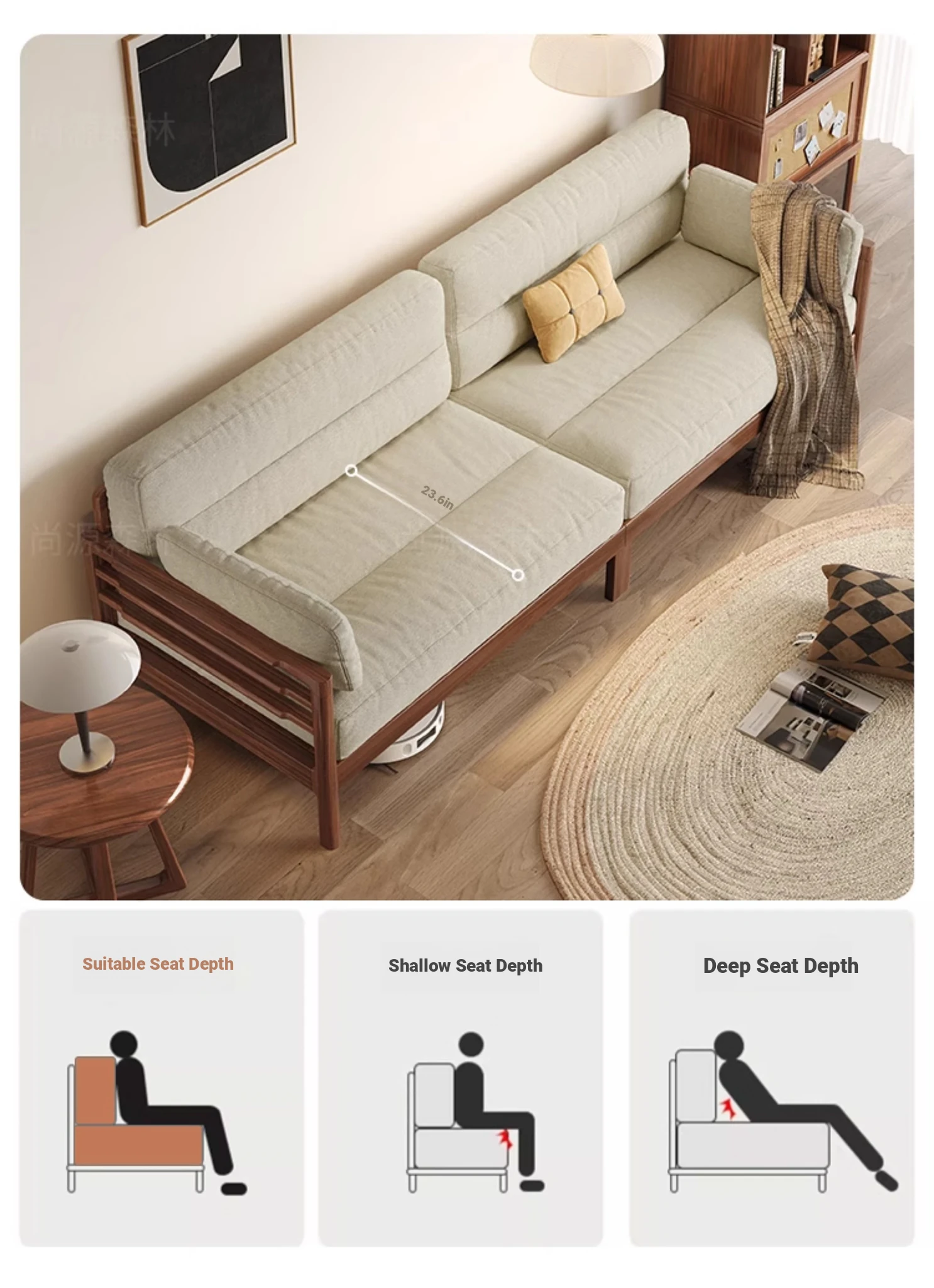 [Black Walnut] single seat sofa (cotton and linen creamy-white)