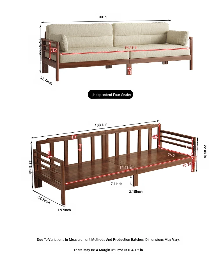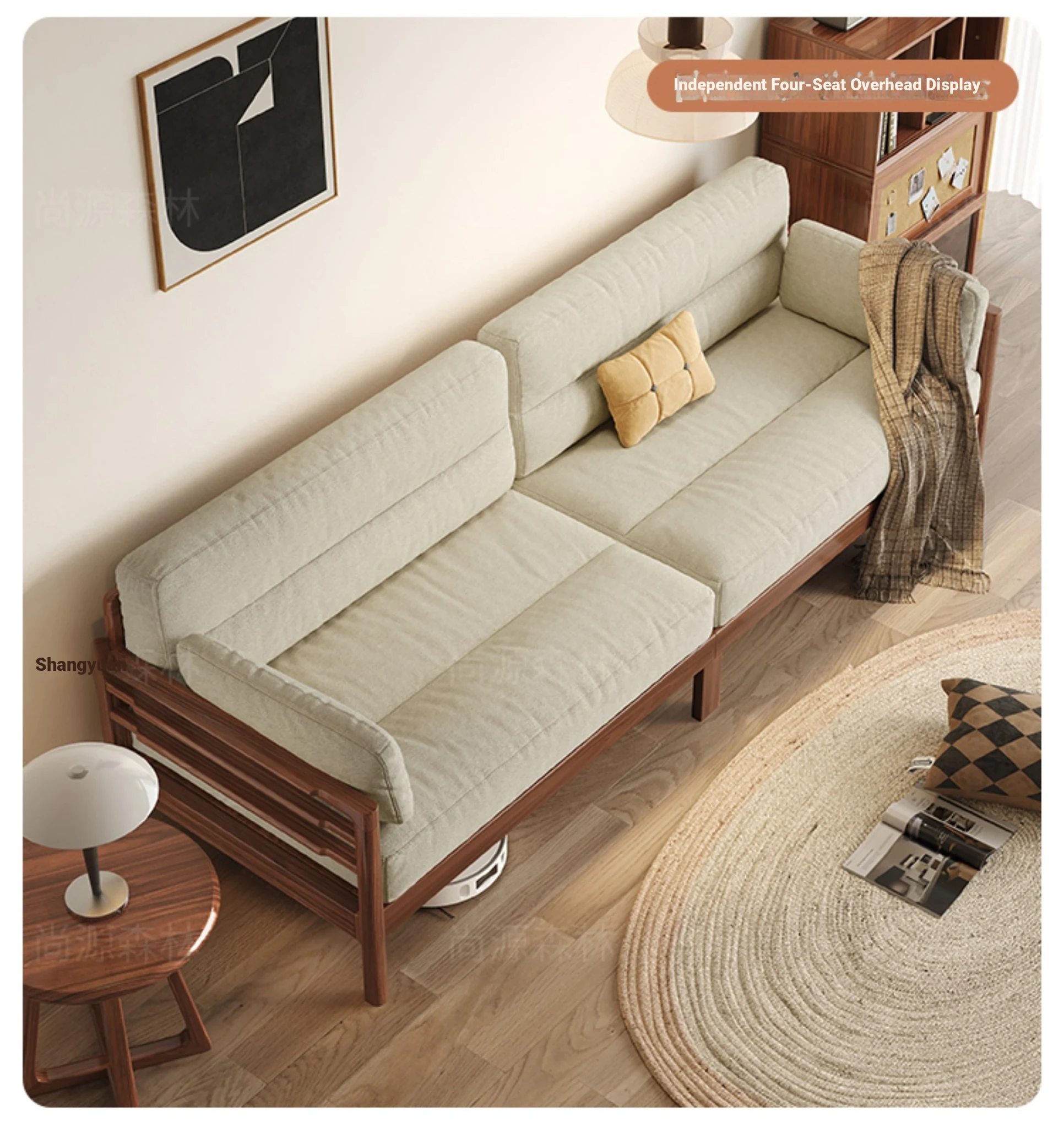 Four-seat sofa (cotton and linen creamy-white) + pillow with armrest * 2