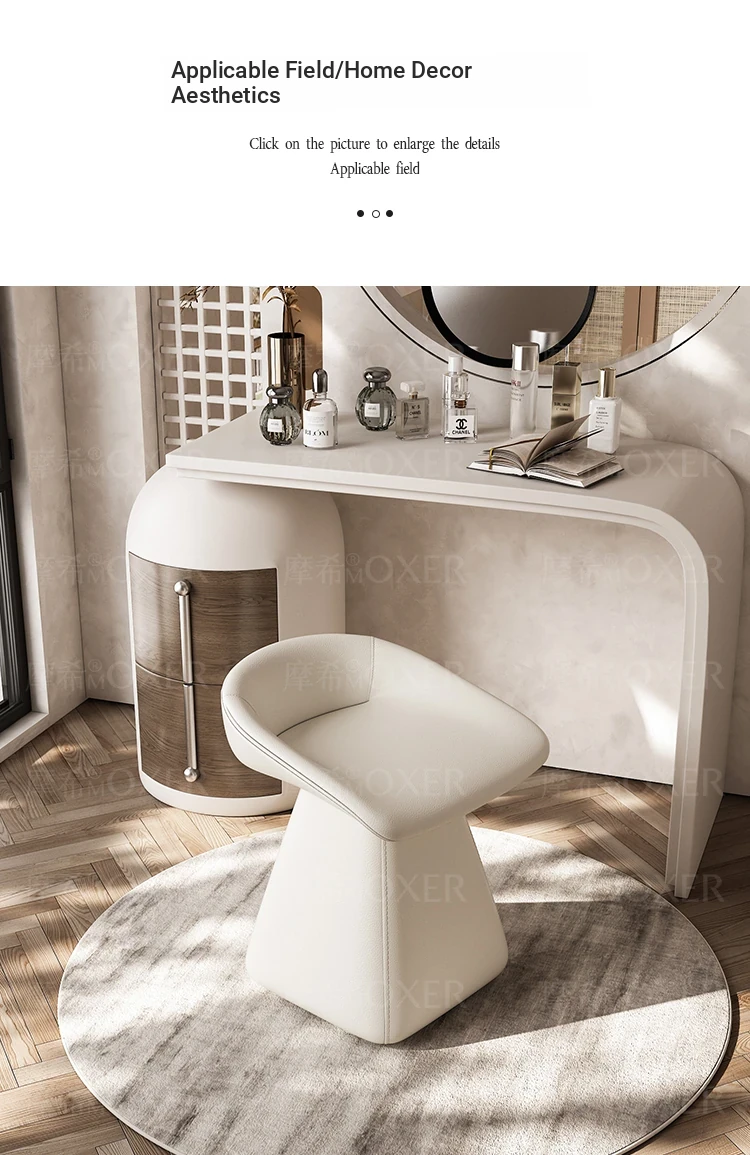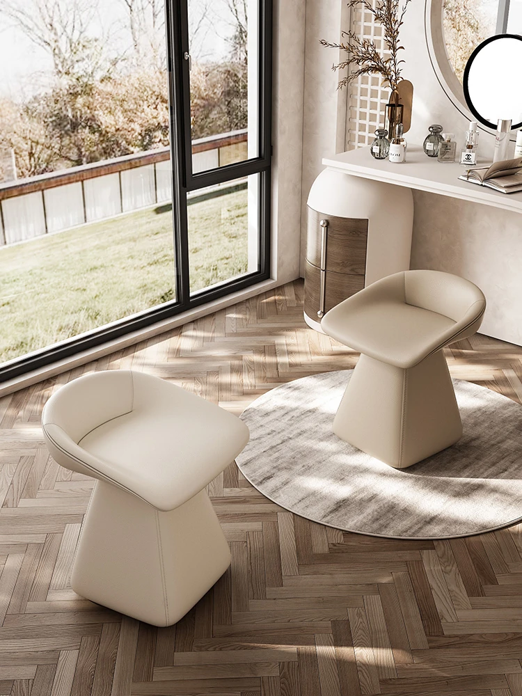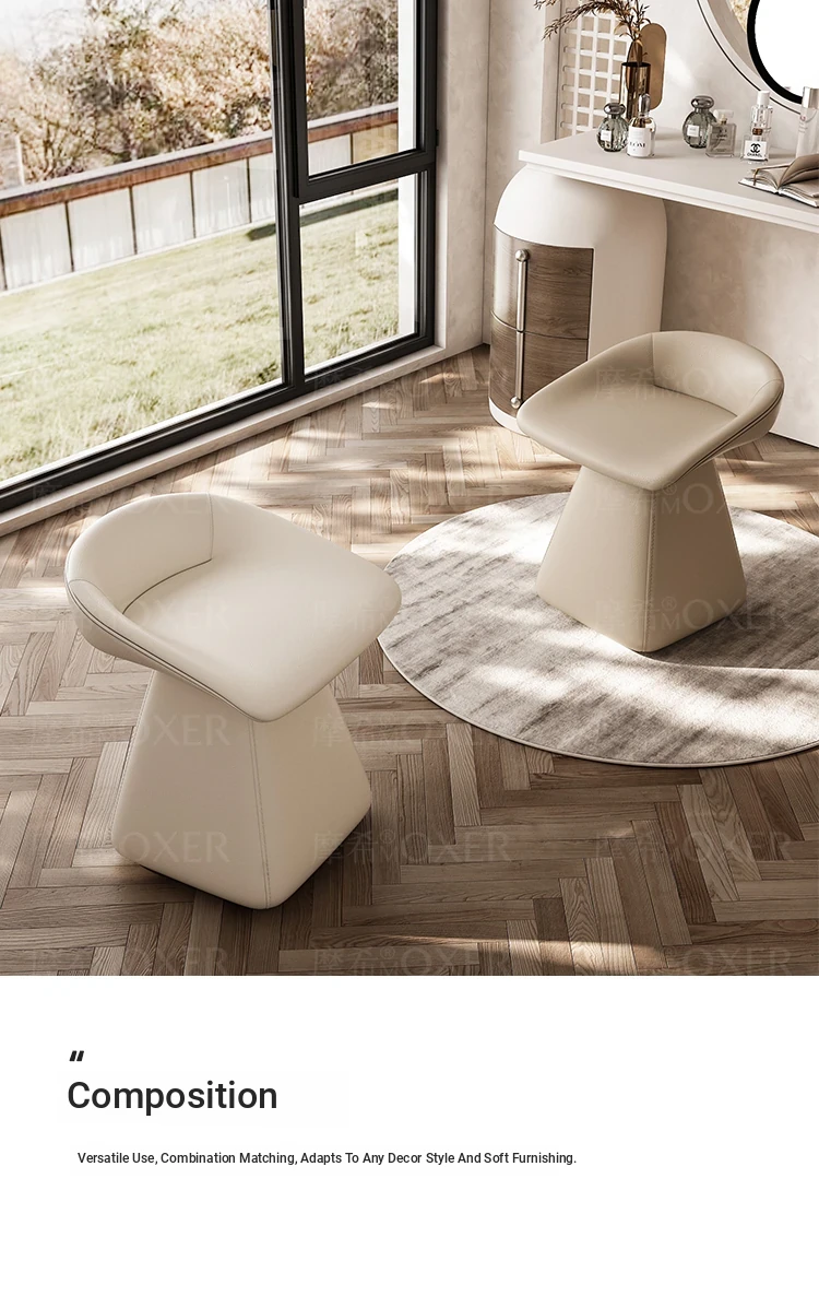 Mohi Stylish Makeup Stool - Rotating Solid Wood Vanity Chair, Chic Low Stool for Living Room, Luxurious Home Nail Art Seat, Perfect for Influencers and Fashion Enthusiasts