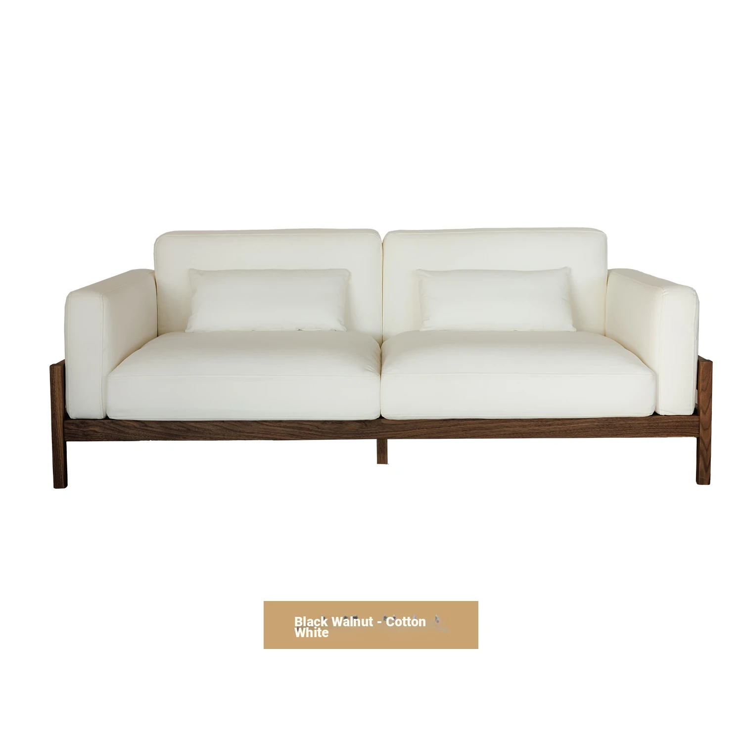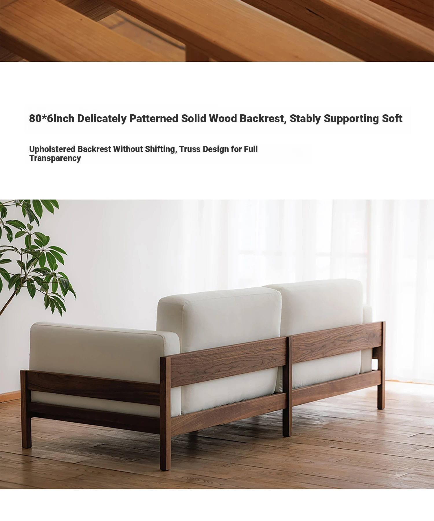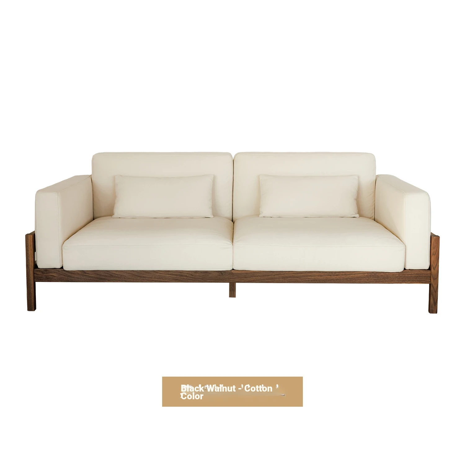 Mountain Valley Sofa - Song Style Solid Wood Cherry Wood Living Room Wabi-Sabi Sofa - Black Walnut Natural Wood Sofa for a Tranquil and Elegant Home Décor
