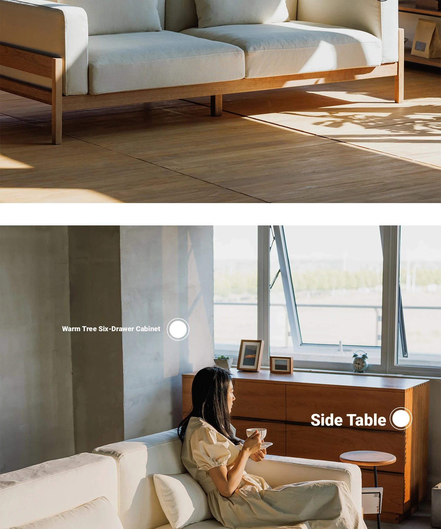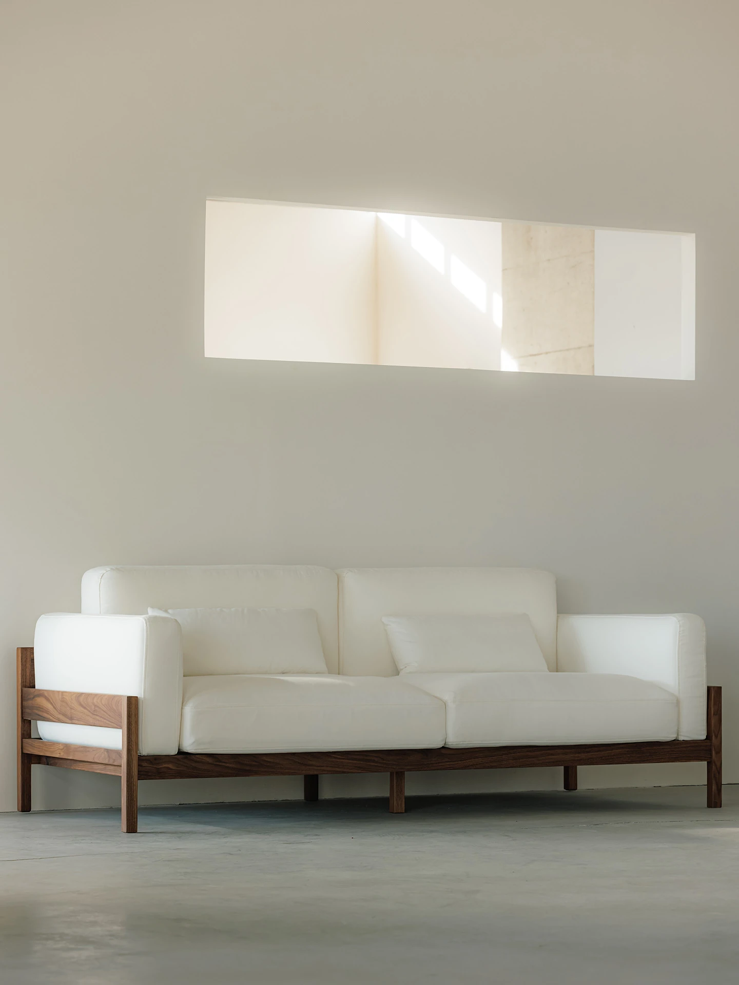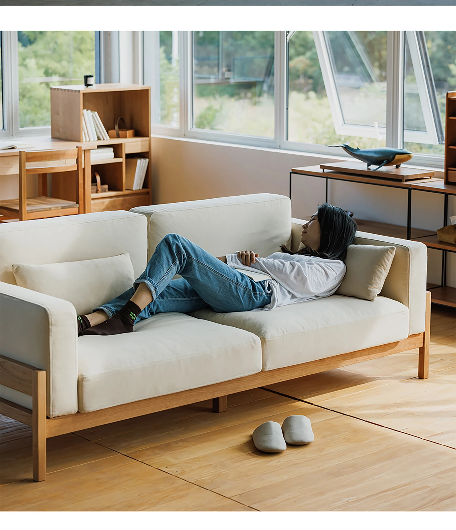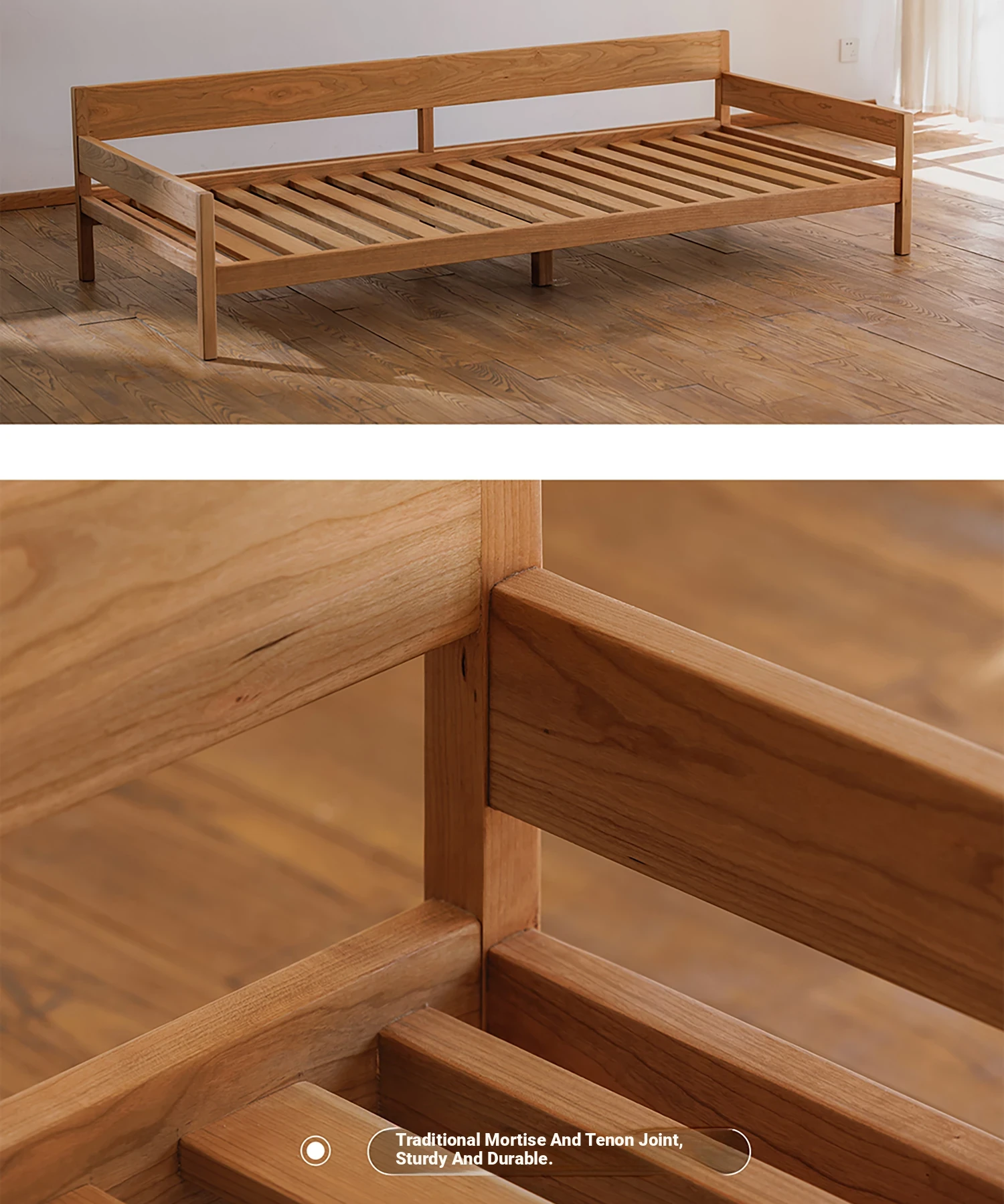 Mountain Valley Sofa - Song Style Solid Wood Cherry Wood Living Room Wabi-Sabi Sofa - Black Walnut Natural Wood Sofa for a Tranquil and Elegant Home Décor