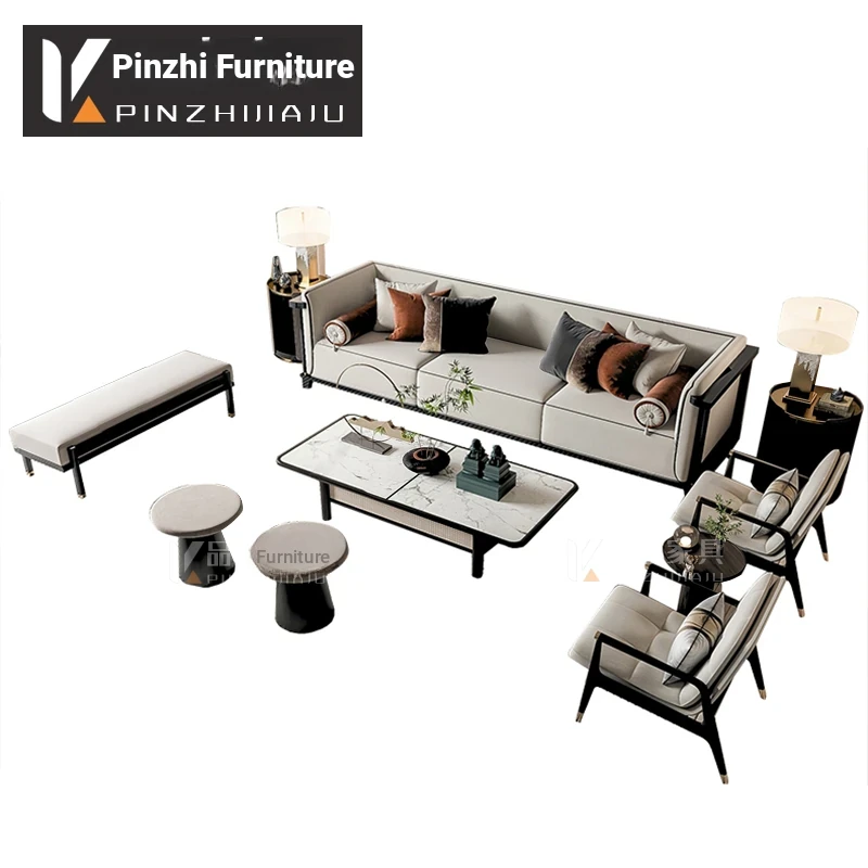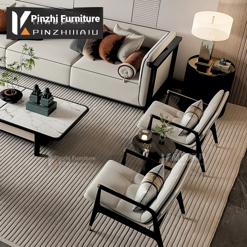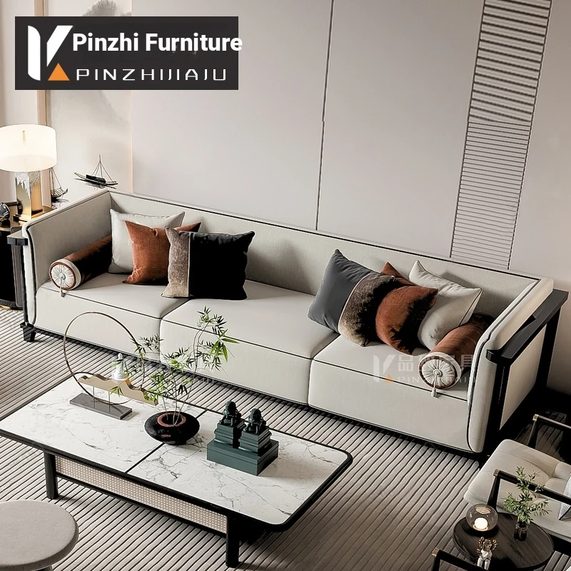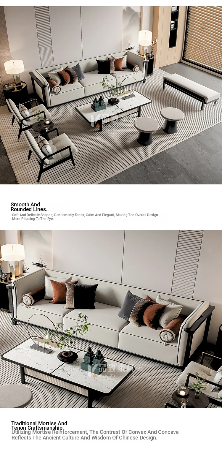 New Chinese Style Solid Wood Sofa - Modern Light Luxury Furniture for Villa Living Rooms, Sample Rooms, Hotel Lobbies, and VIP Reception Areas. Perfect for Elevating Your Space!