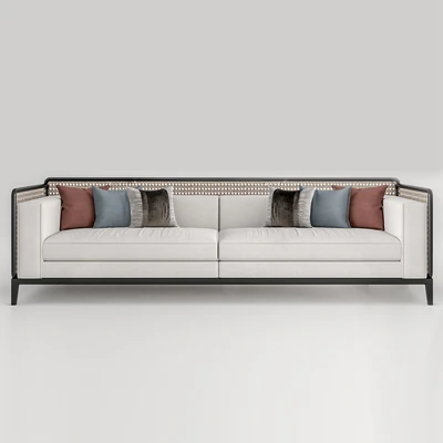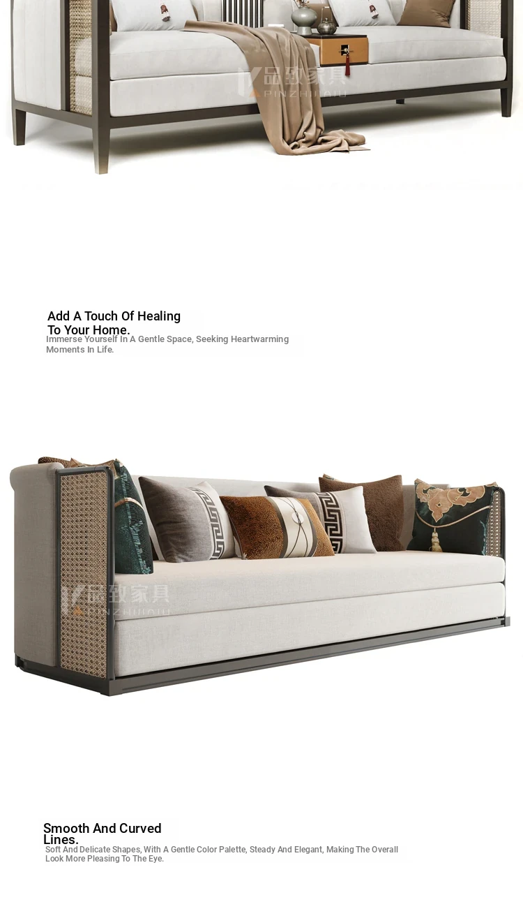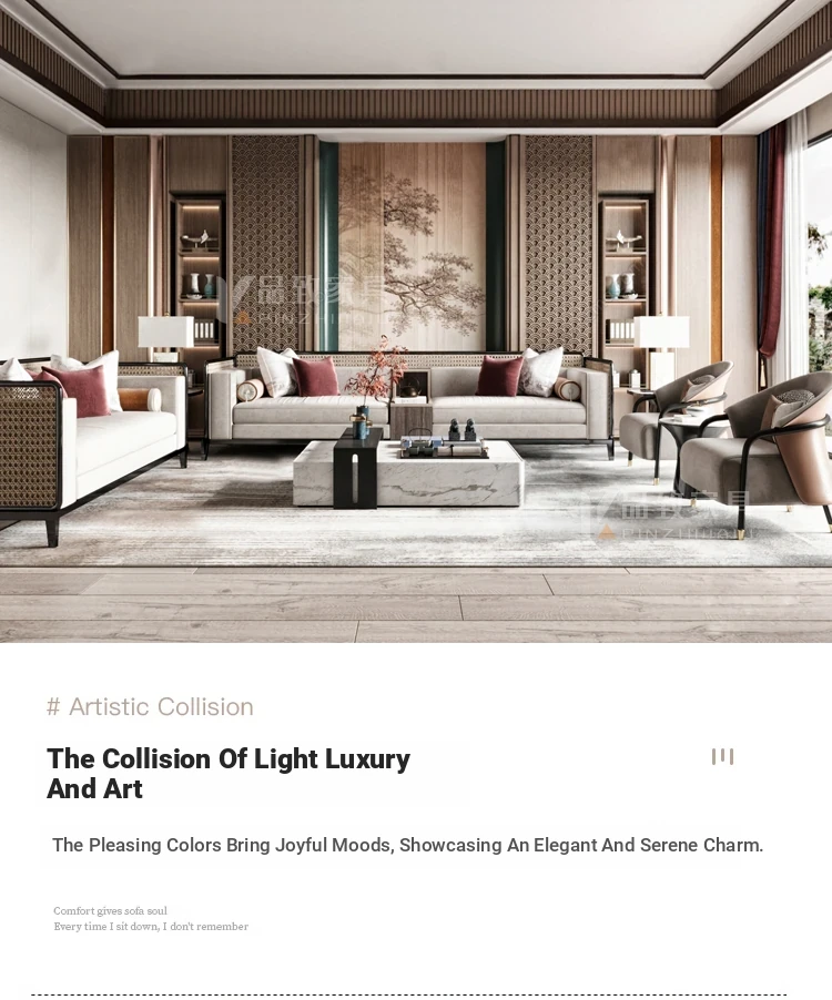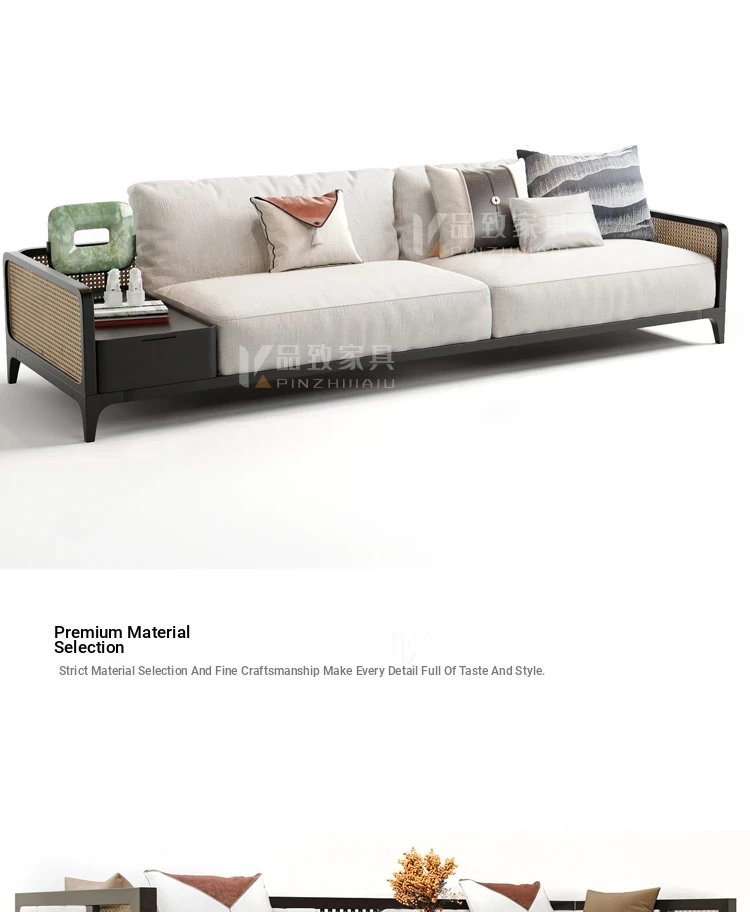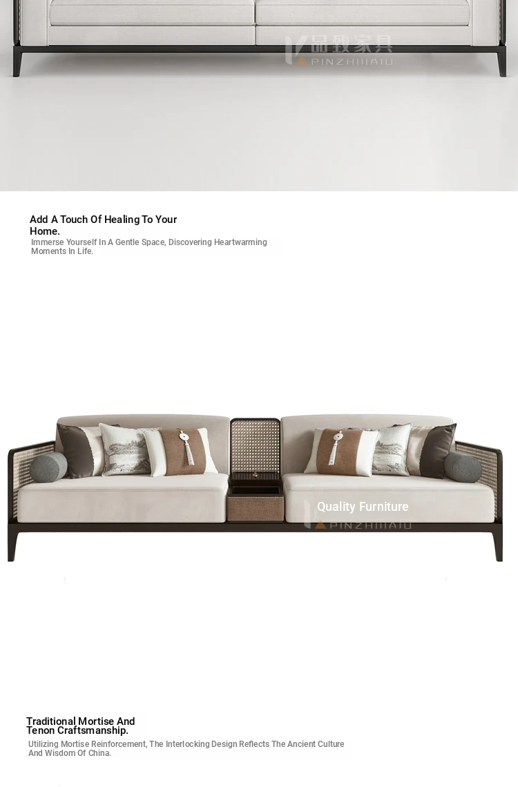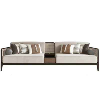 New Chinese Style Three-Seater Sofa - Solid Wood and Rattan, Nordic Modern Wabi-Sabi Design for Hotels, Lounges, and Showrooms - Perfect for Cozy Spaces