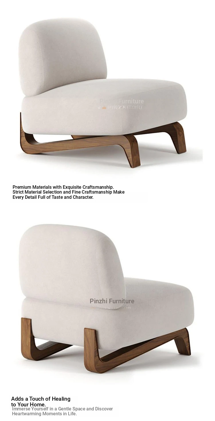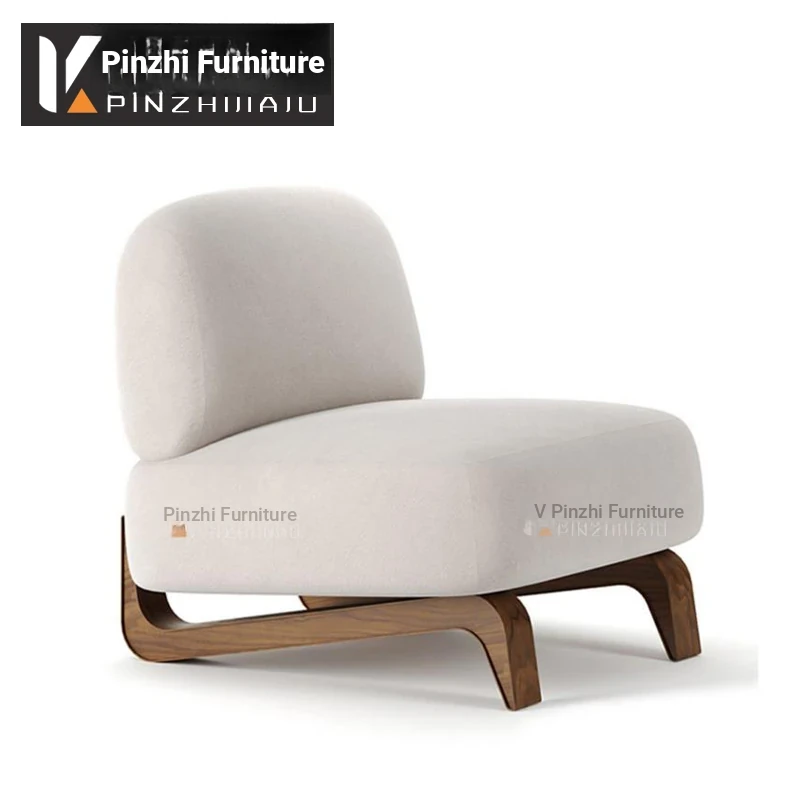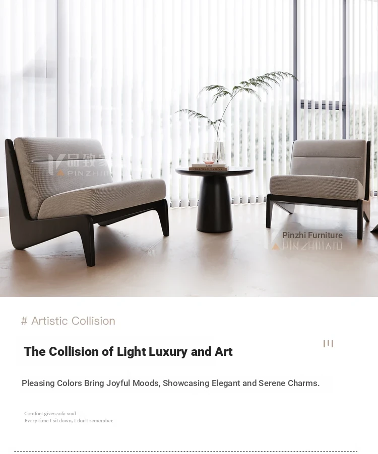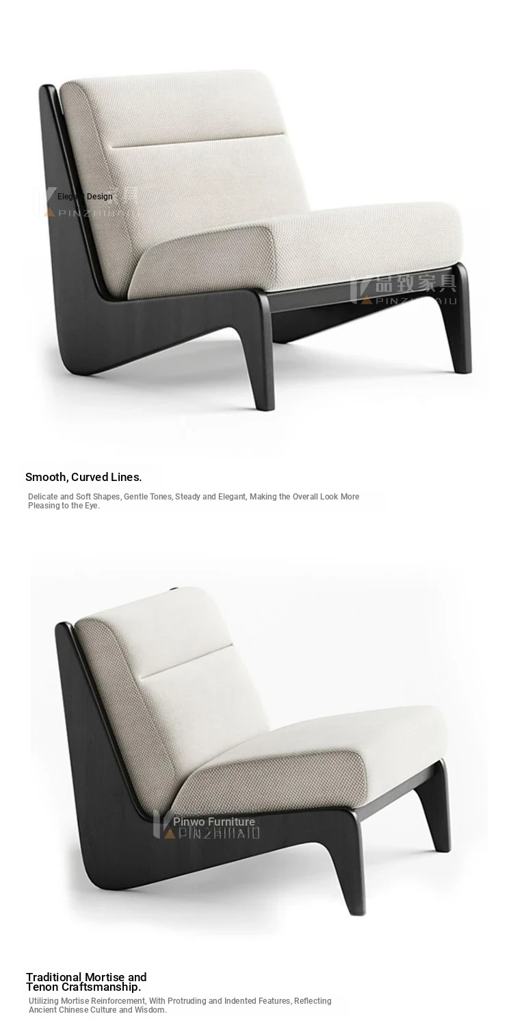 Nordic Modern Fabric Sofa Chair - Wabi-Sabi Style for Reception Areas, Real Estate Showrooms, and Hotels. Minimalist Lounge Chair for Relaxation in Living Rooms. Perfect for Comfort and Aesthetic Appeal!
