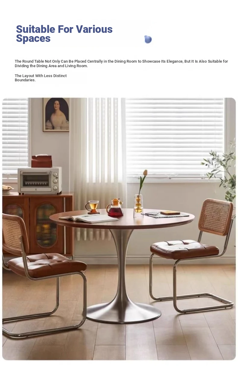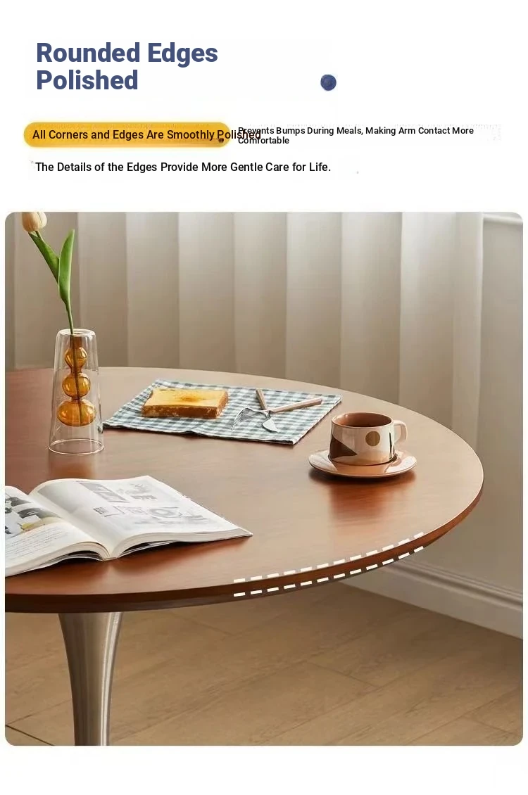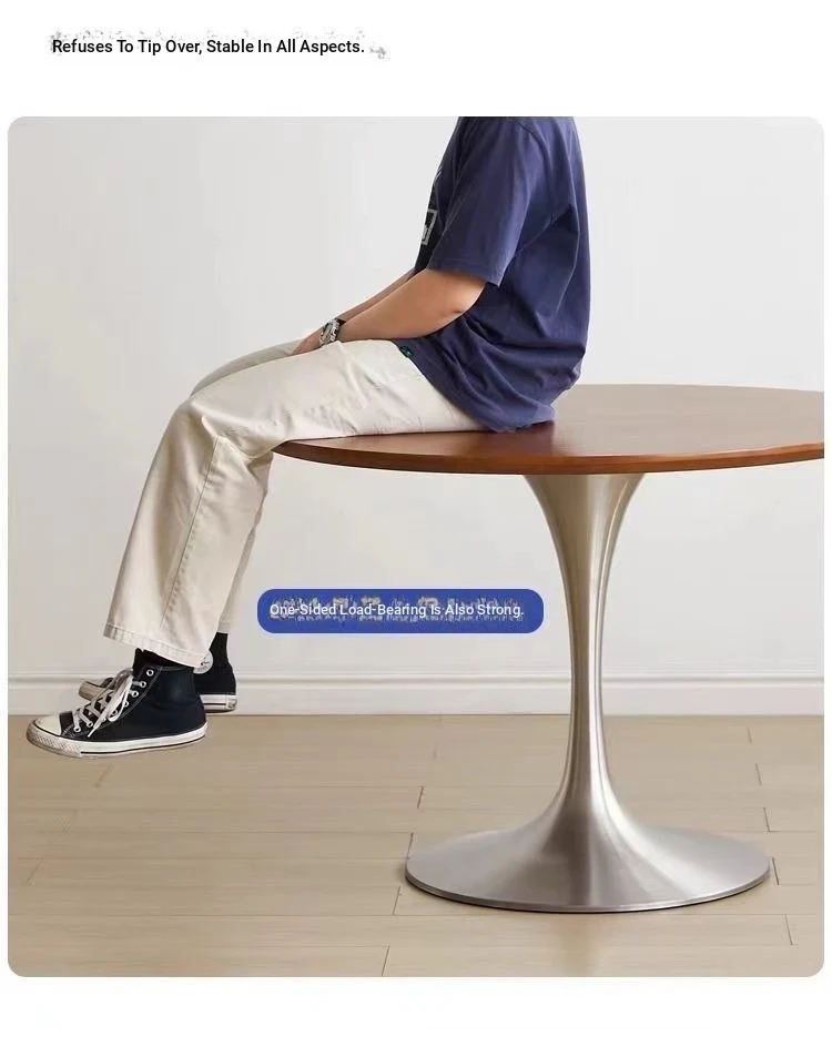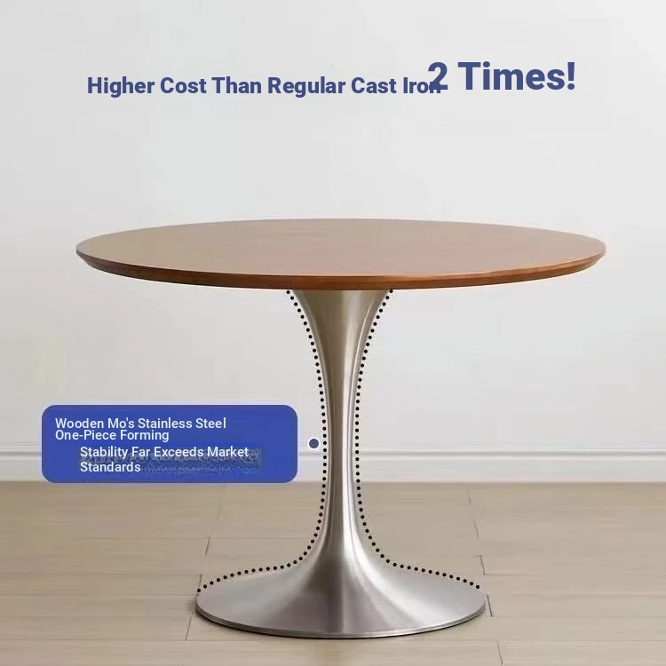 Nordic Retro Solid Wood Round Dining Table - Modern Minimalist Stainless Steel Tulip Small Table for Home and Compact Spaces