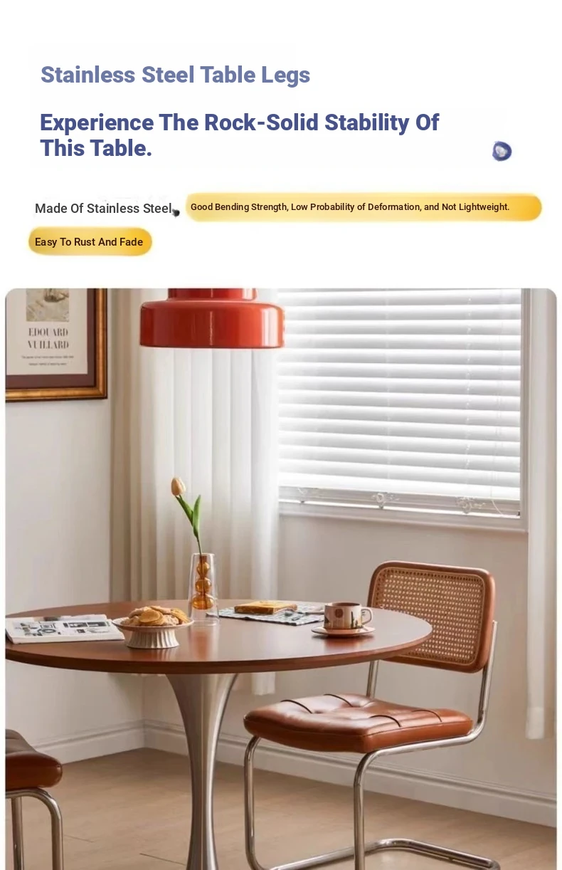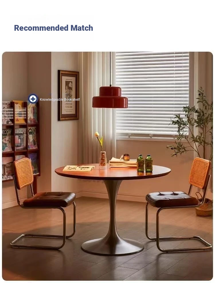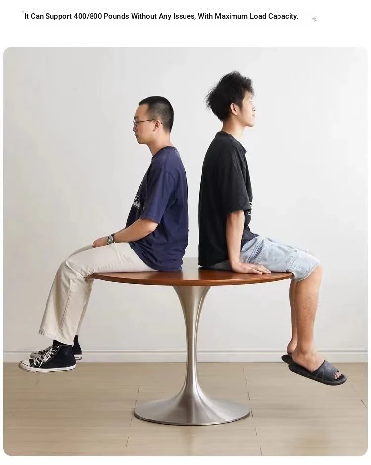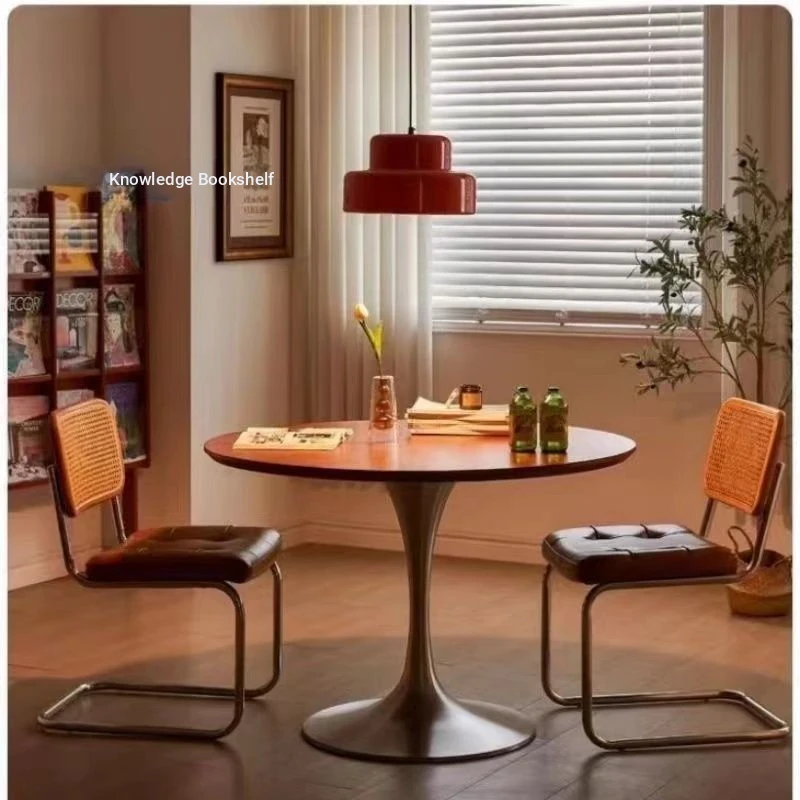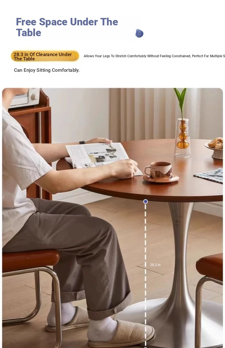 Nordic Retro Solid Wood Round Dining Table - Modern Minimalist Stainless Steel Tulip Small Table for Home and Compact Spaces