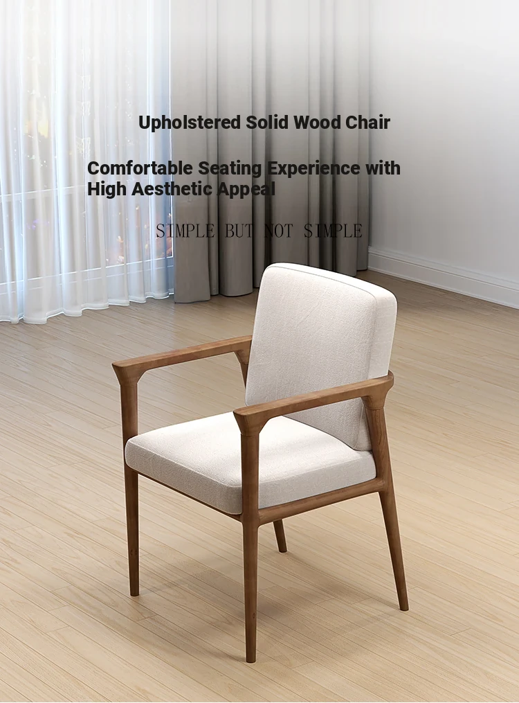 Nordic Solid Wood Lounge Chair – Modern Bachelor's Desk Chair for Home Office, Dining, and Study with Soft Cushion for Ultimate Comfort