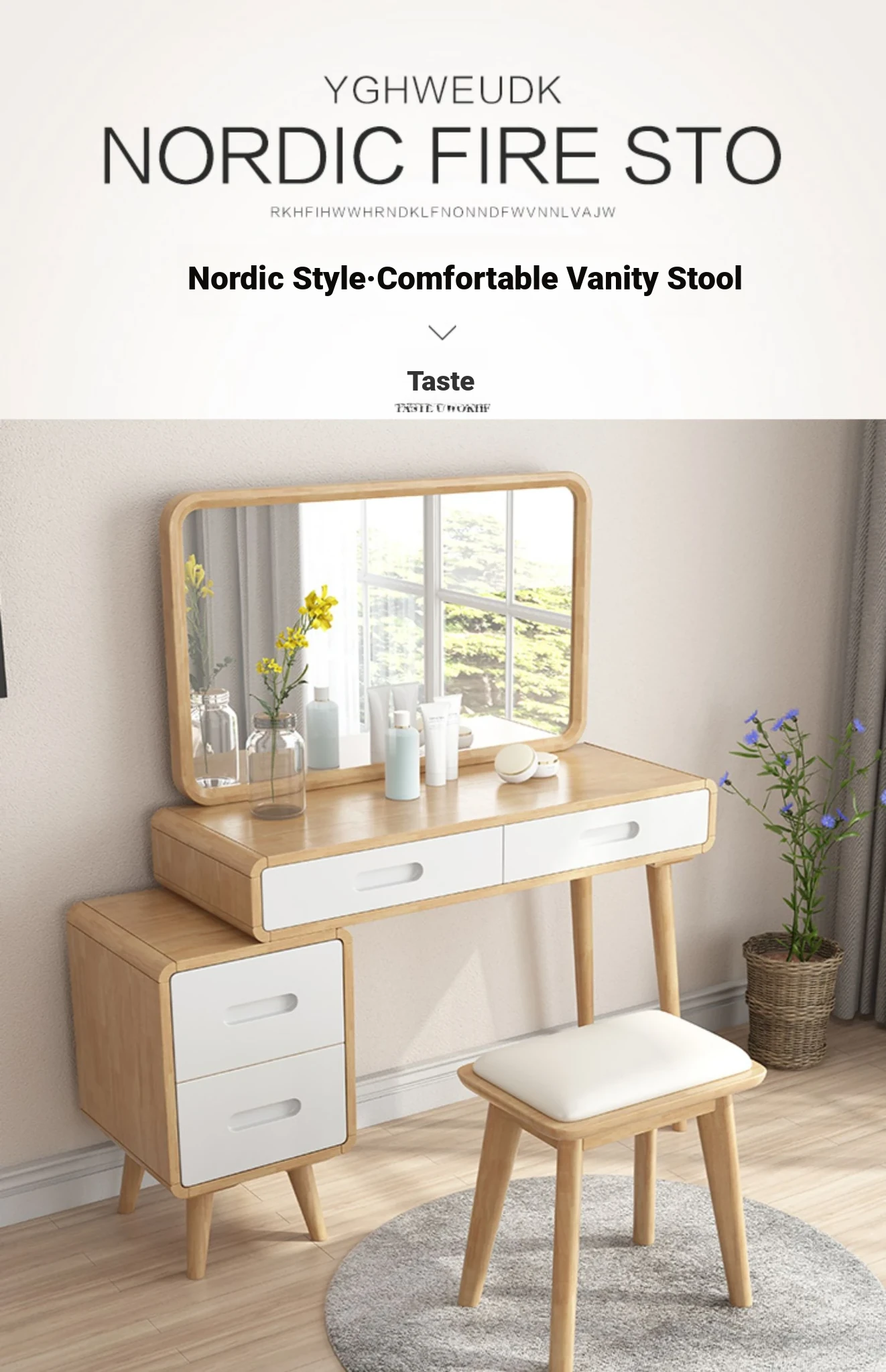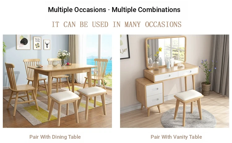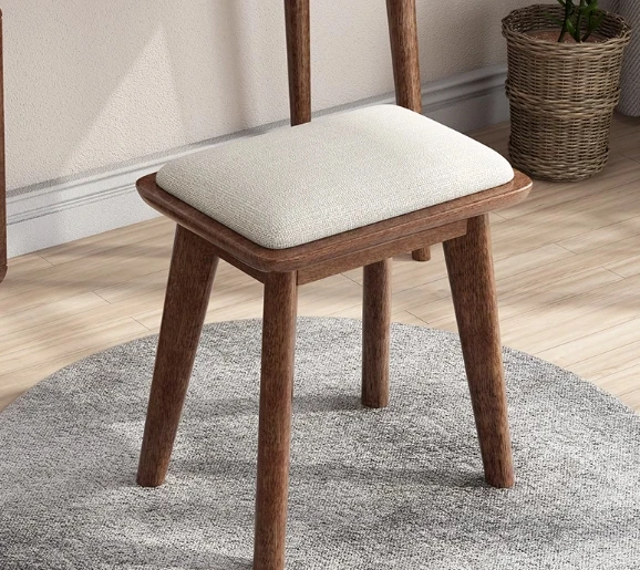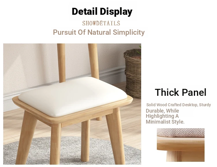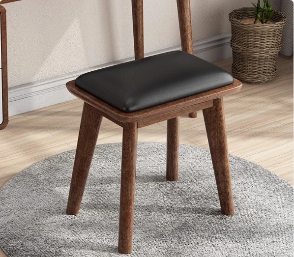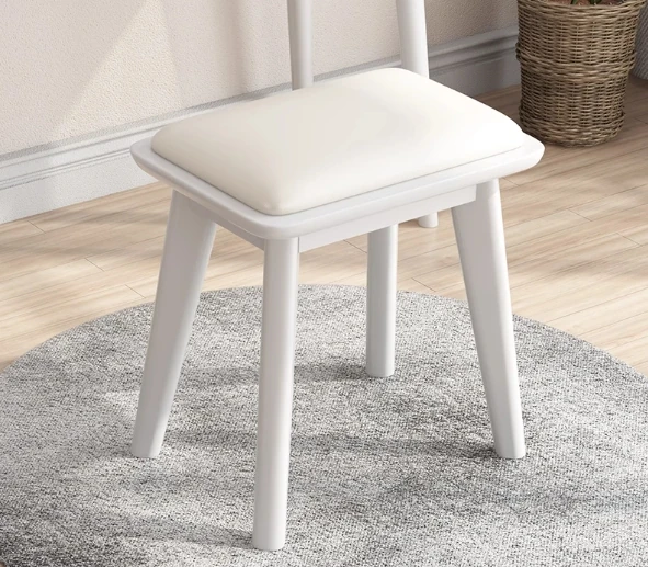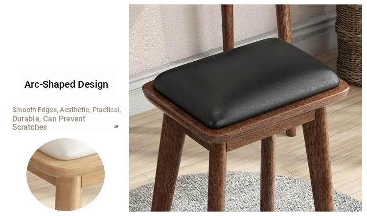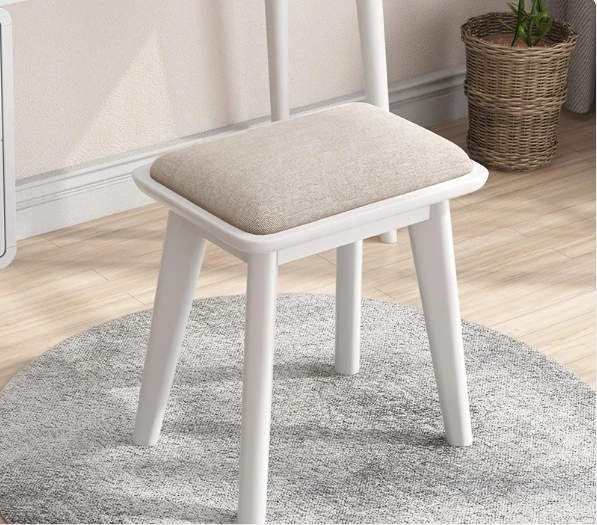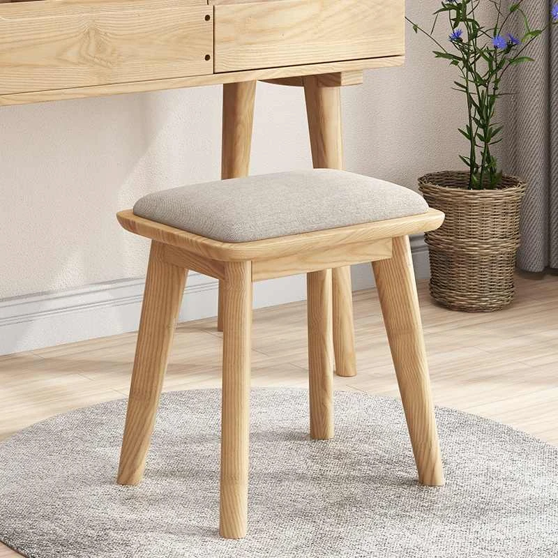 Nordic Solid Wood Vanity Stool - Minimalist Chic Upholstered Chair for Modern Bedrooms, Perfect for Makeup and Dressing - Stylish and Functional Design