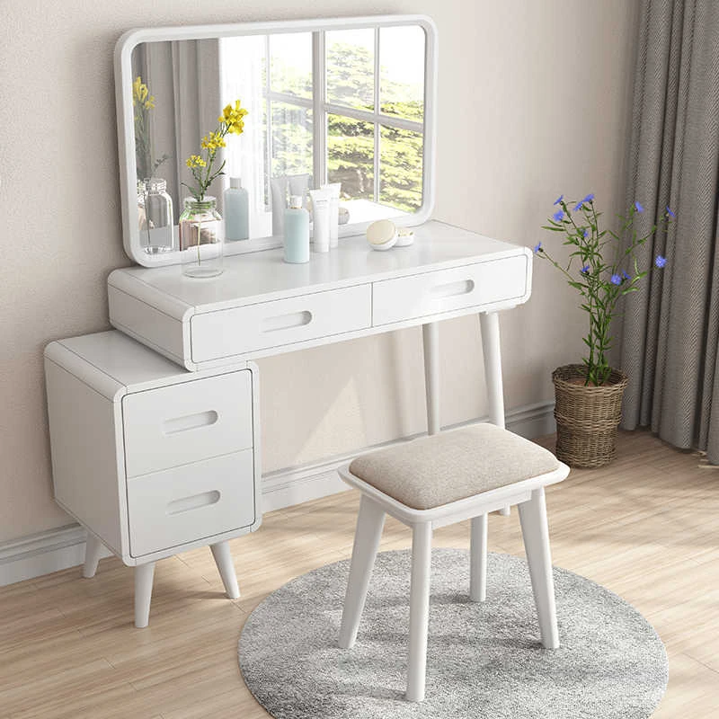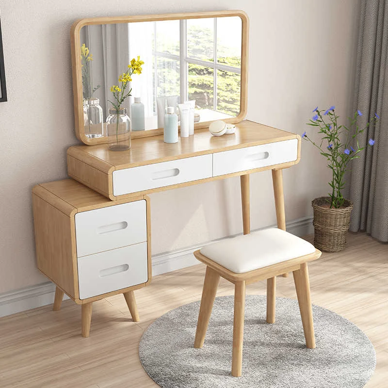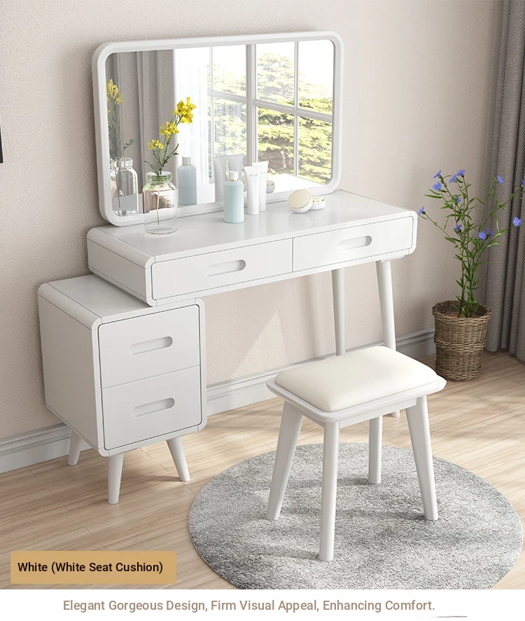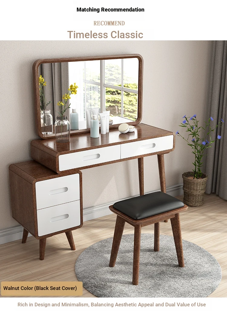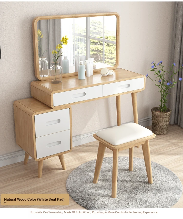 Nordic Solid Wood Vanity Stool - Minimalist Chic Upholstered Chair for Modern Bedrooms, Perfect for Makeup and Dressing - Stylish and Functional Design