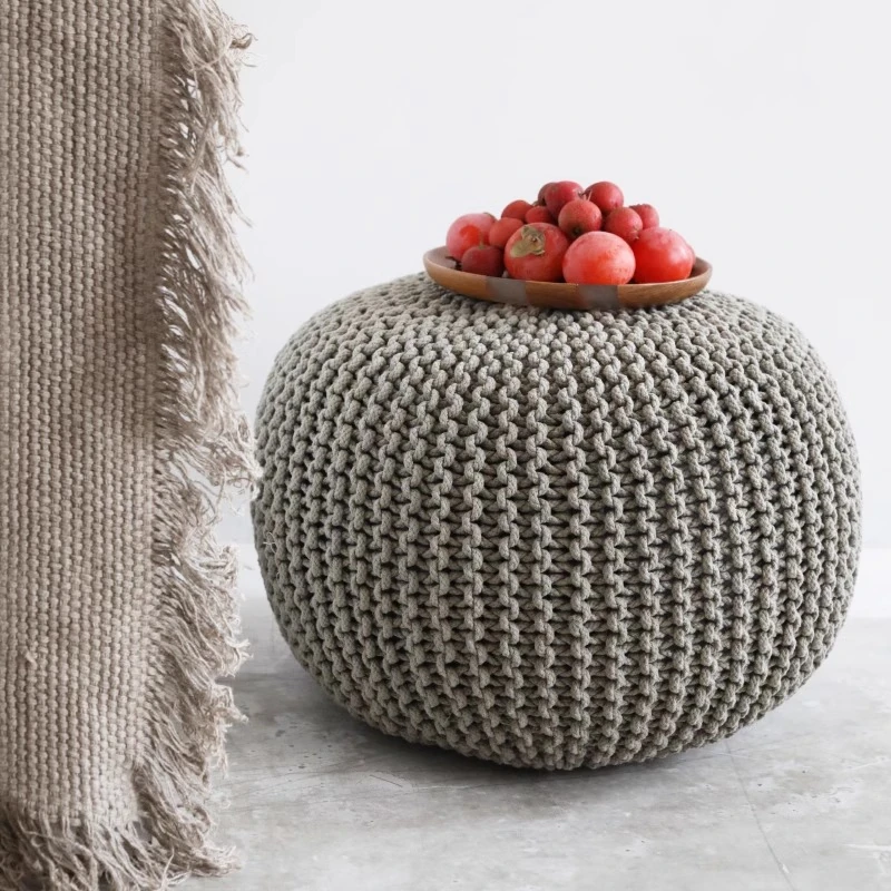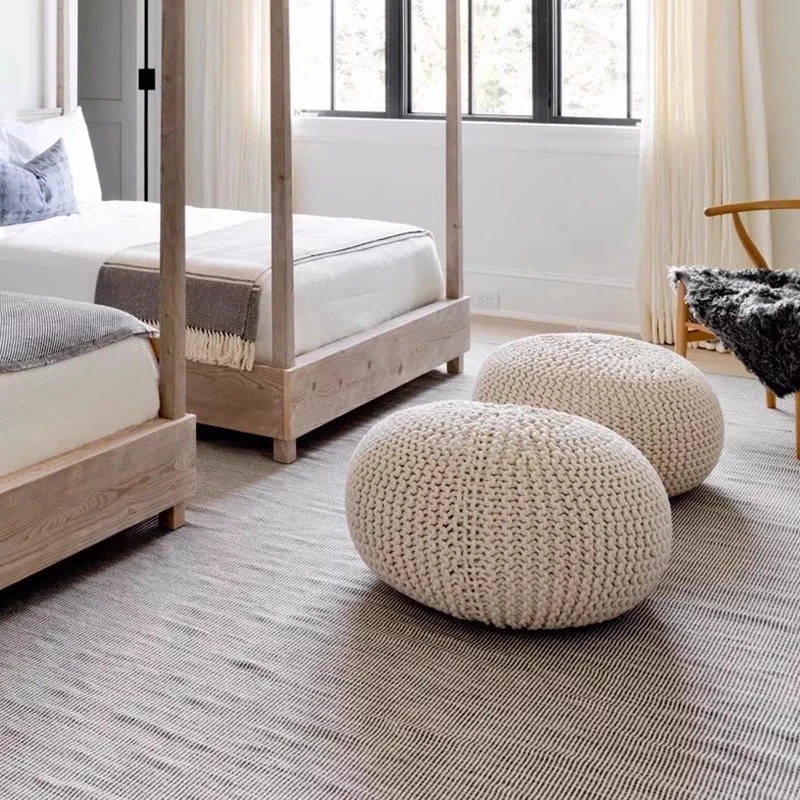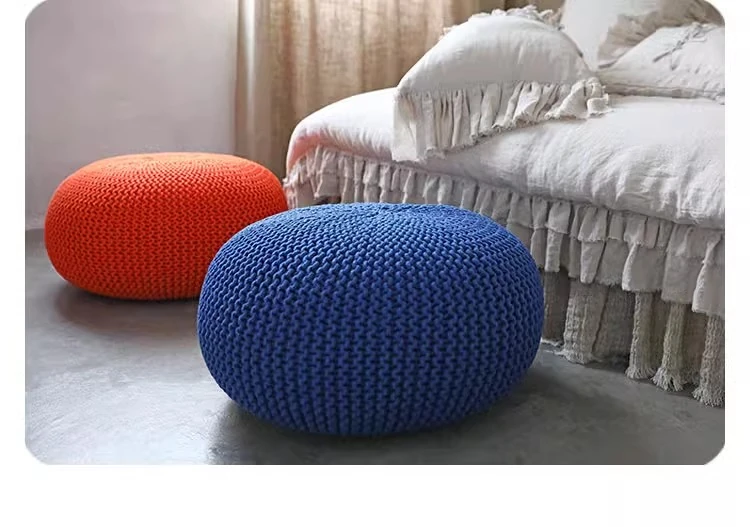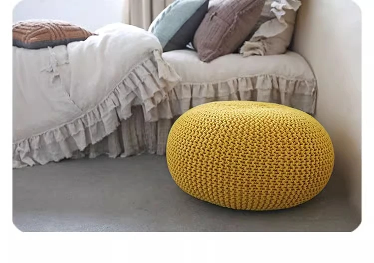 Nordic Style Round Pouf - Handwoven Minimalist Tatami Cushion, Chic Footrest and Shoe Bench for Your Living Room