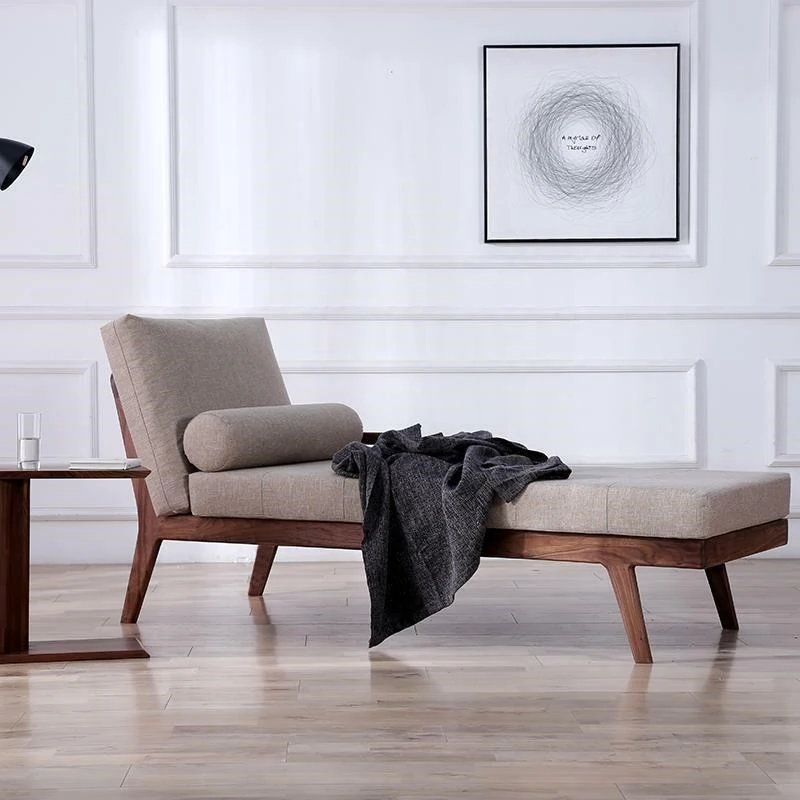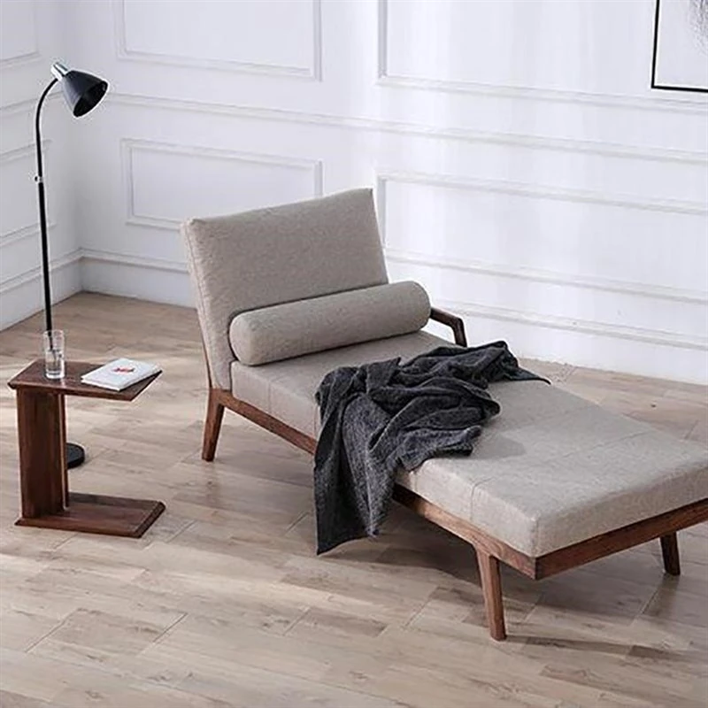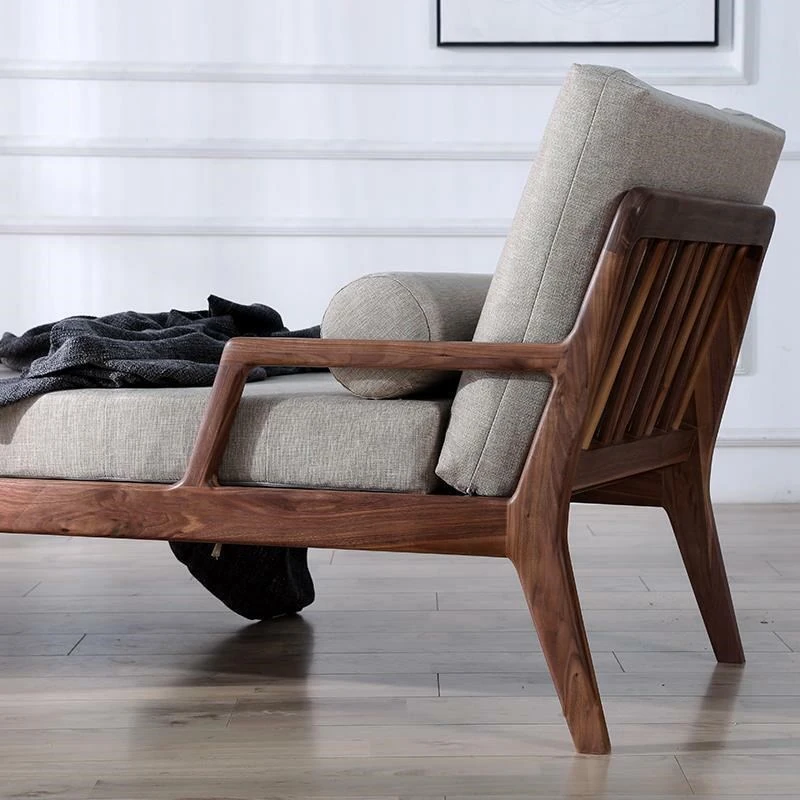 North American Black Walnut & Ash Wood Sofa Bed - New Chinese Style Chaise Lounge for Office, Hotel, and Airbnb - Elegant Living Room Furniture