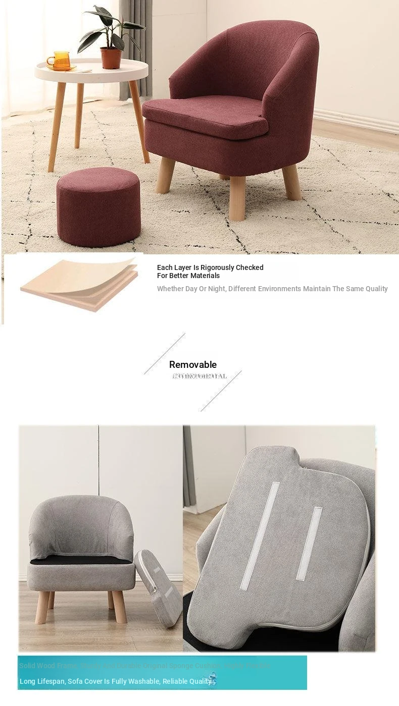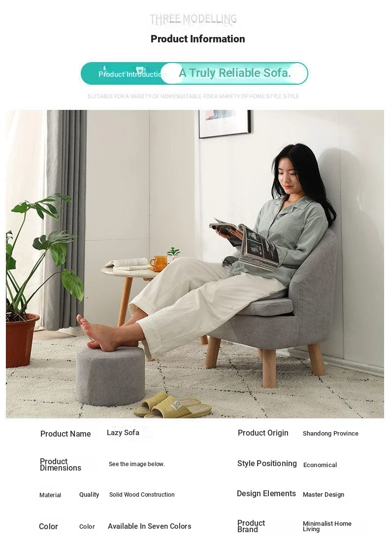 Nursing Chair - Solid Wood Lazy Sofa for Small Spaces, Scandinavian Minimalist Design, Ideal for Bedroom and Balcony, Trendy Single Leisure Chair