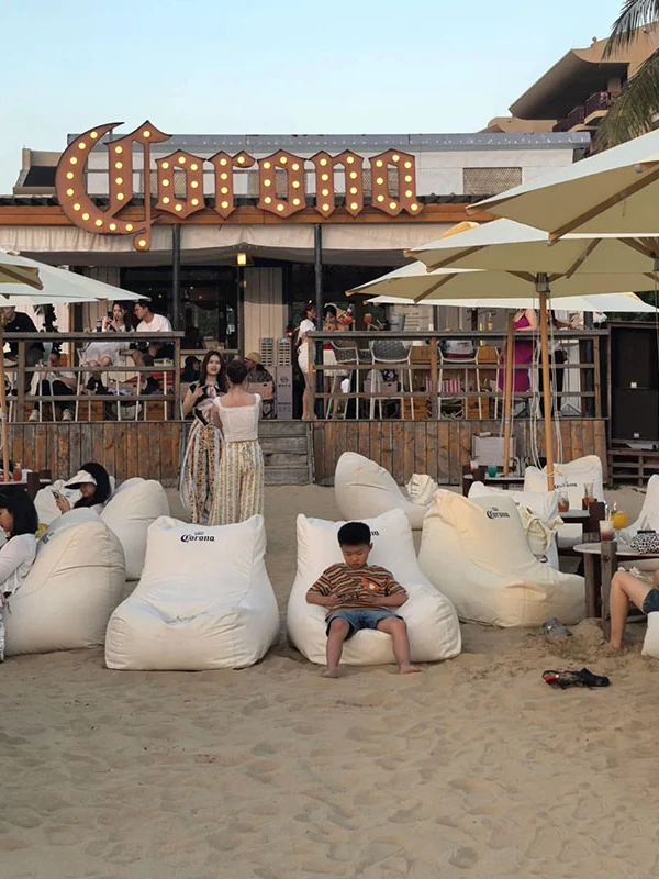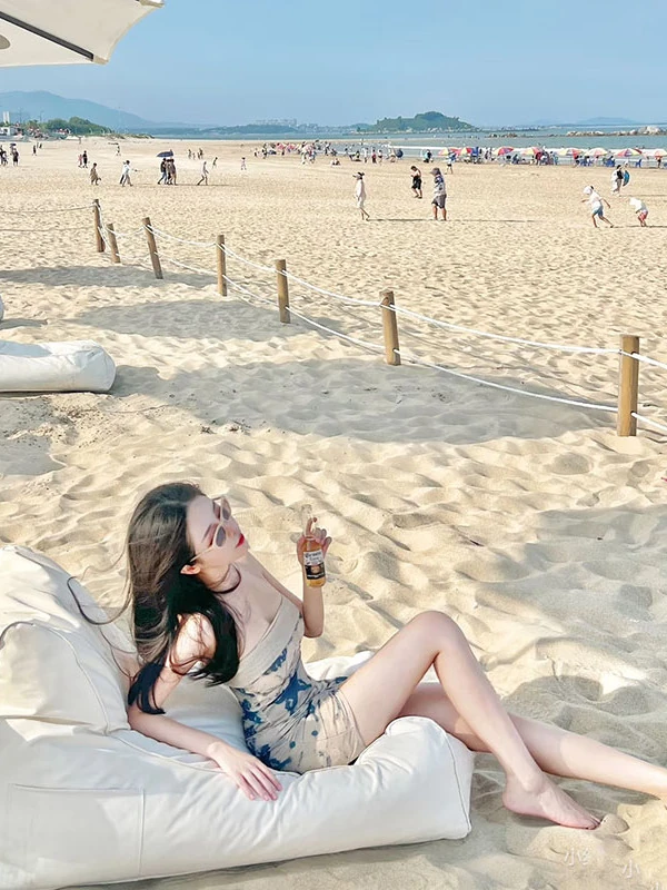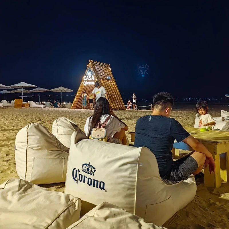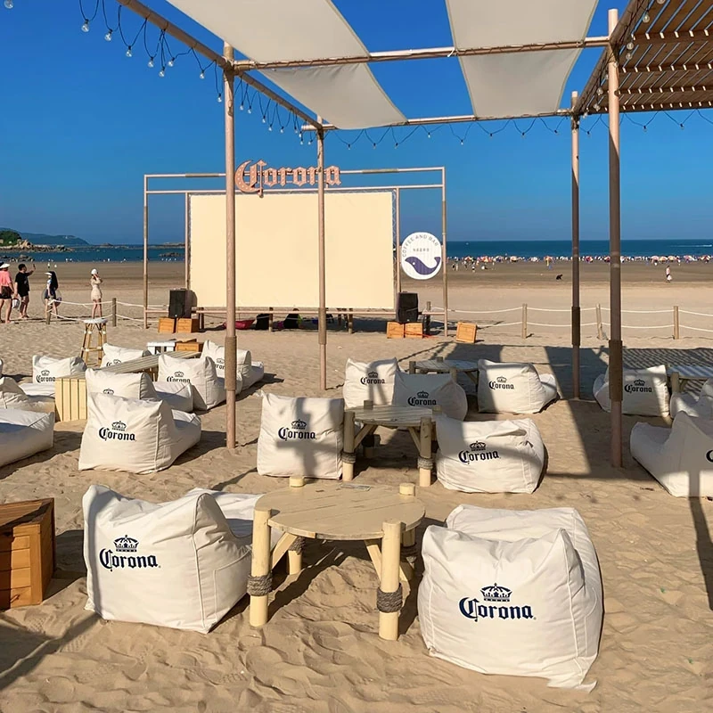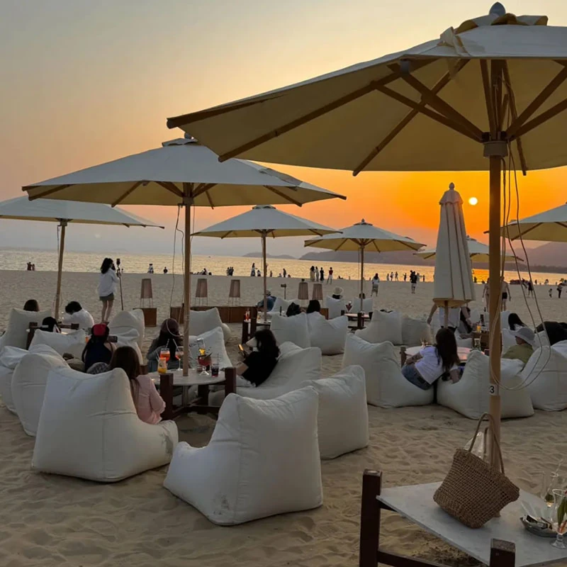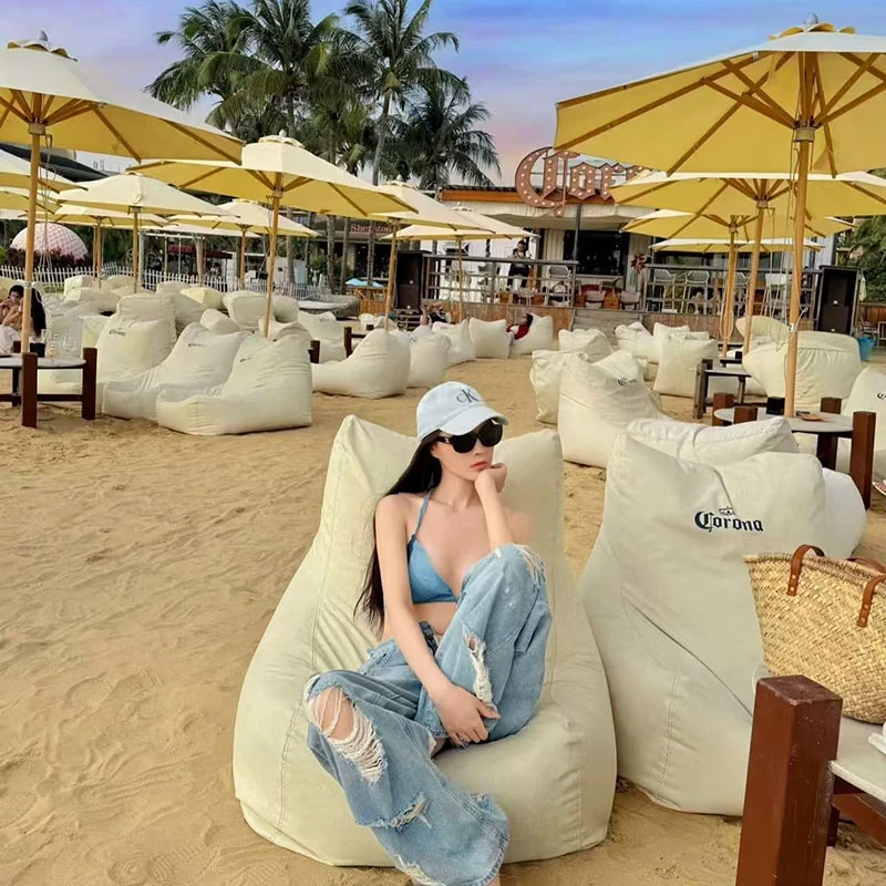 Outdoor Waterproof Sunshade Lazy Sofa Table Umbrella Set - Perfect for Beach Bars, Comfortable Bean Bags for Relaxing and Sleeping, Customizable with Logo Printing