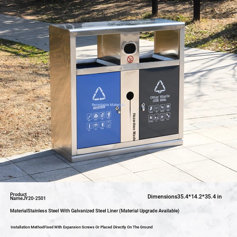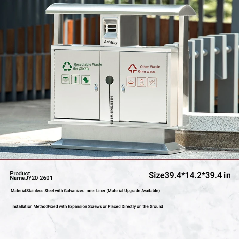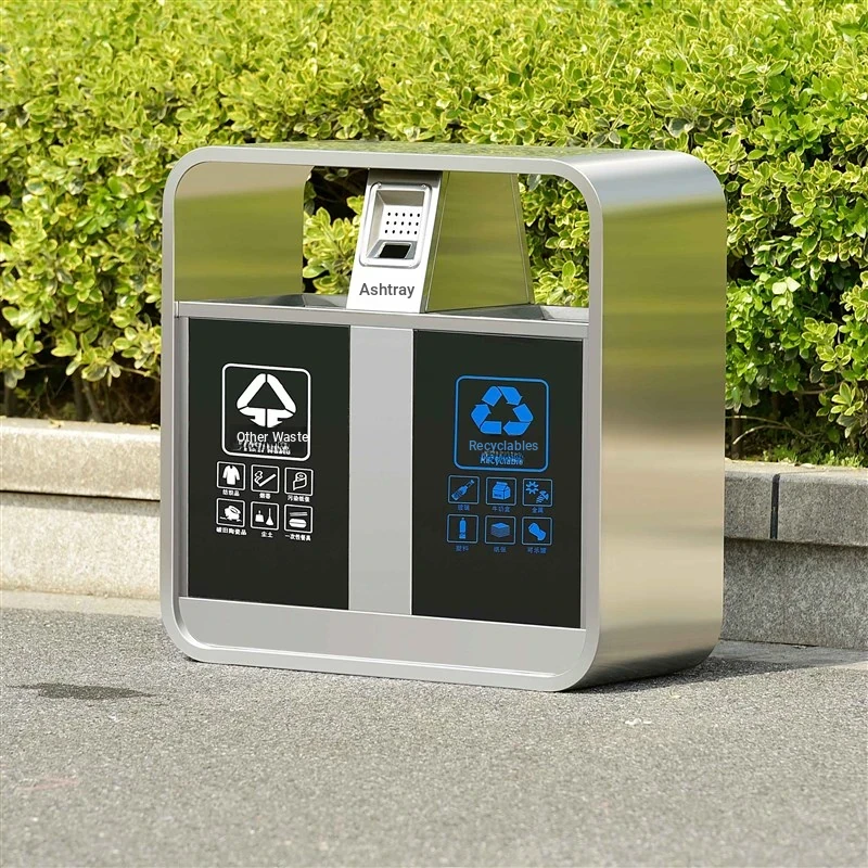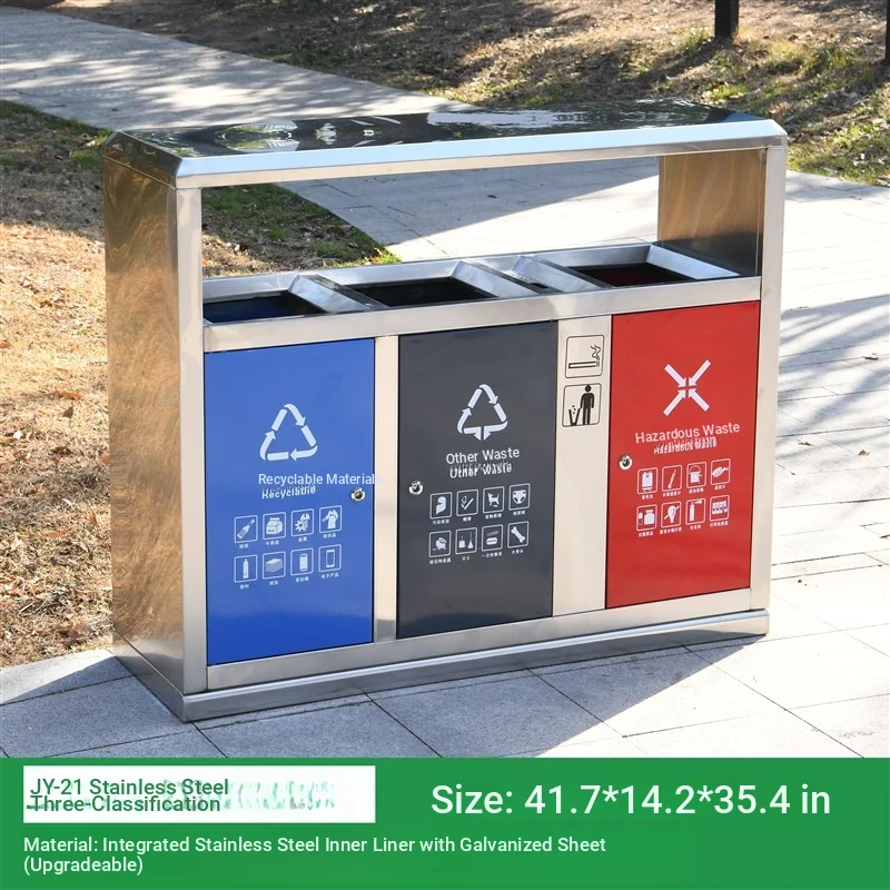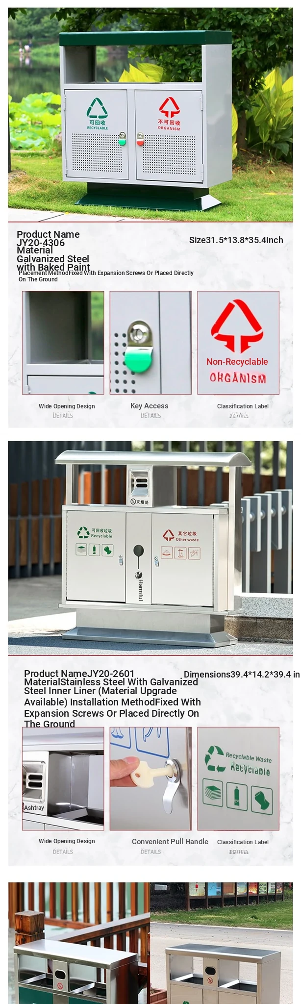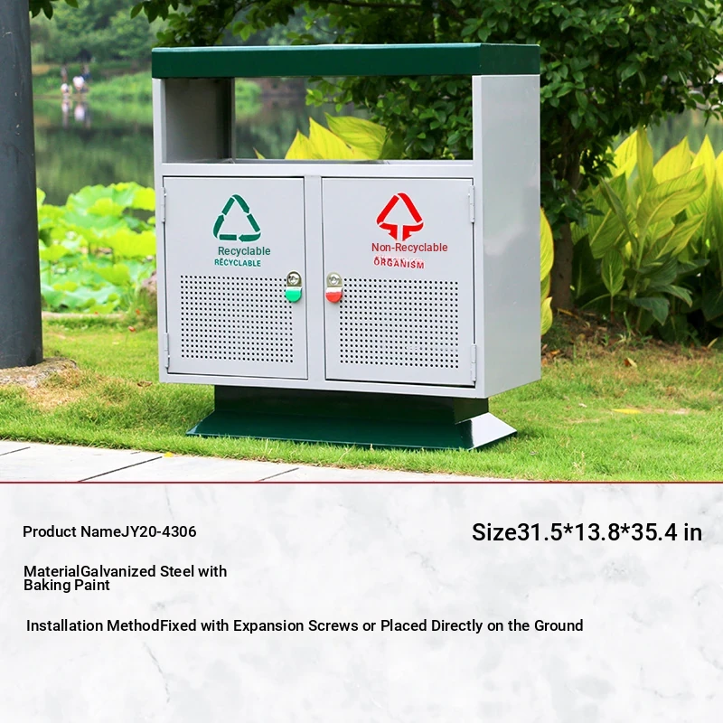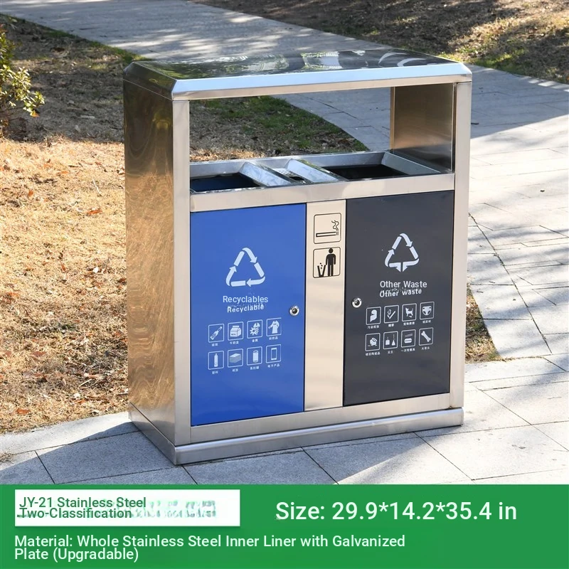 Stainless Steel Outdoor Trash Can - Large Dual Bin Recycling Bin for Parks, Communities, and Scenic Areas - Perfect for Waste Separation and Cleanliness