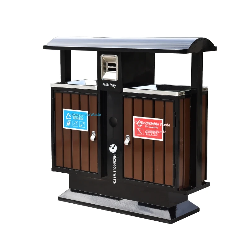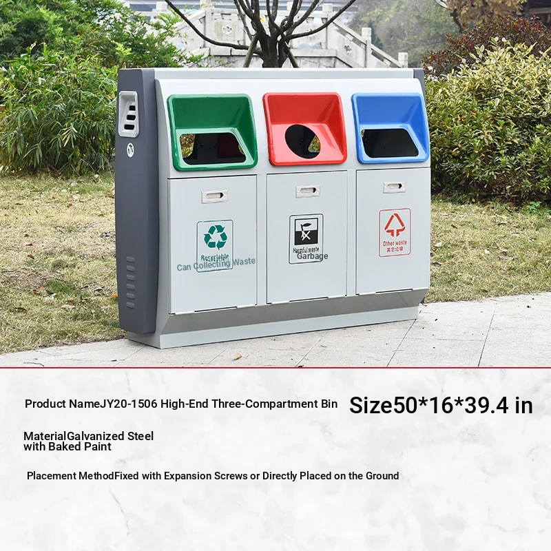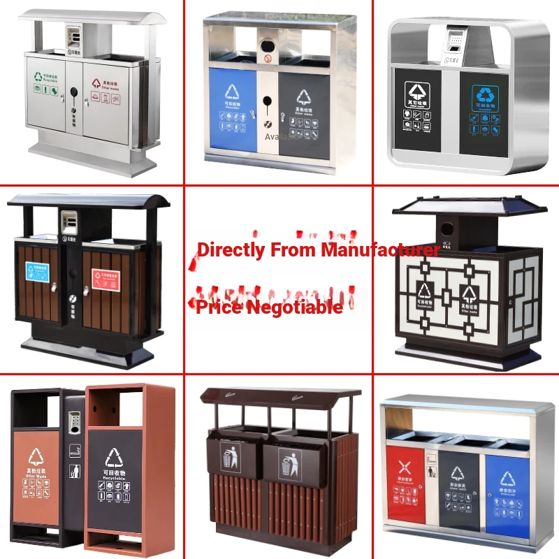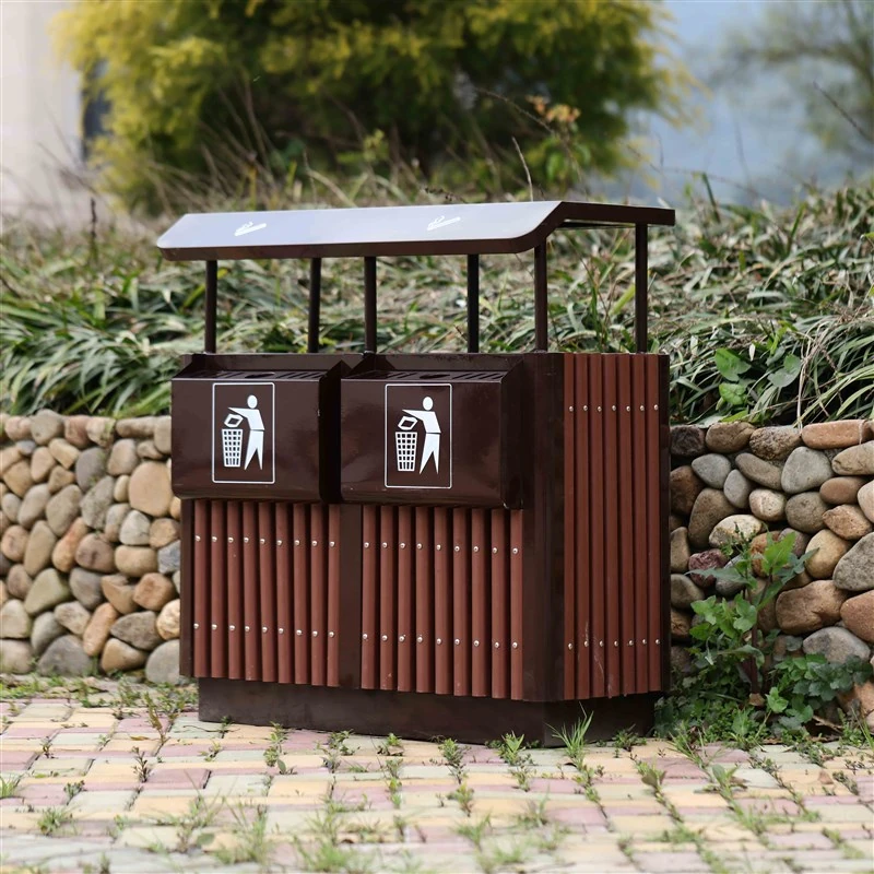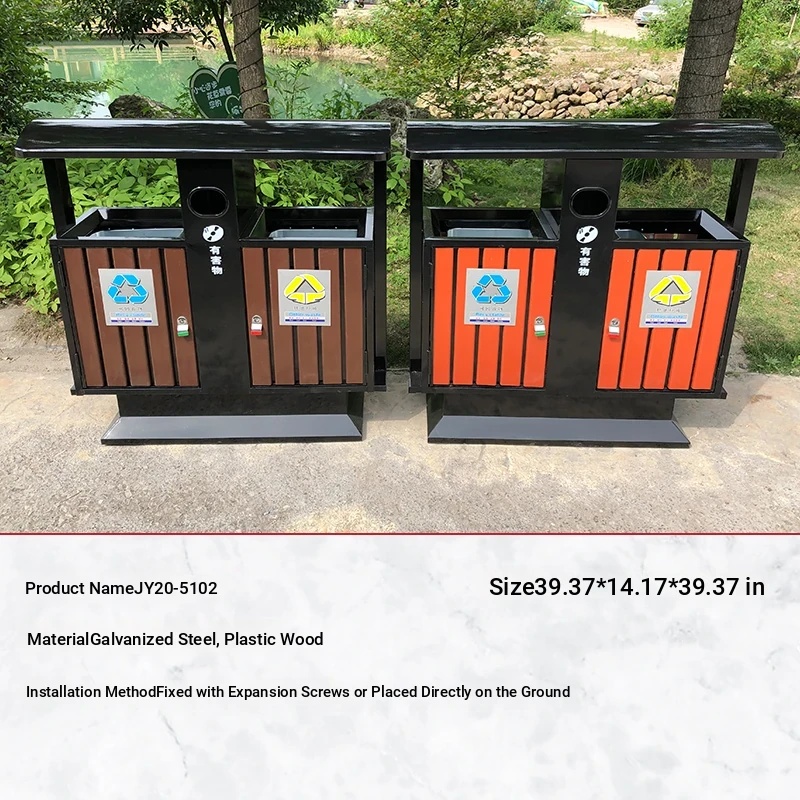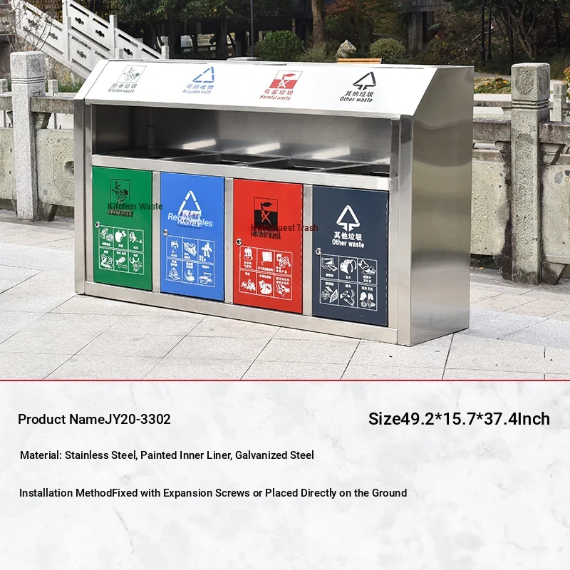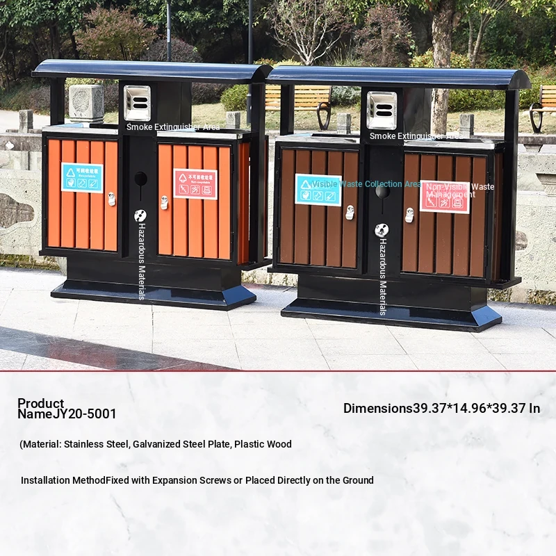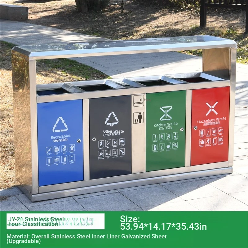 Stainless Steel Outdoor Trash Can - Large Dual Bin Recycling Bin for Parks, Communities, and Scenic Areas - Perfect for Waste Separation and Cleanliness