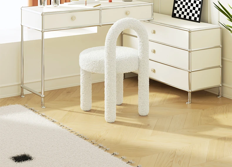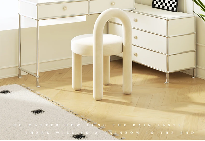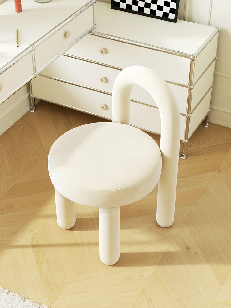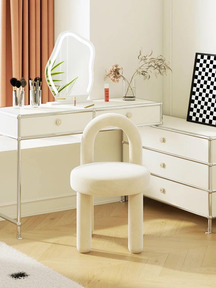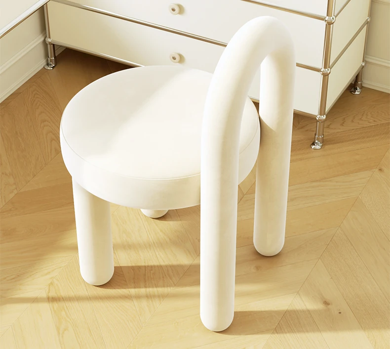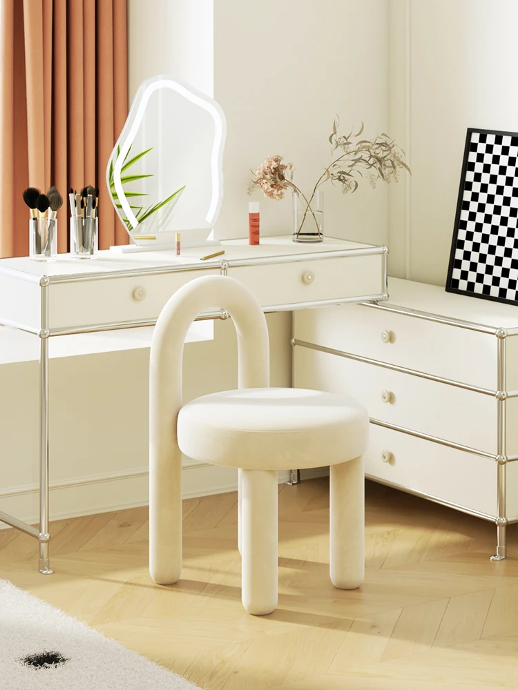 Stylish Cream Design Makeup Chair - Modern Minimalist Vanity Stool for Bedroom, Perfect for Influencers and Beauty Enthusiasts