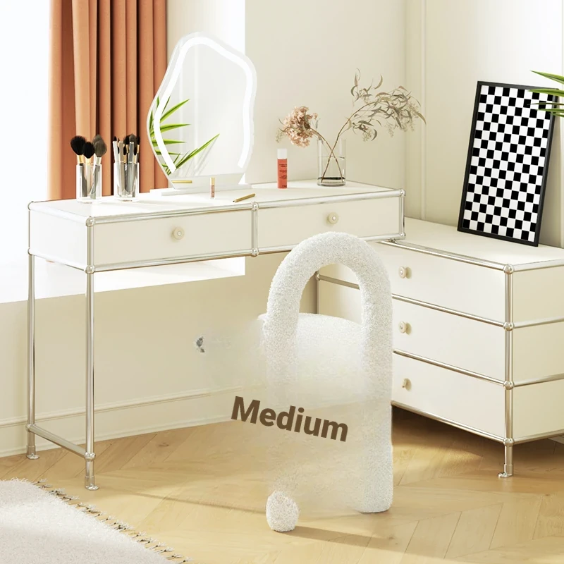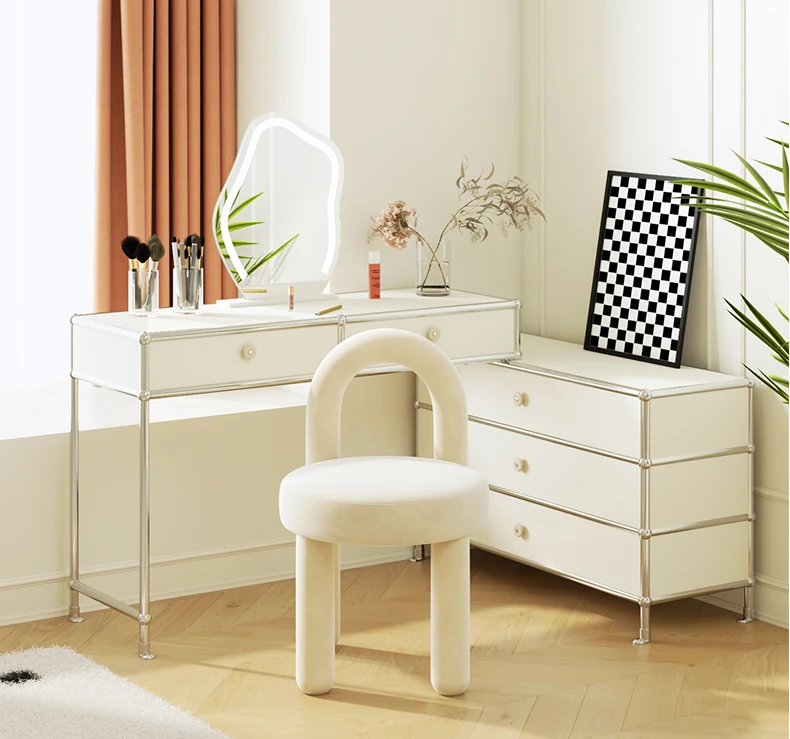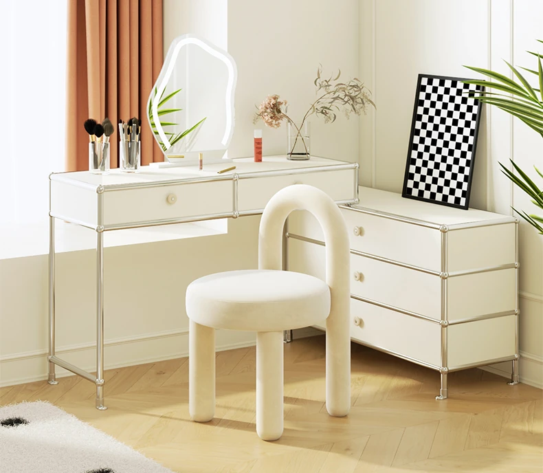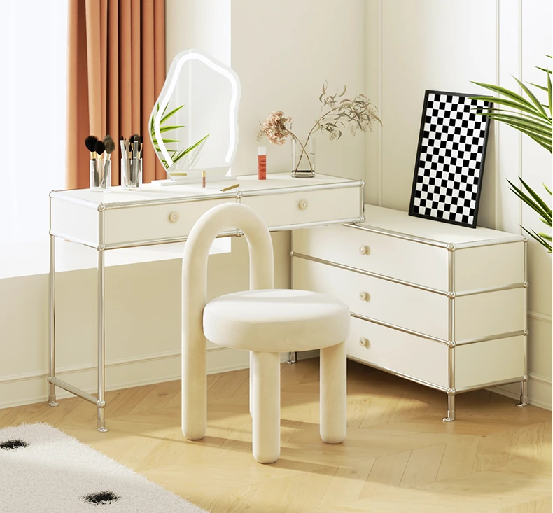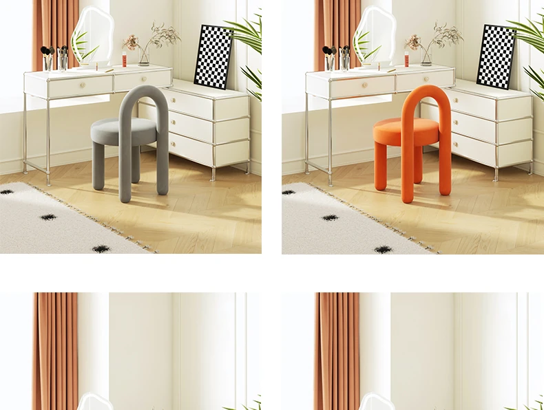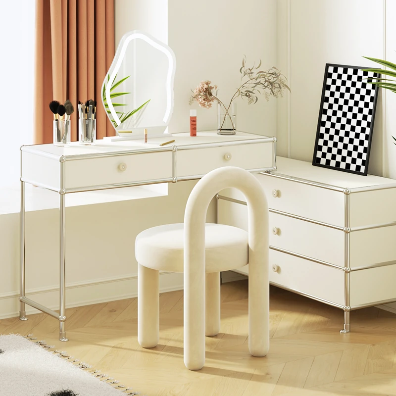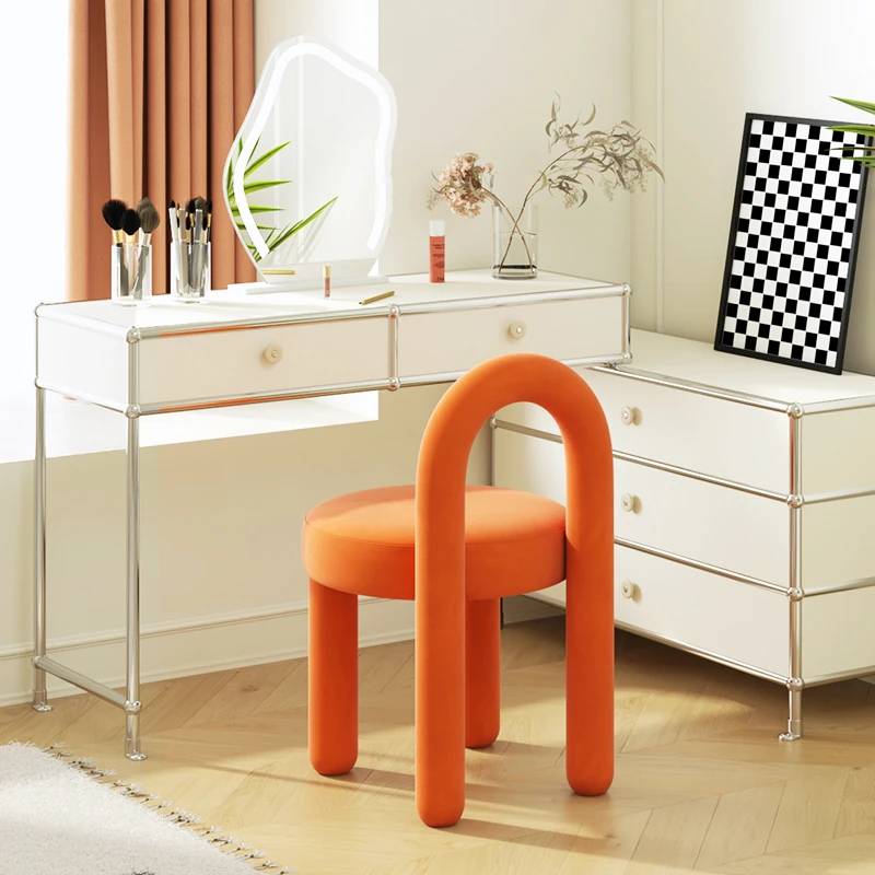 Stylish Cream Design Makeup Chair - Modern Minimalist Vanity Stool for Bedroom, Perfect for Influencers and Beauty Enthusiasts