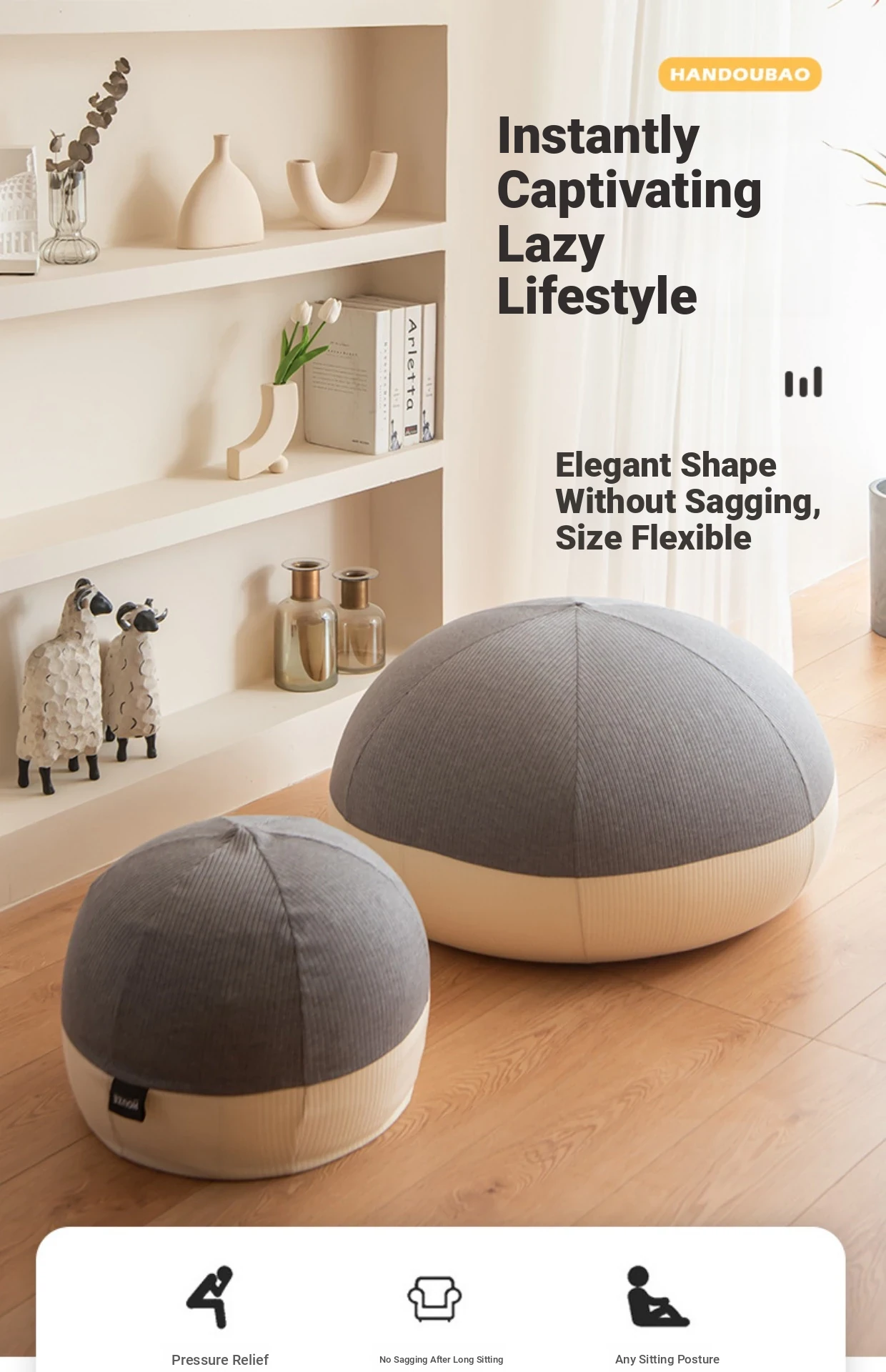 Trendy Lazy Sofa - Minimalist Round Bean Bag for Balcony, Sleep-Friendly Lounge Chair, Perfect for Tatami or Small Bedrooms - Comfortable Single Sofa for Relaxation