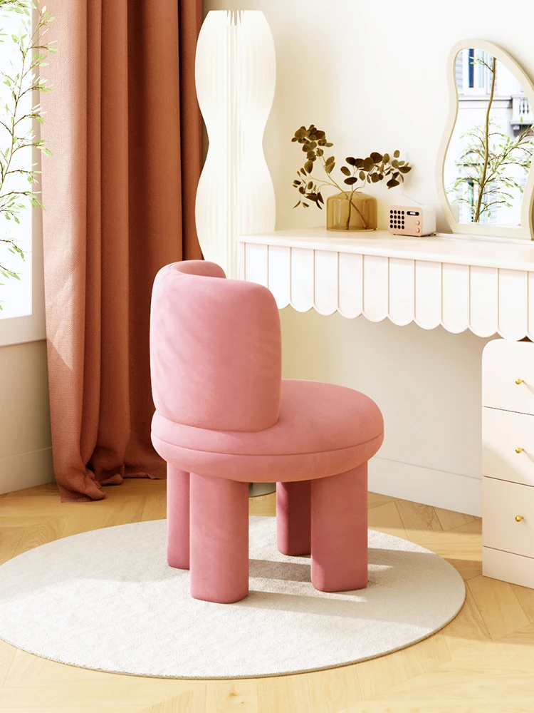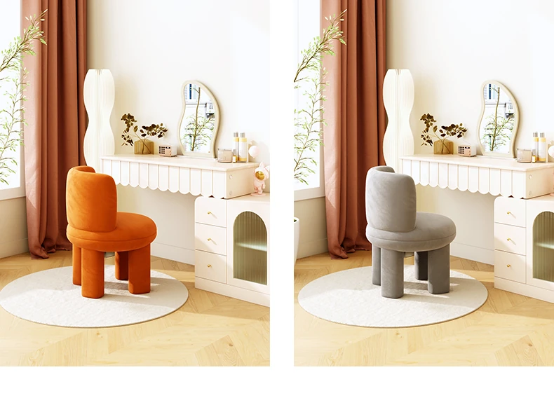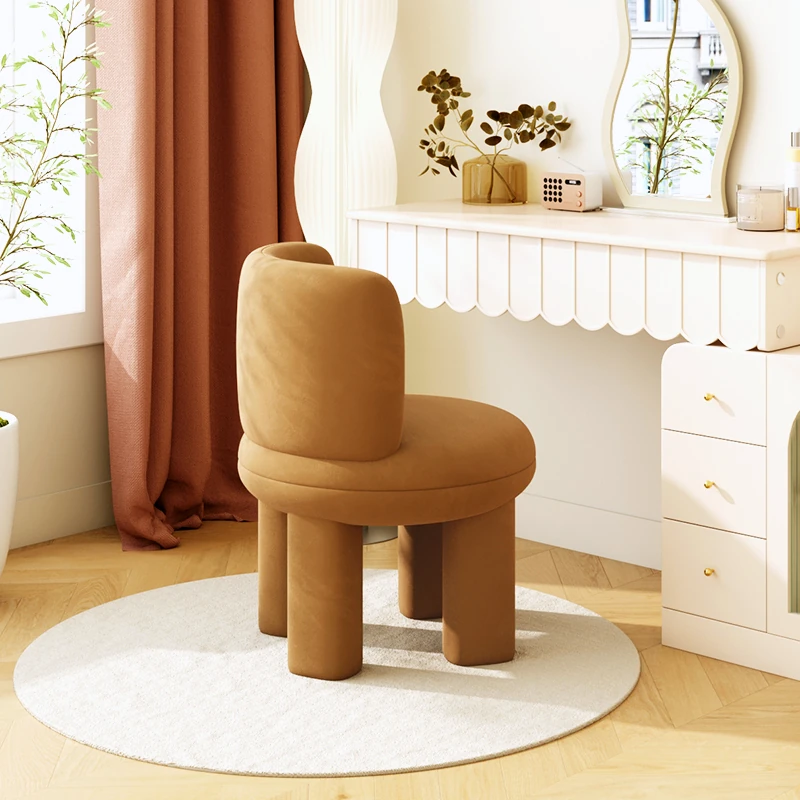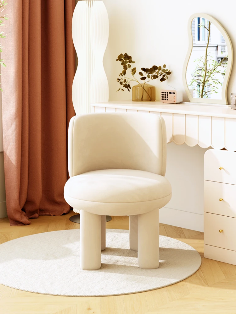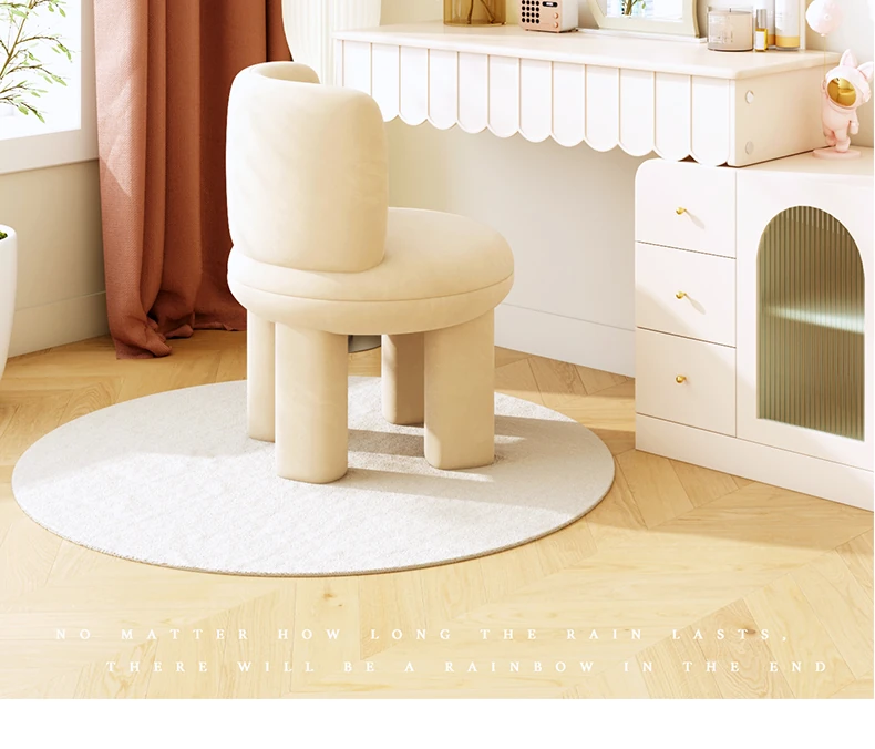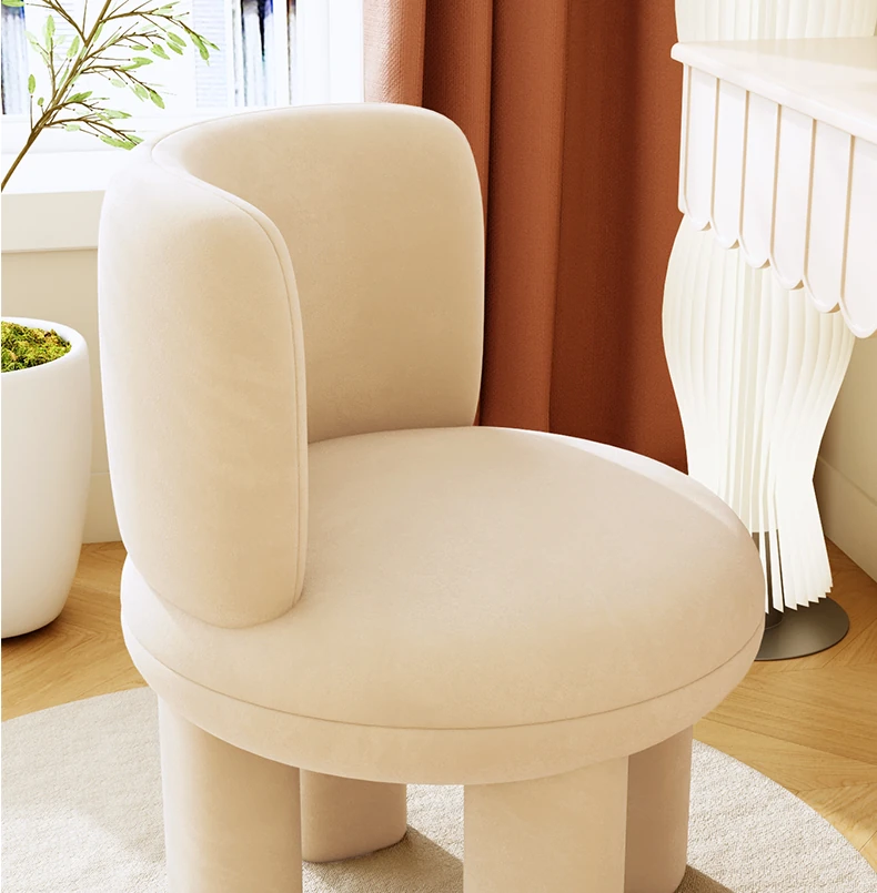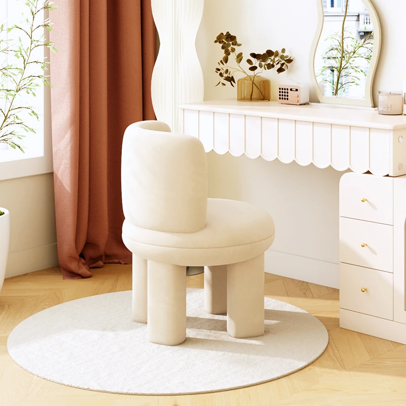 Trendy Makeup Stool - Stylish Vanity Chair for Bedroom, Home Use Round Ottoman, Chic Creamy Accent Chair, Perfect for Your Dressing Table