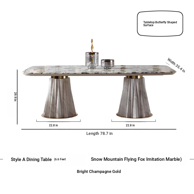 A dining table (94.49in snow mountain flying fox imitation marble)