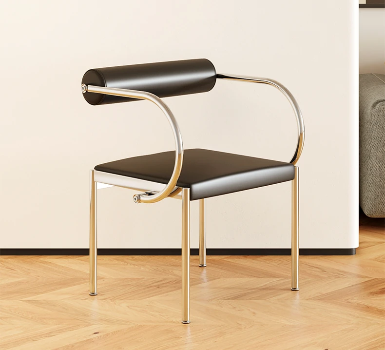 Vintage-Inspired Designer Dining Chair - Stainless Steel Retro Style for Study, Bedroom, and Makeup Vanity - Trendy and Chic!