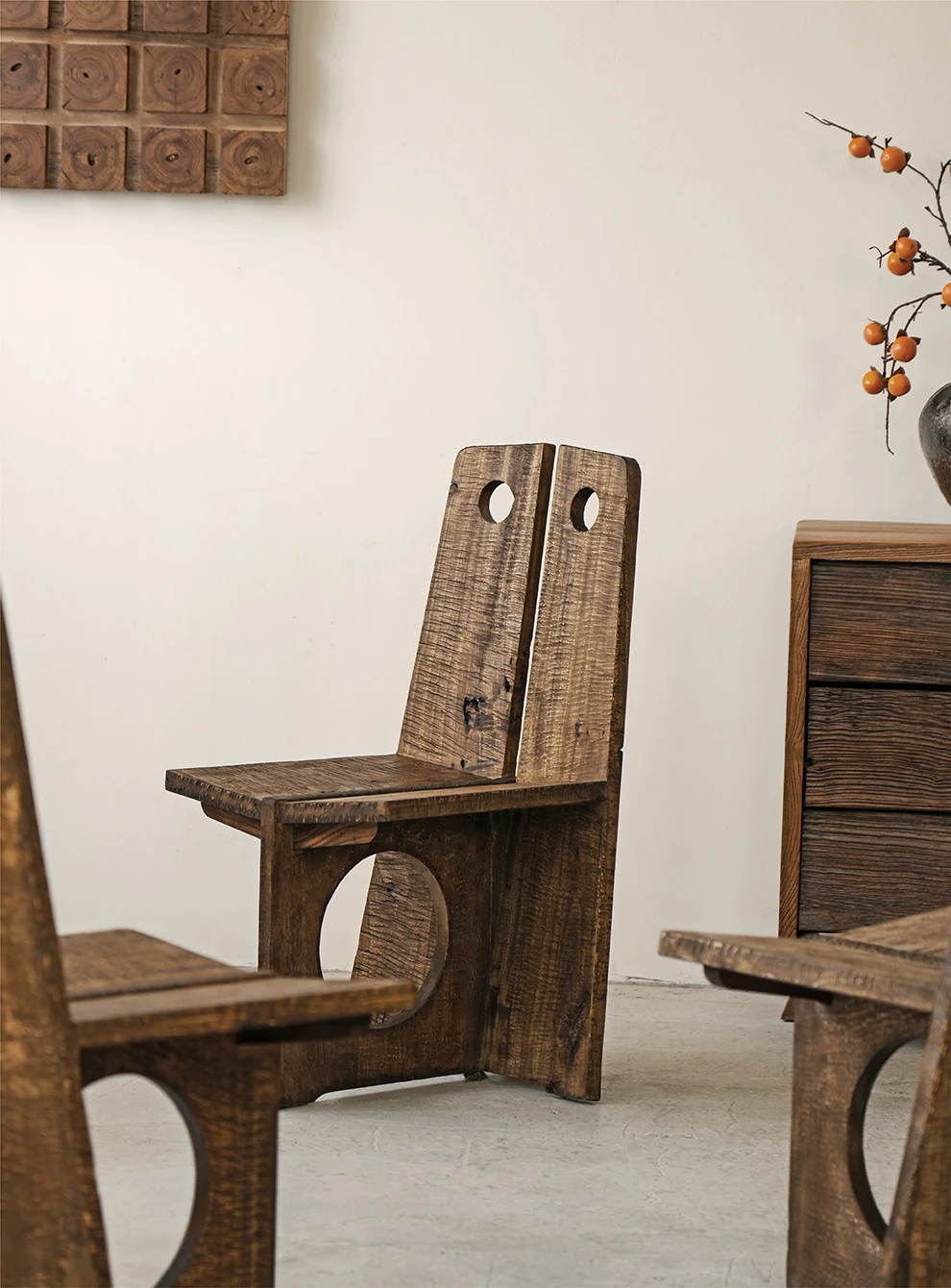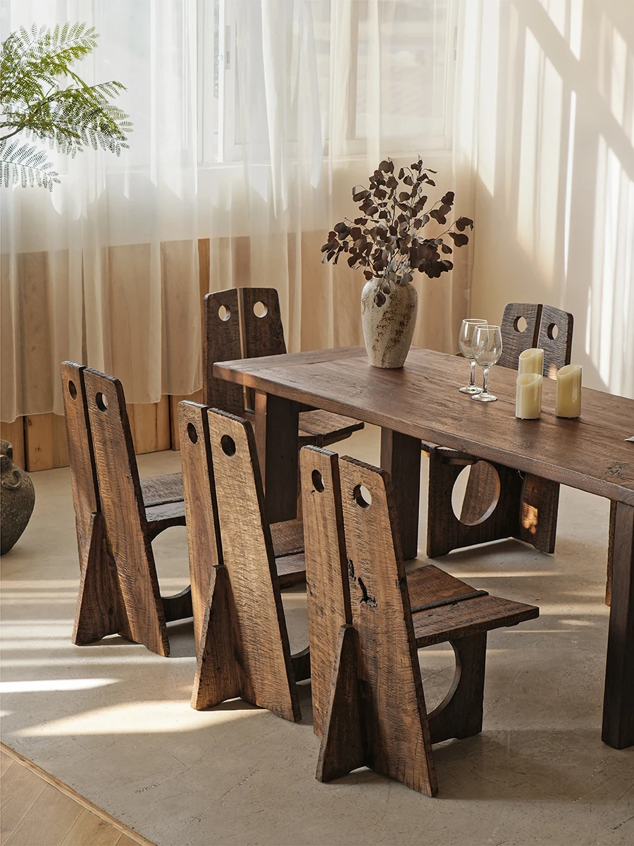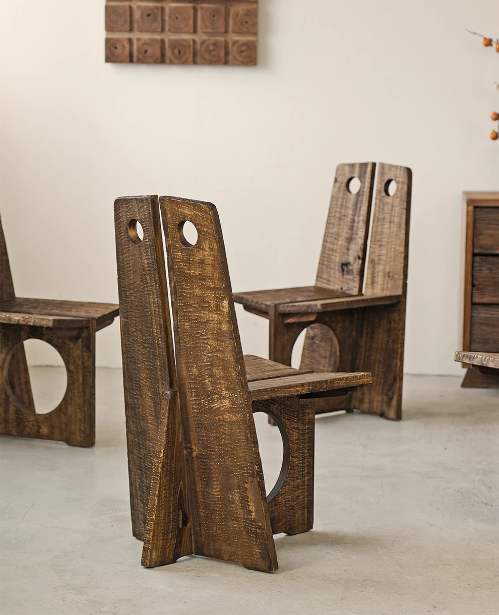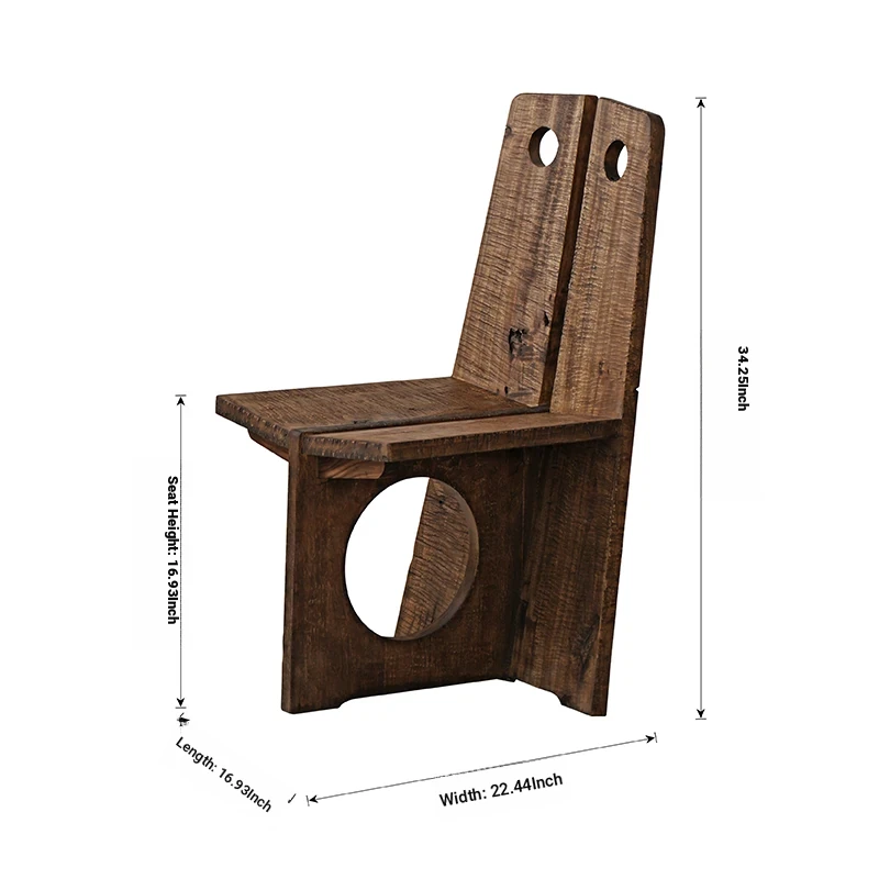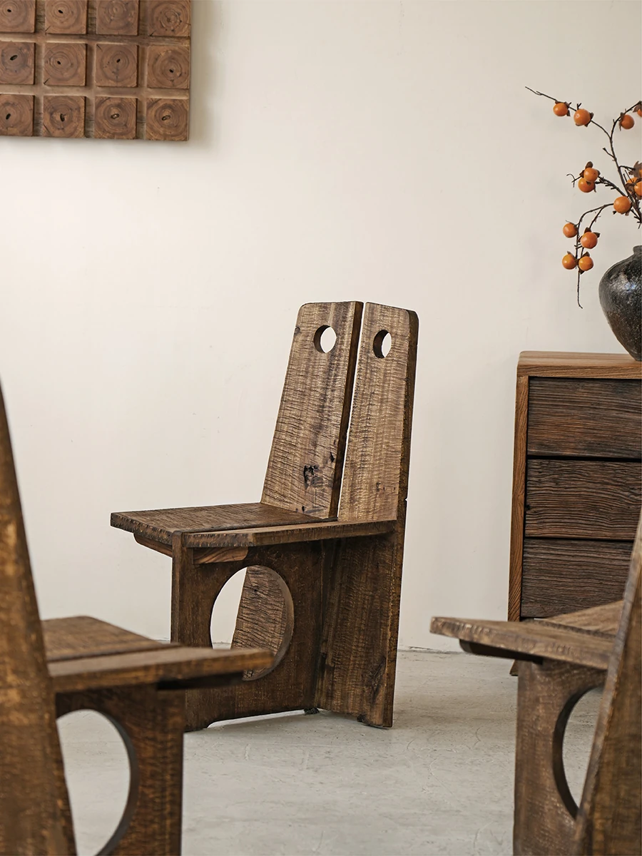 Wabi-Sabi Style Solid Wood Antique-Inspired Dining Chair with Backrest - Perfect for Hotels, Cafes, and Guesthouses - Designer Round Hole Lounge Chair for a Relaxed Atmosphere