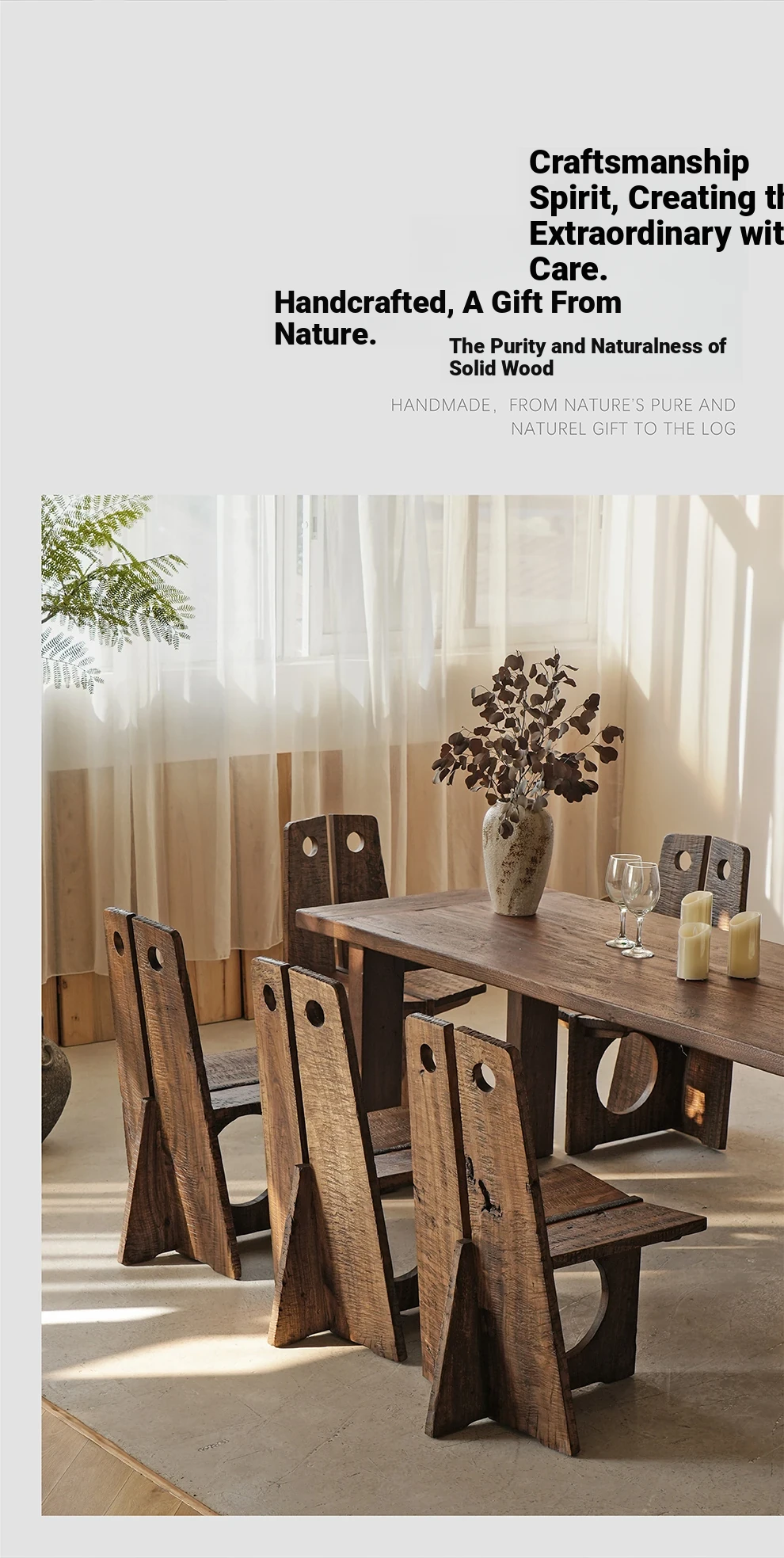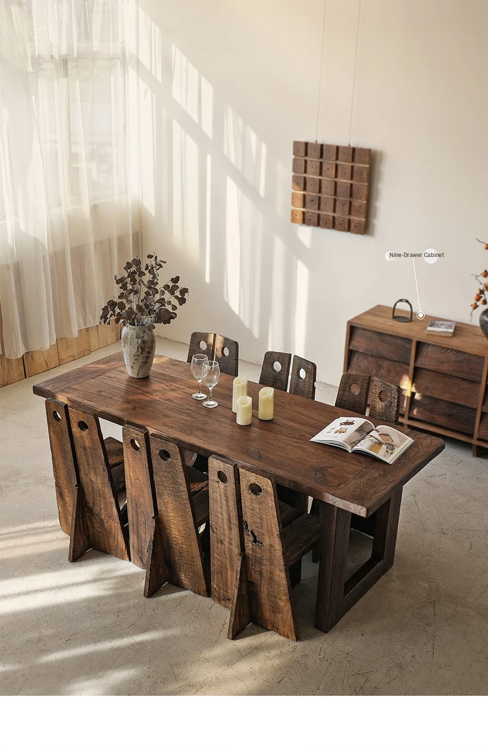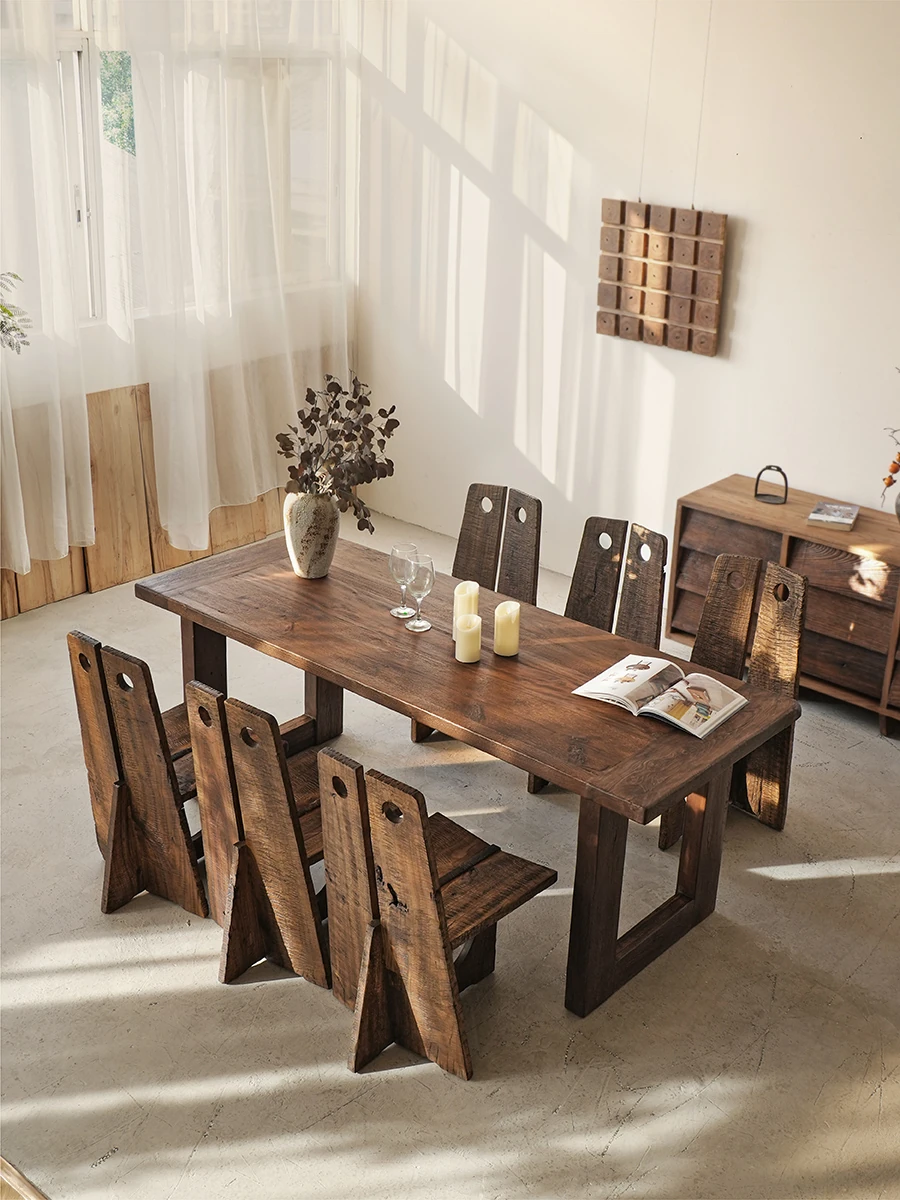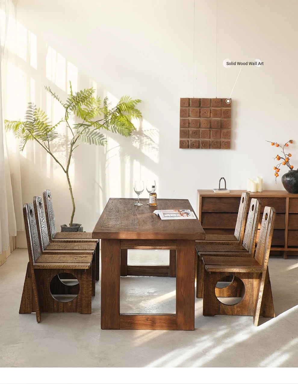 Wabi-Sabi Style Solid Wood Antique-Inspired Dining Chair with Backrest - Perfect for Hotels, Cafes, and Guesthouses - Designer Round Hole Lounge Chair for a Relaxed Atmosphere