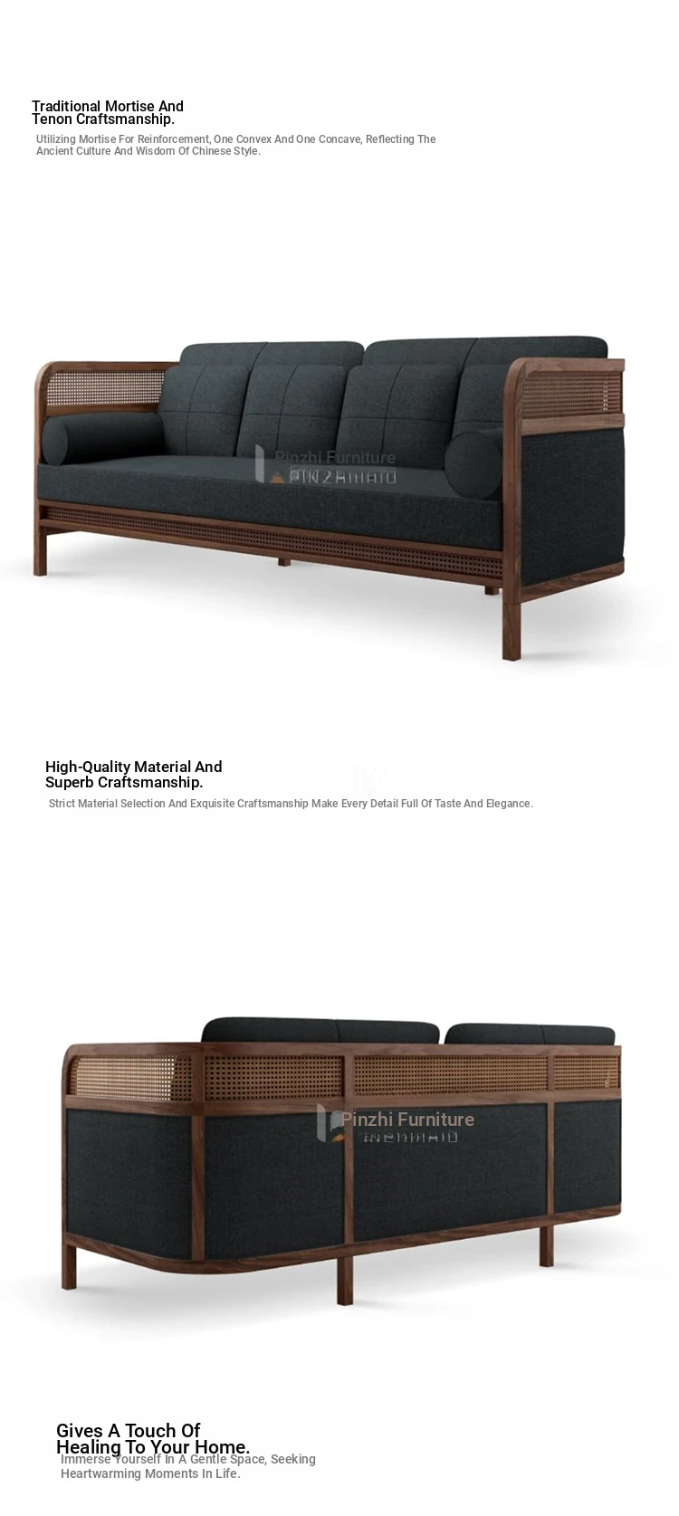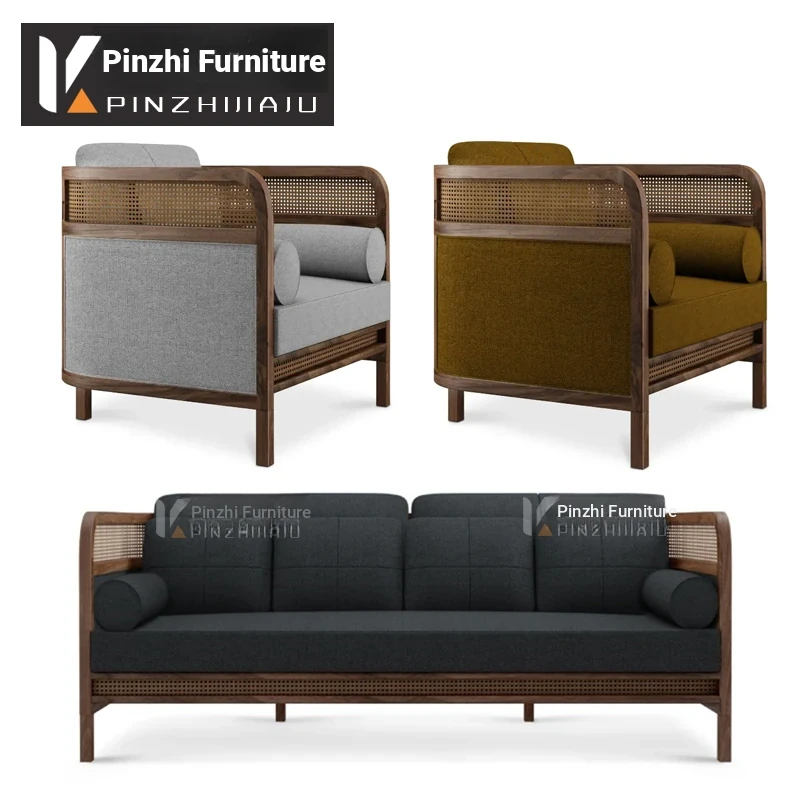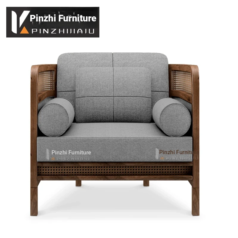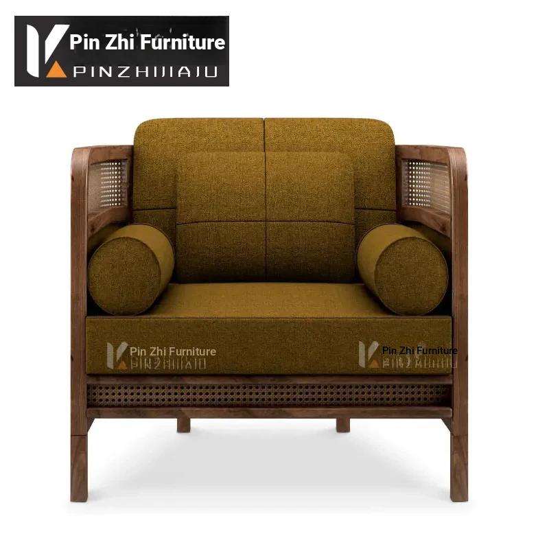 Wabi-Sabi Style Solid Wood Sofa for Hotels and Clubs - Elegant Reception Seating for Sales Offices and Lounges - Comfortable Armchair for Relaxation