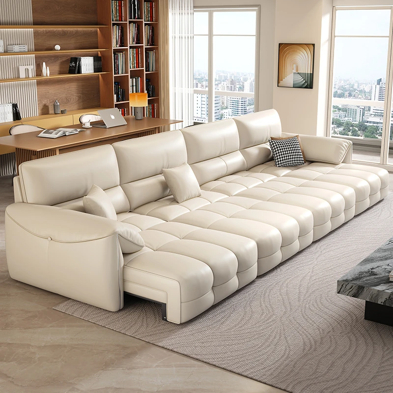 Electric Sofa Bed with Adjustable and Expandable Features - Stylish Real Leather 3-in-1 Design for Living Room, Perfect for Relaxing and Sleeping, Accommodates 3-4 People, Ideal for Modern Homes