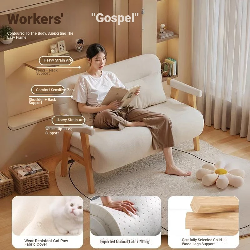Lazy Sofa Bed: Versatile Folding Two-Person Lounge Chair for Small Apartments - Perfect for Bedrooms and Balconies, Ideal for Kids and Relaxation!