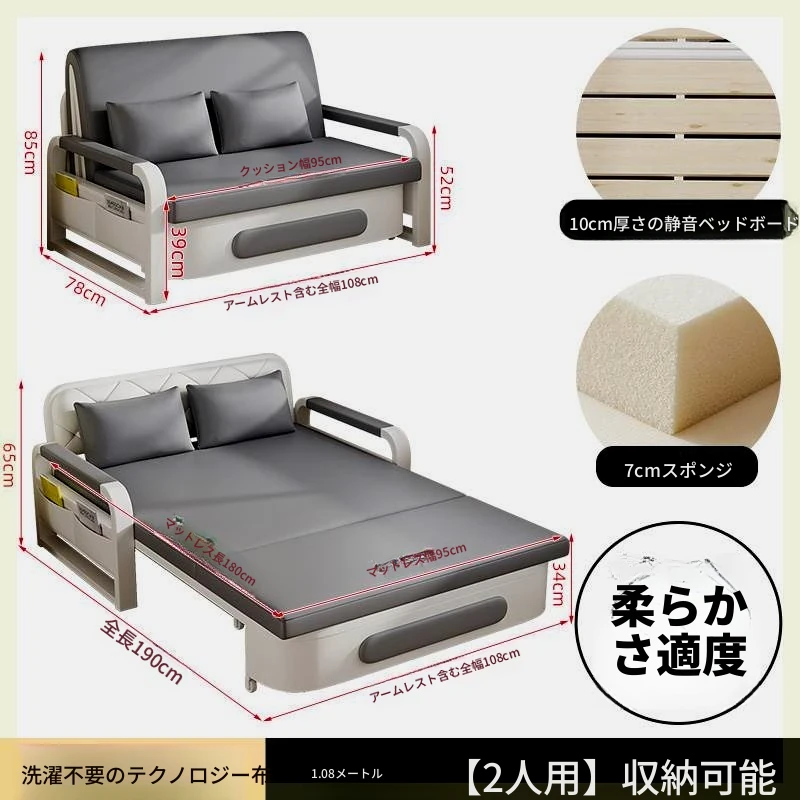 【幅1.08メートル収納タイプ】+7センチメートルスポンジ(テクノロジー布グレー)