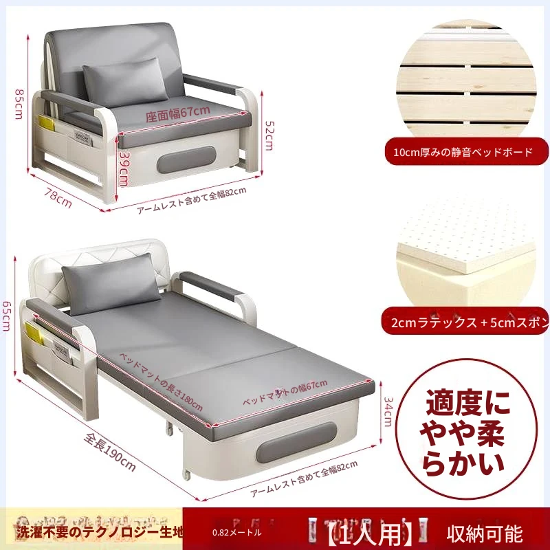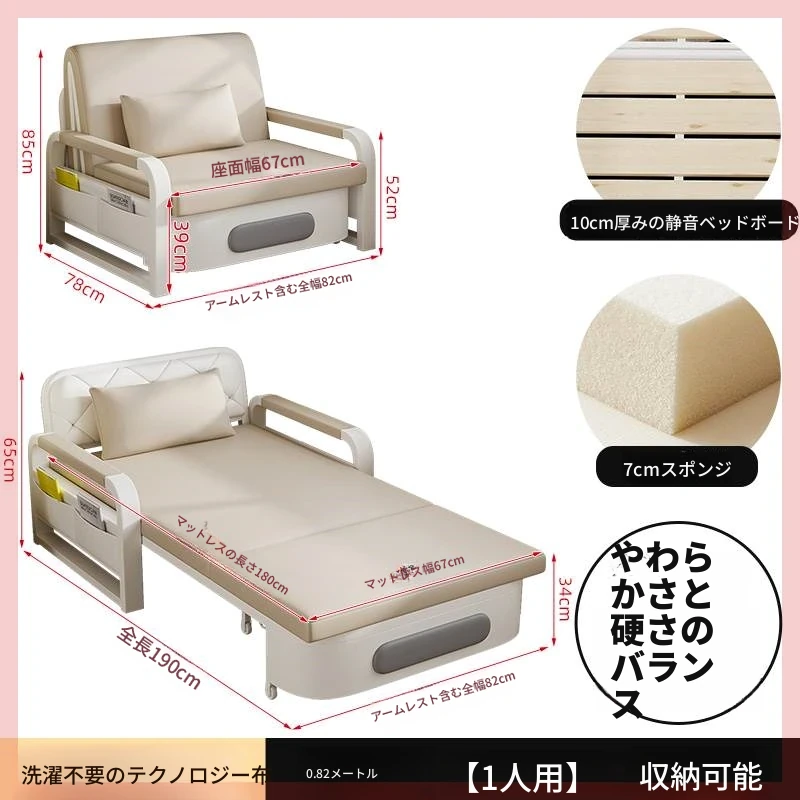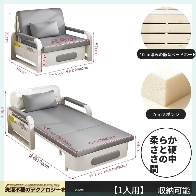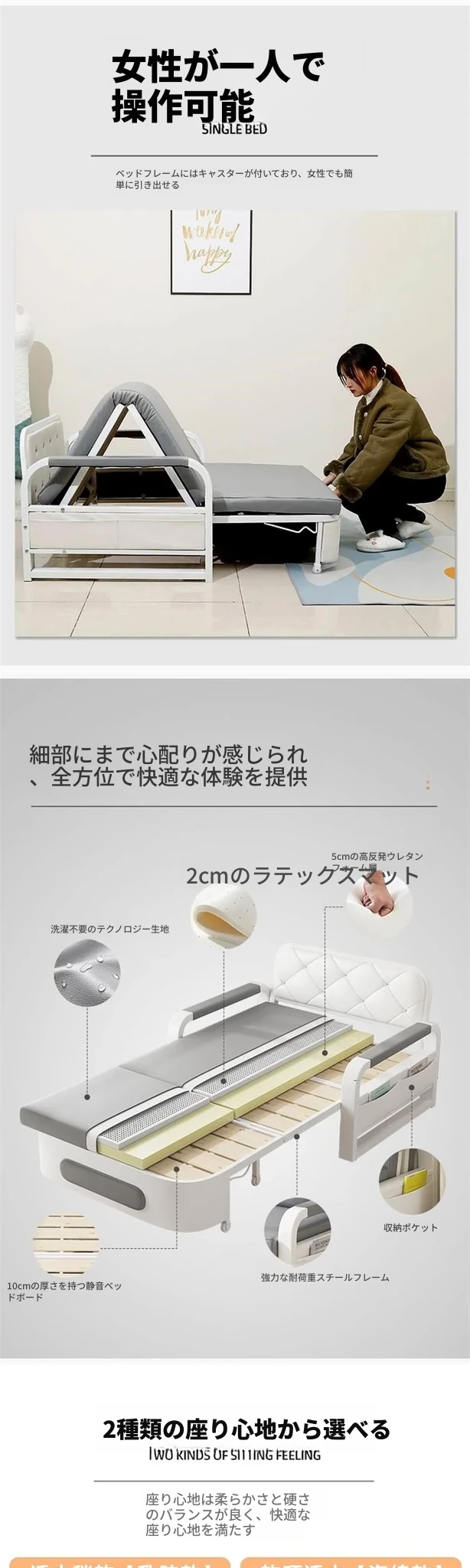 2023年新作!一人用ソファベッド 折りたたみ式 多機能デザイン 小型住宅に最適!バルコニーにもぴったり!簡単に操作できるテクノロジー布製で、快適な睡眠空間を実現!