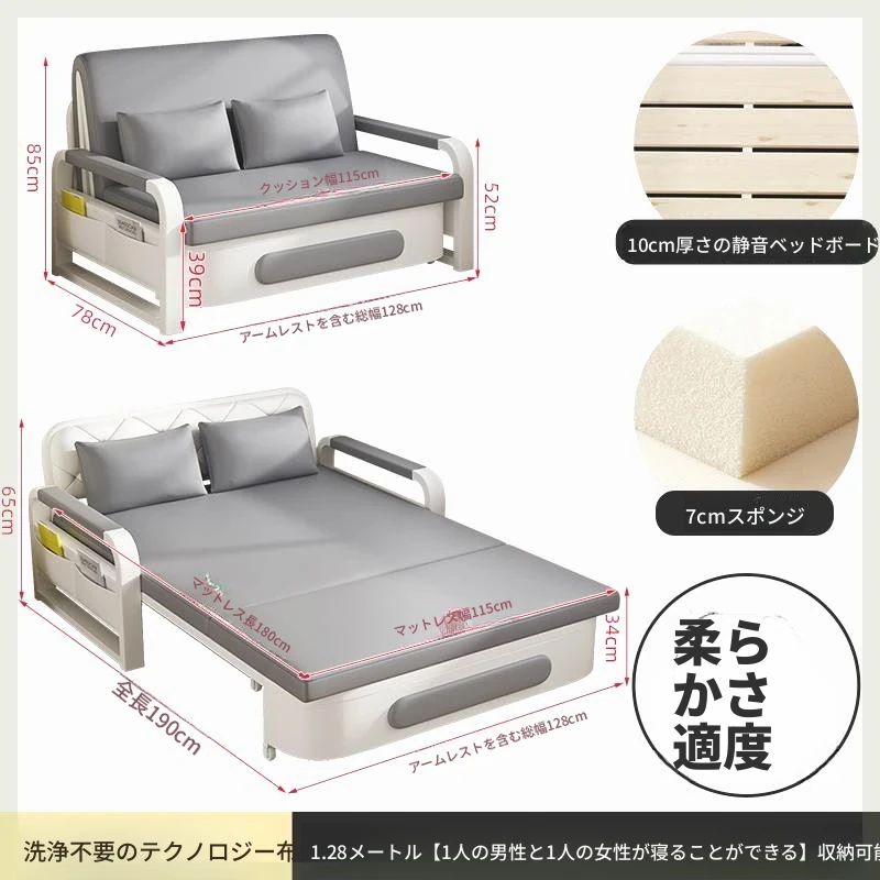 【幅1.28メートル収納タイプ】+7センチメートルスポンジ(テクノロジー布グレー)