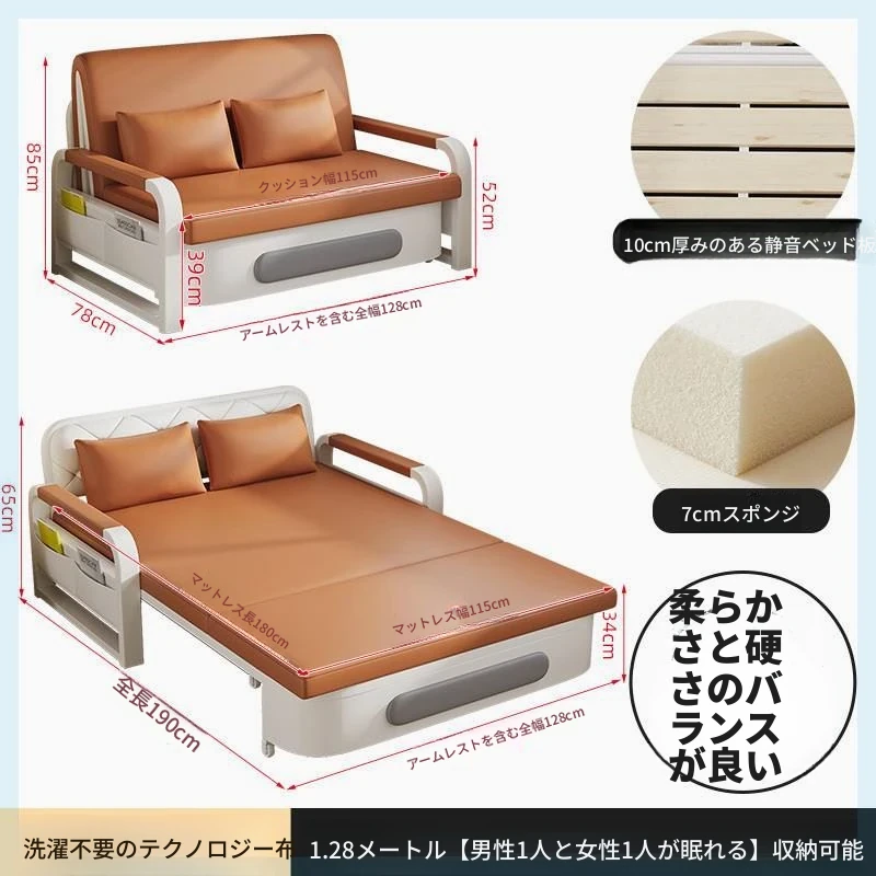 【幅1.28メートル収納タイプ】+7センチメートルスポンジ(テクノロジー布オレンジ)