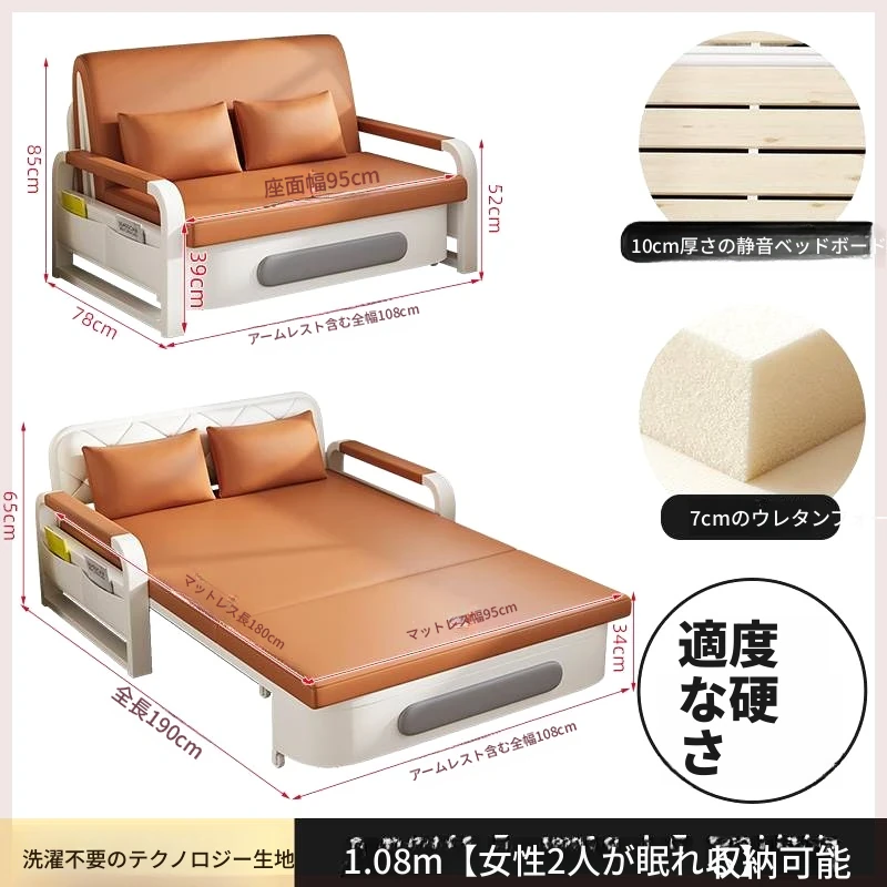 【幅1.08メートル収納タイプ】+7センチメートルスポンジ(テクノロジー布オレンジ)