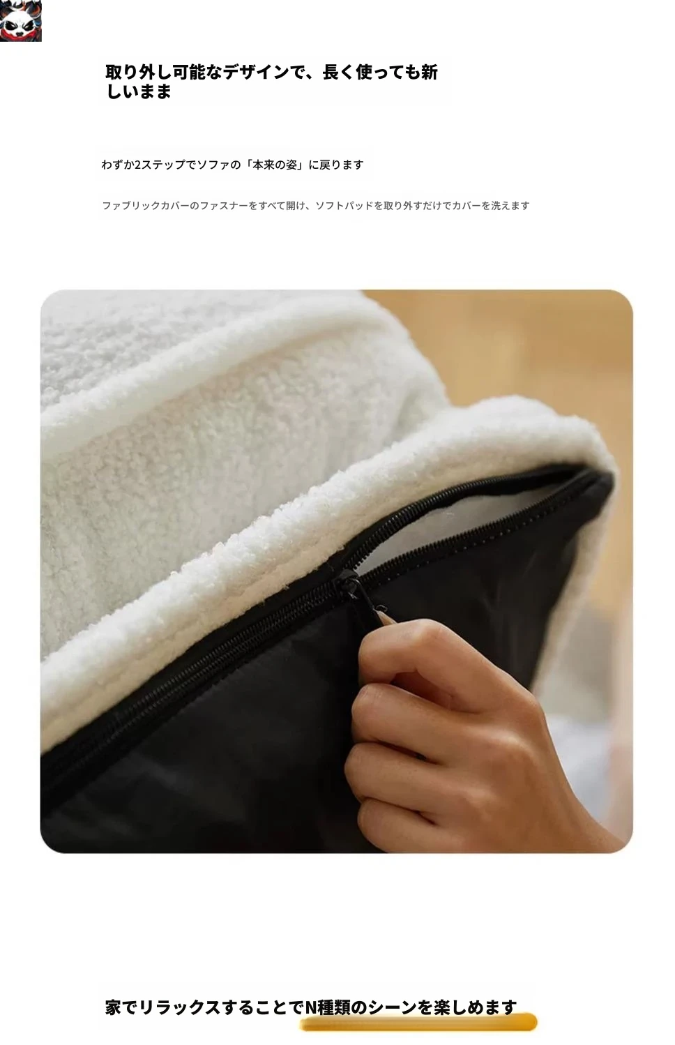 アイボリー-【特大サイズ200*95】アップグレード厚手【肌触りの良いラムフリース】クッションマット付き