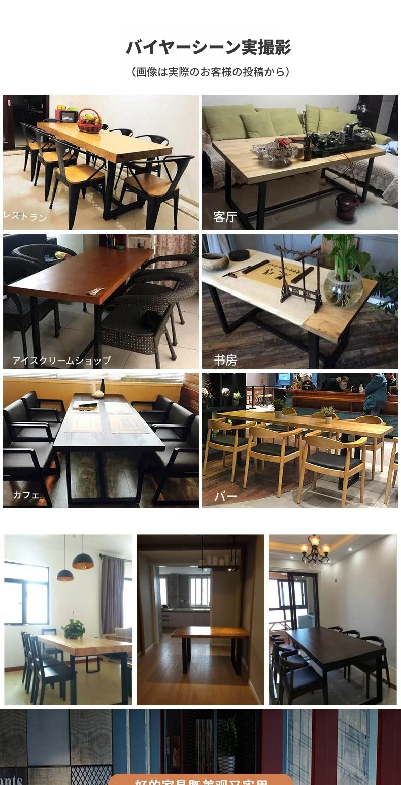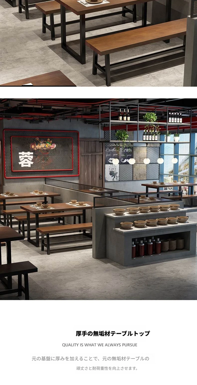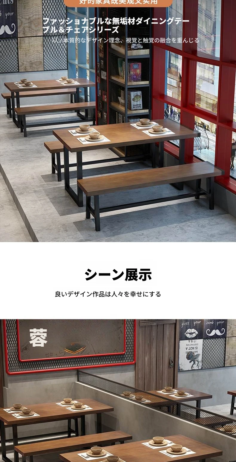 アメリカンスタイルの無垢材ダイニングテーブル|アイアン製の長方形カフェテーブル|レトロなデザインのホットポットテーブル&チェアセット|ホテルやレストランに最適!おしゃれで使いやすい!