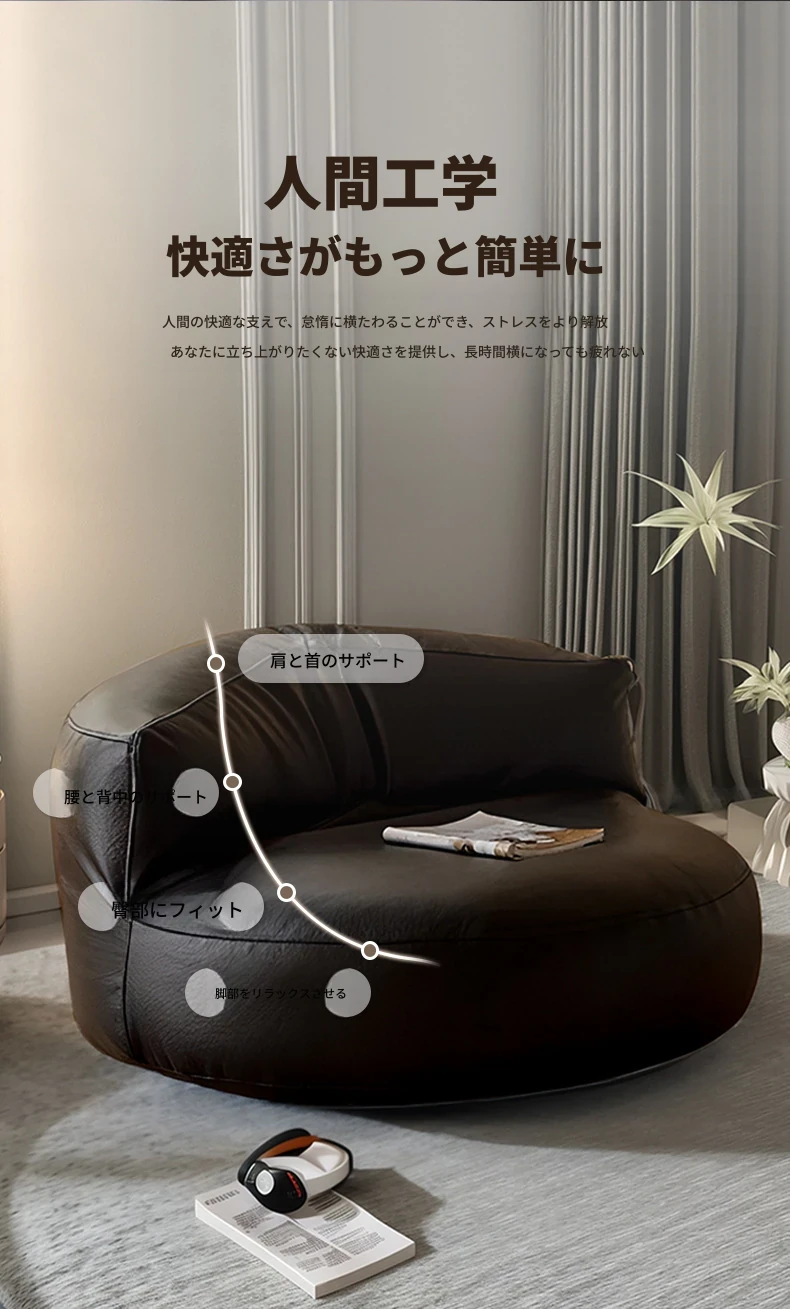 バルコニー用リラックスソファ!寝転んでも座ってもOKな快適チェア。小さなスペースにもぴったりなリラックス椅子で、寝室やタタミルームに最適です。あなたのくつろぎタイムをサポートします!