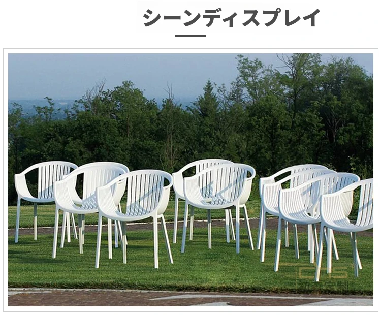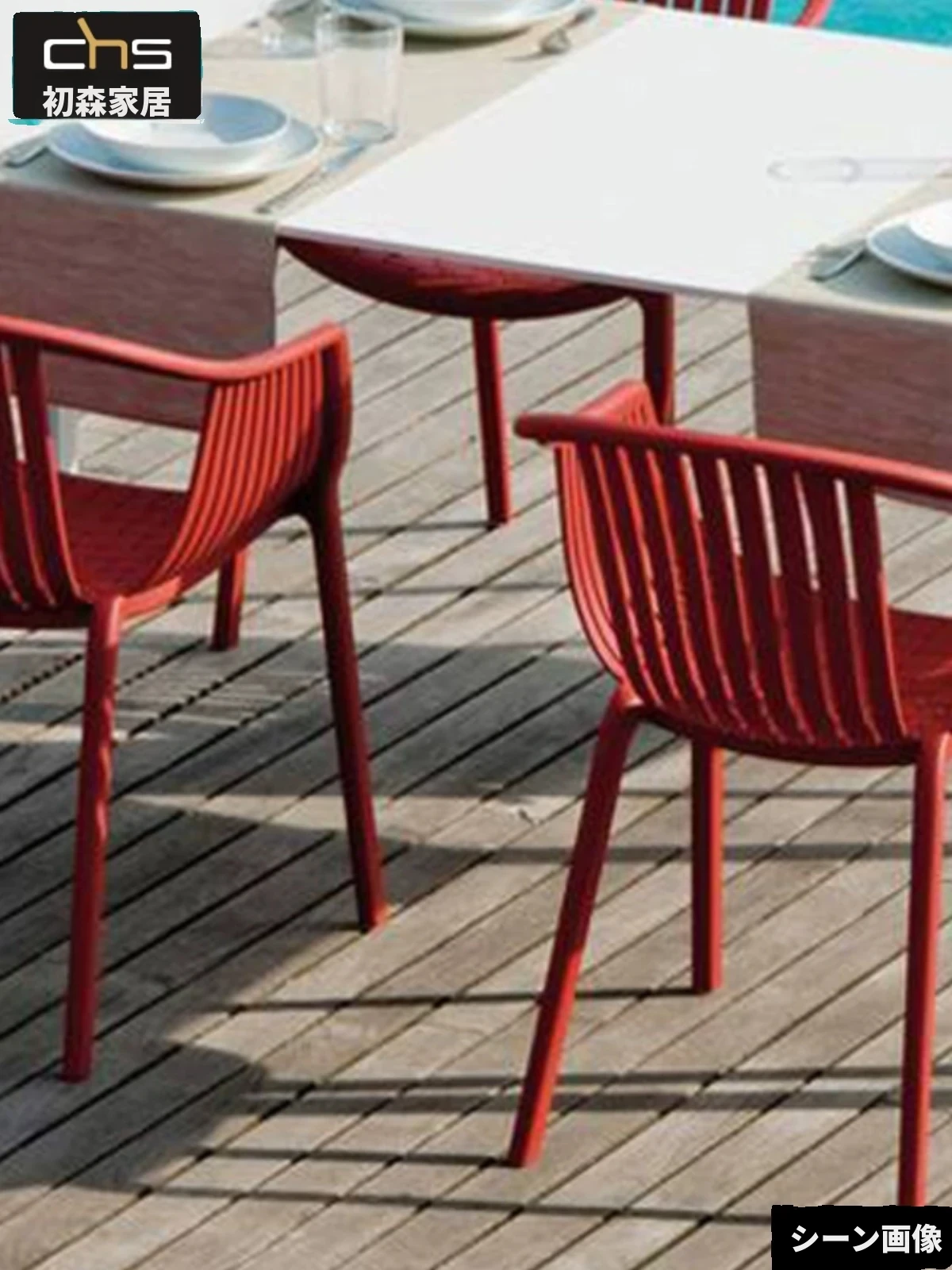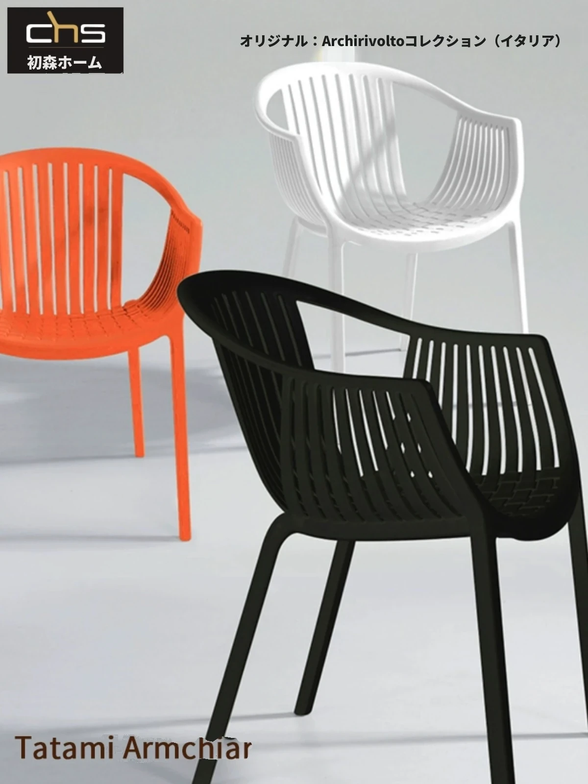 初森タタミアームチェア - 北欧スタイルのカフェやティーショップに最適!丈夫なプラスチック製の背もたれ付きで、快適な座り心地を提供します。おしゃれなデザインで、商業用にも家庭用にもぴったり!