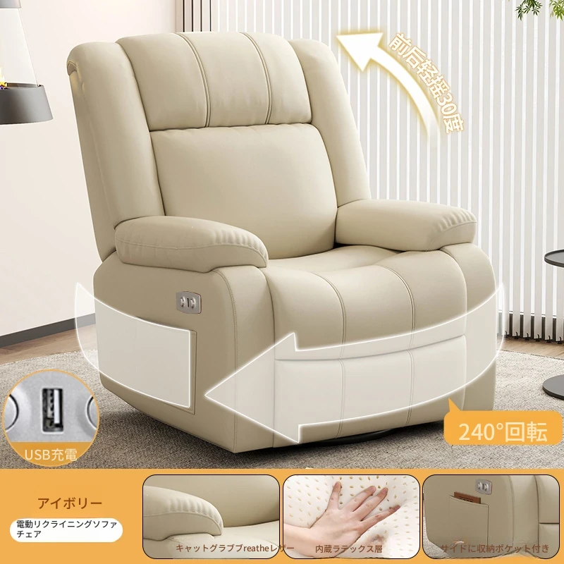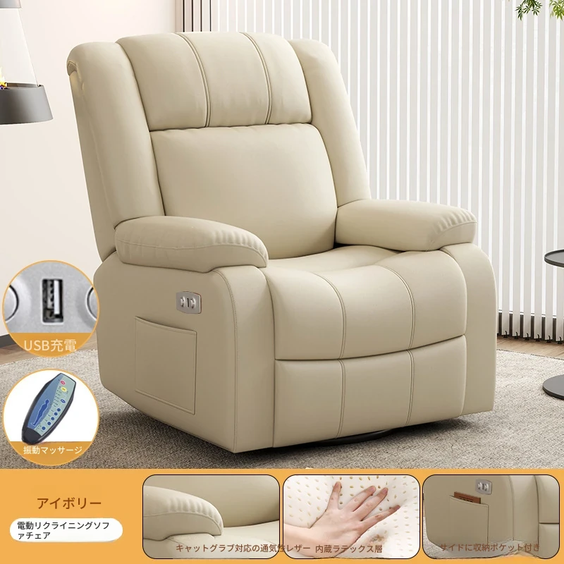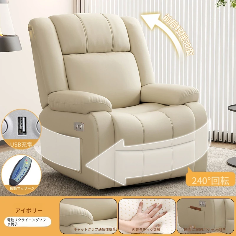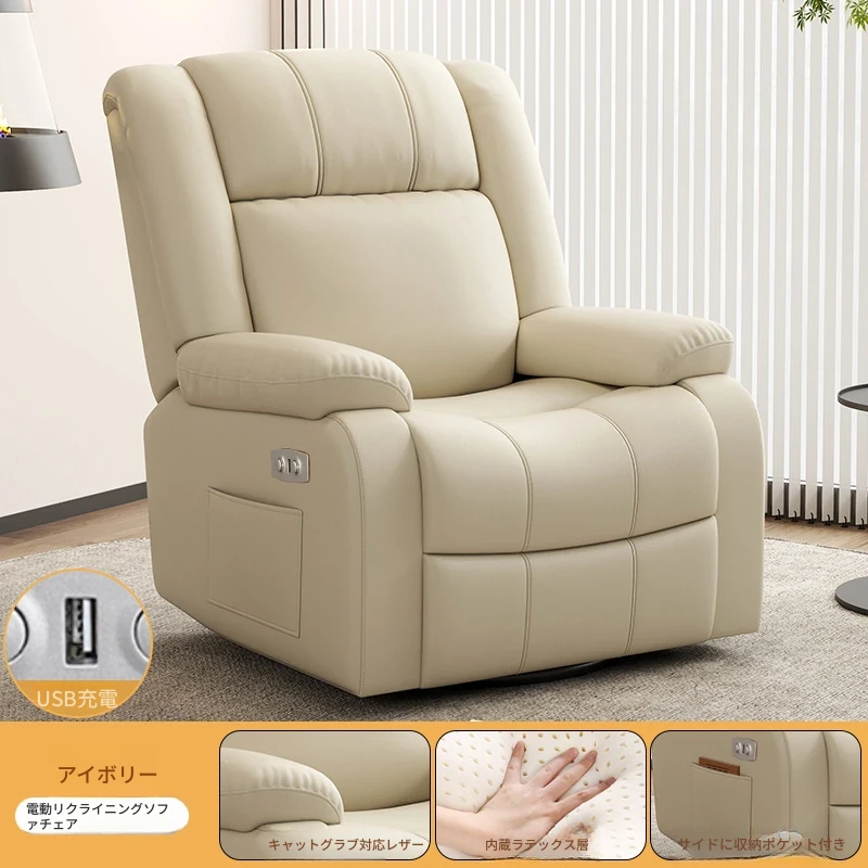 【キャットスクラッチレザー】ベージュ-電動リクライニング+回転+振動マッサージ
