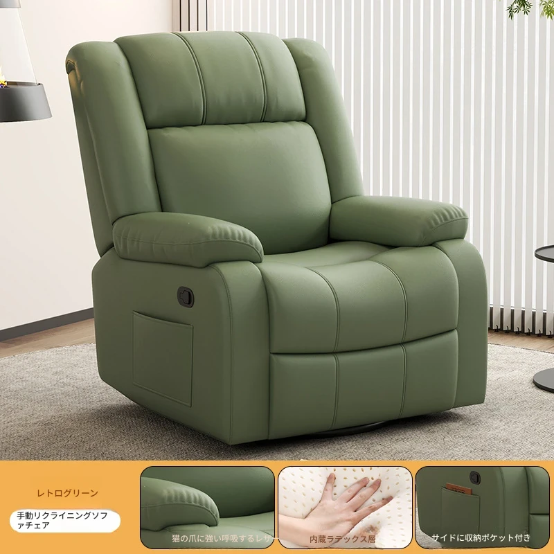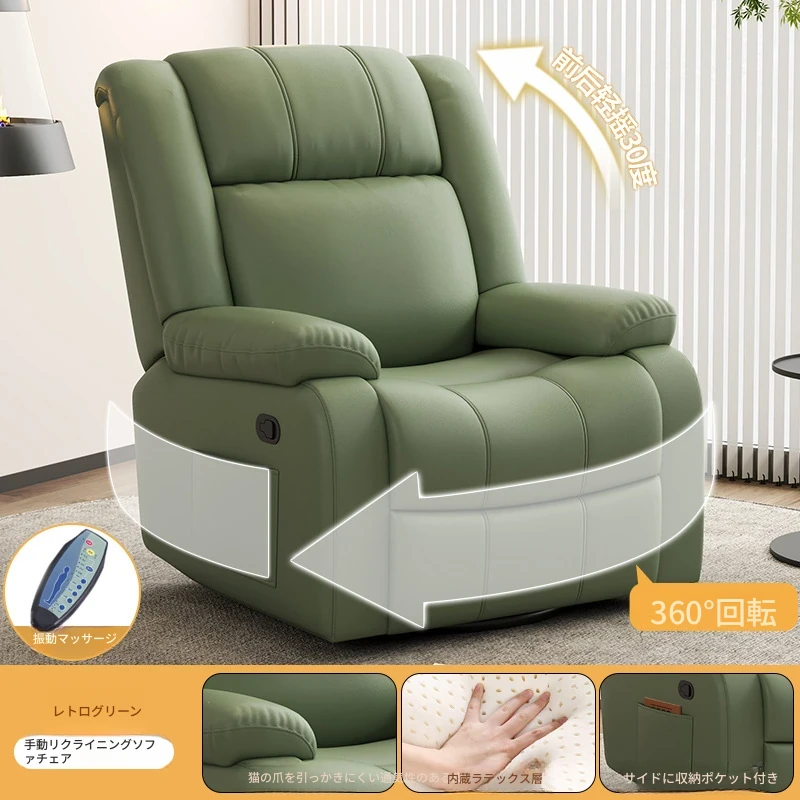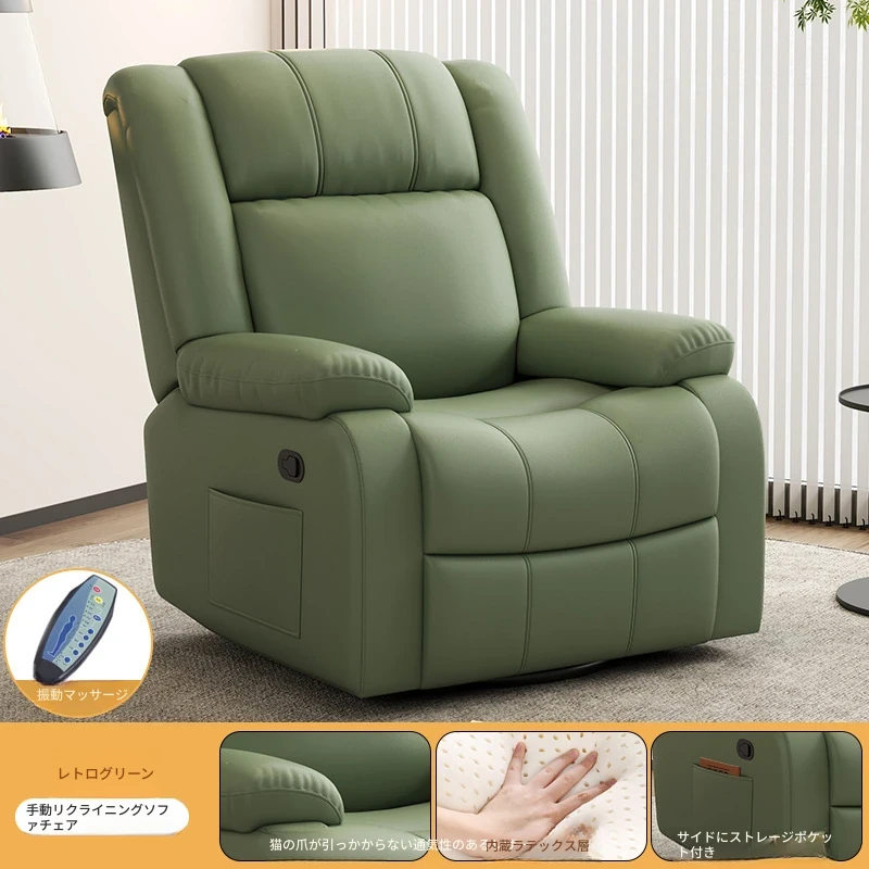 【キャットスクラッチレザー】ビンテージグリーン-手動リクライニング+回転+振動マッサージ