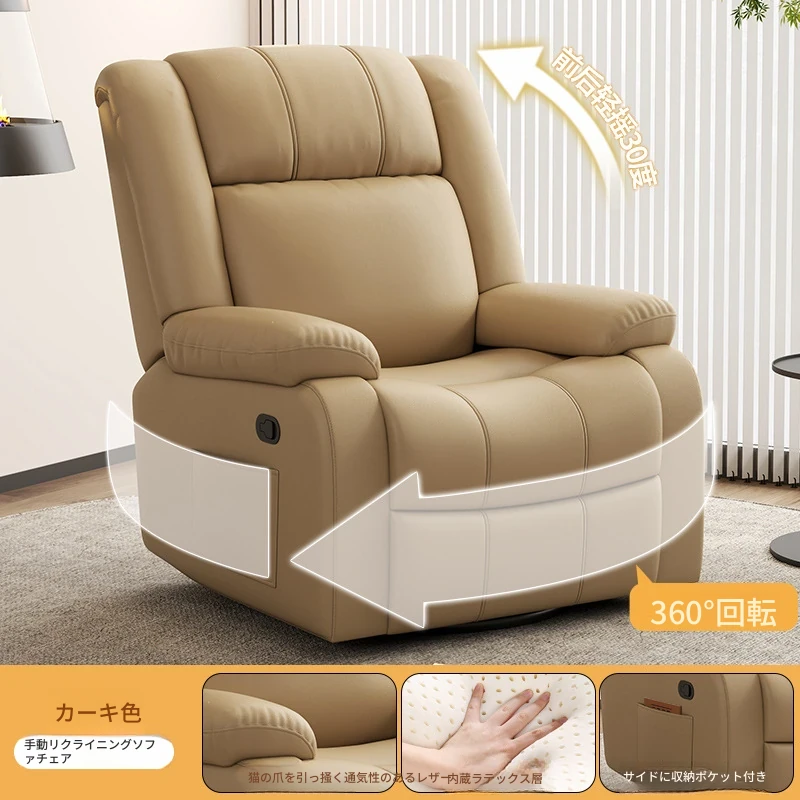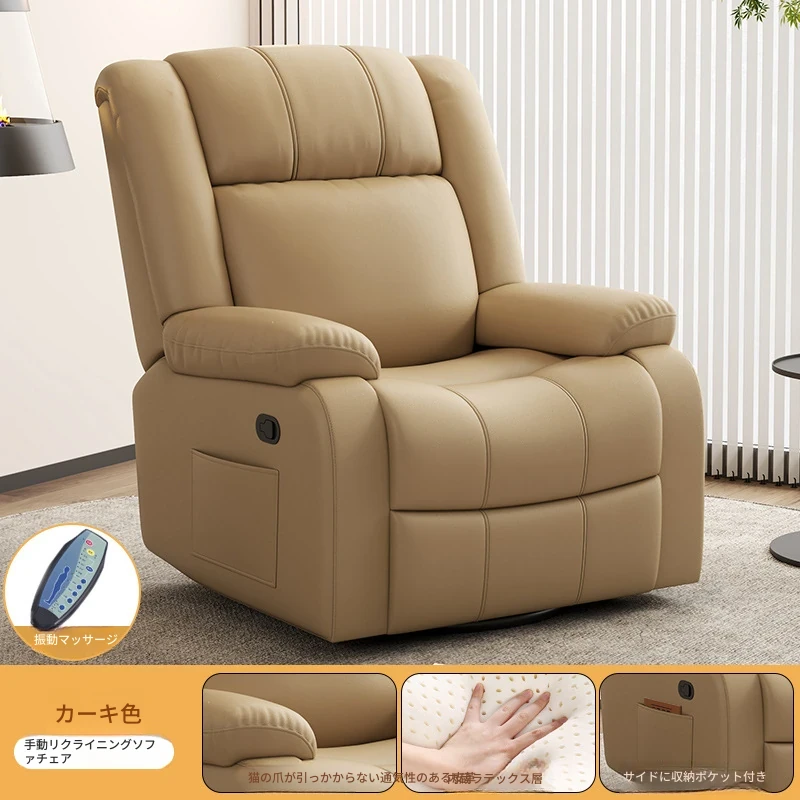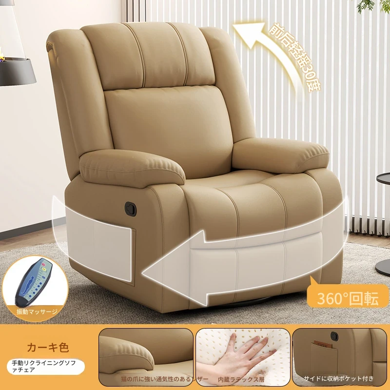 【キャットスクラッチレザー】カーキ-手動リクライニング+回転+振動マッサージ