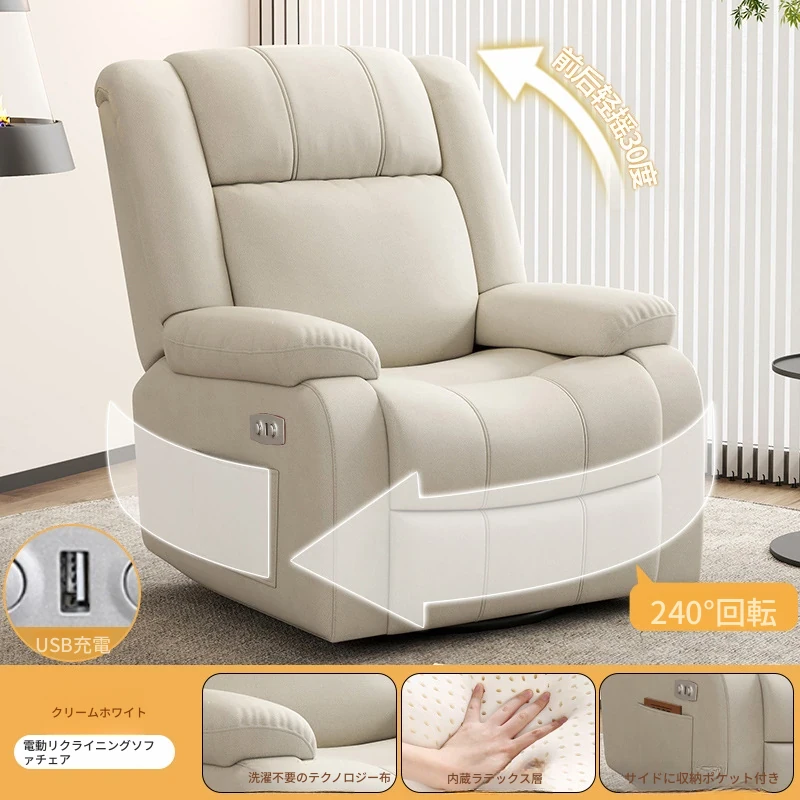 【テクノロジーファブリック】クリームホワイト-電動リクライニング+回転