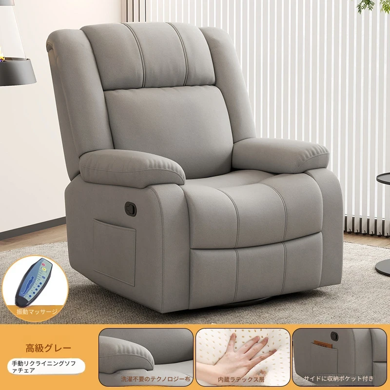【テクノロジーファブリック】ライトグレー-手動リクライニング+回転+振動マッサージ