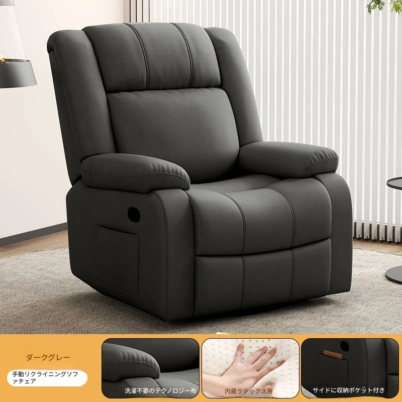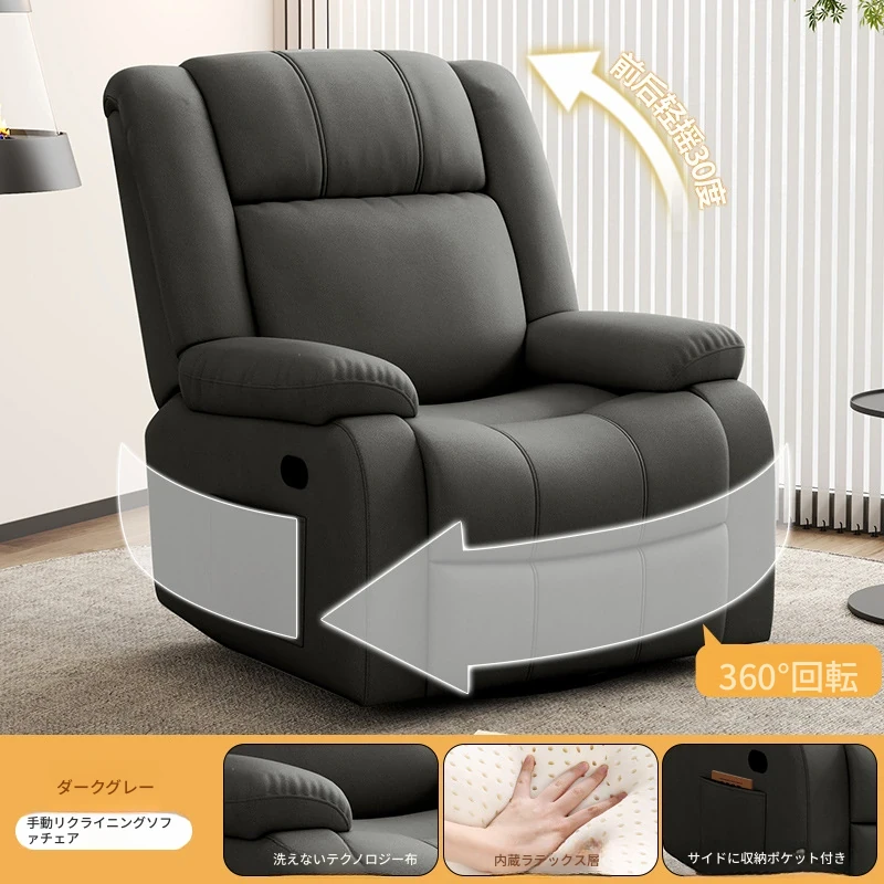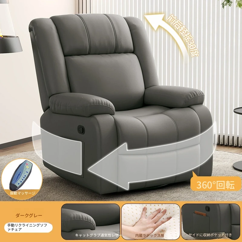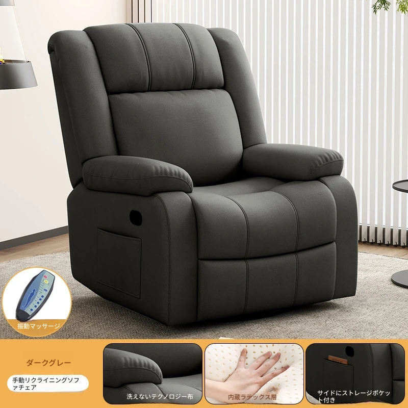 【テクノロジーファブリック】ダークグレー-手動リクライニング+回転+振動マッサージ
