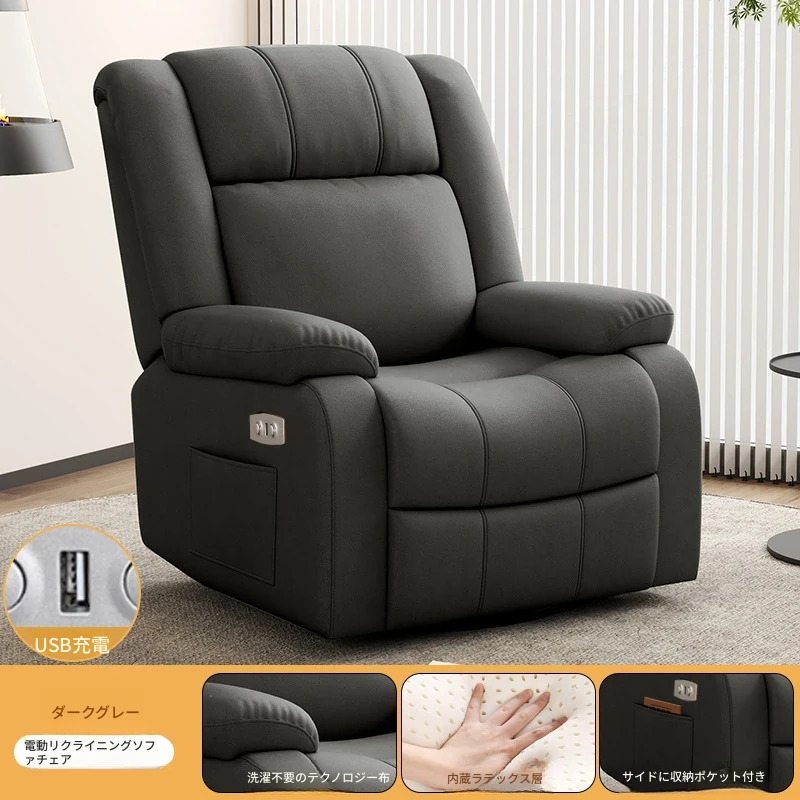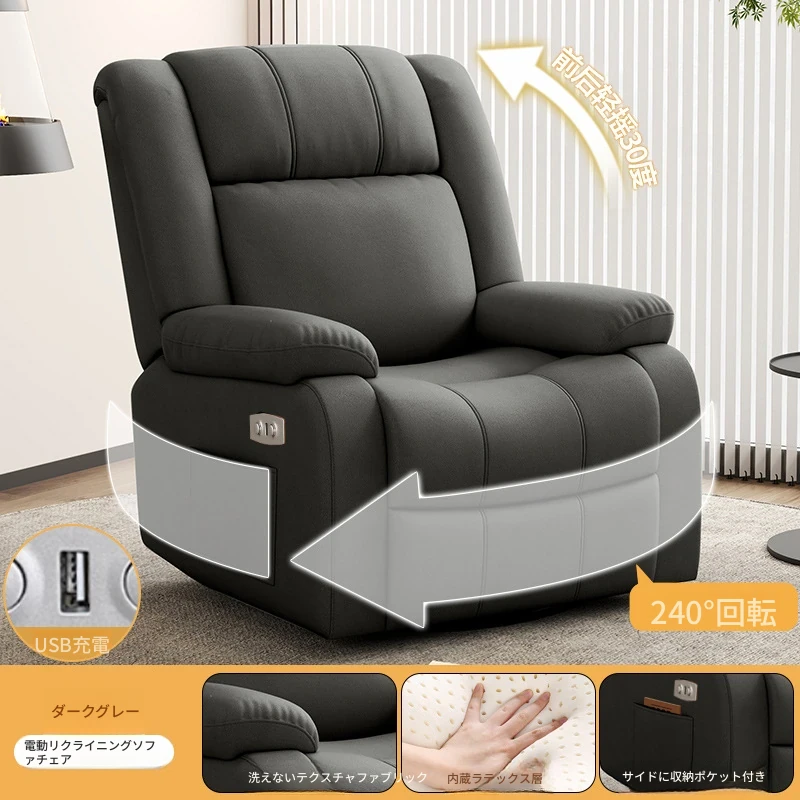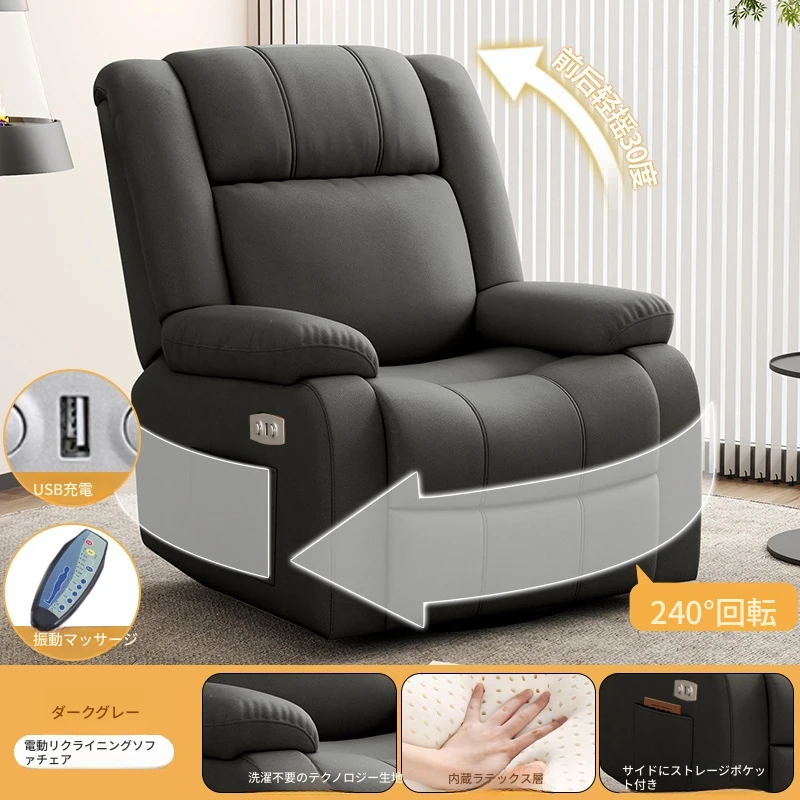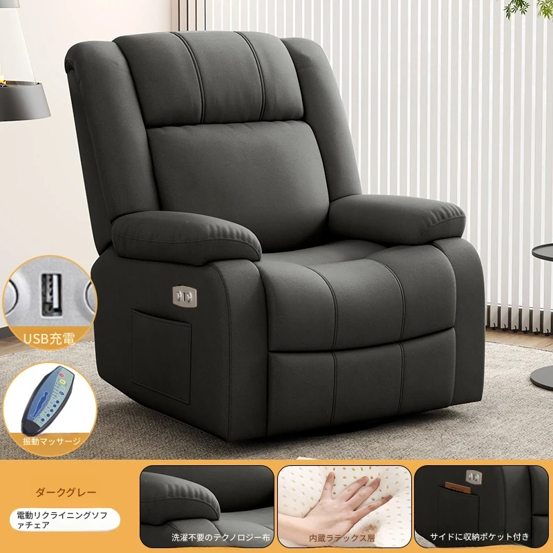 【テクノロジーファブリック】ダークグレー-電動リクライニング+回転+振動マッサージ