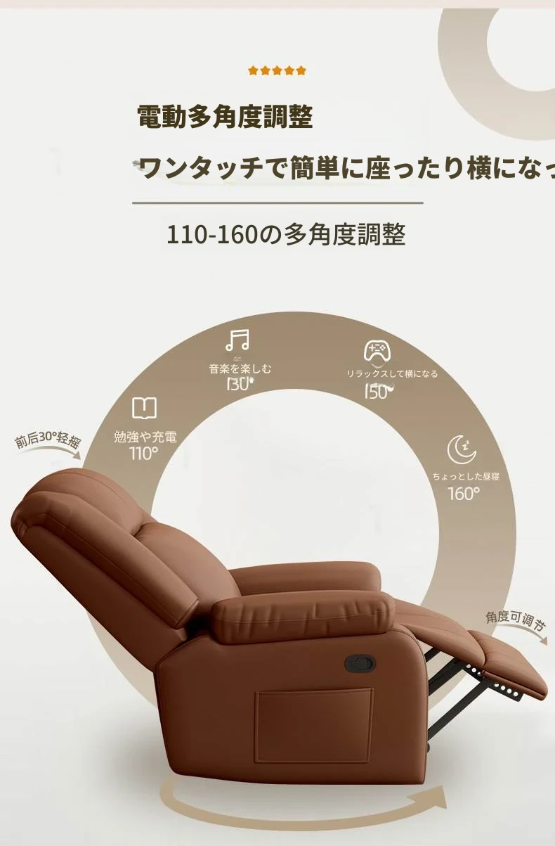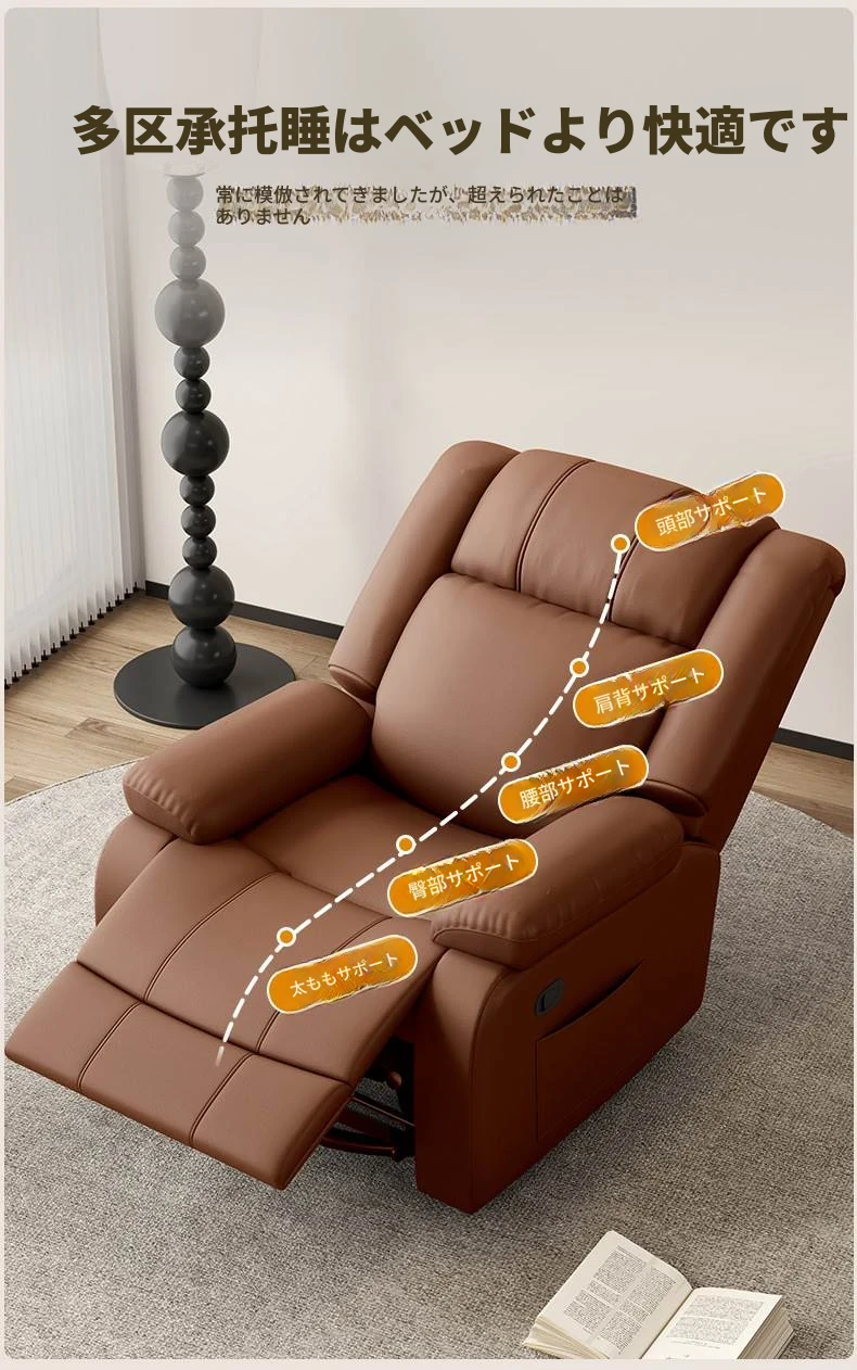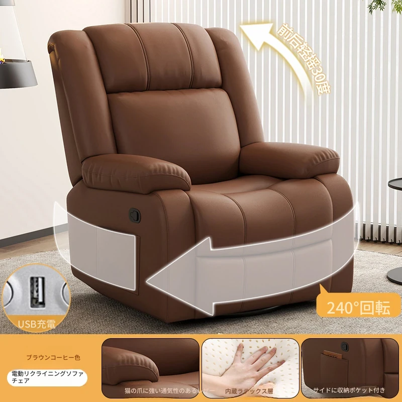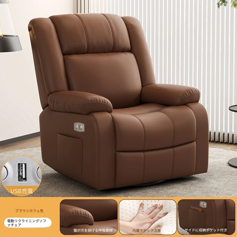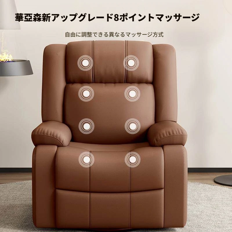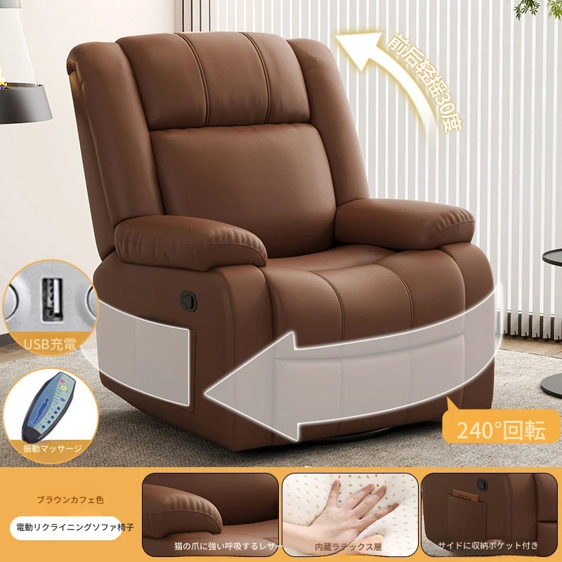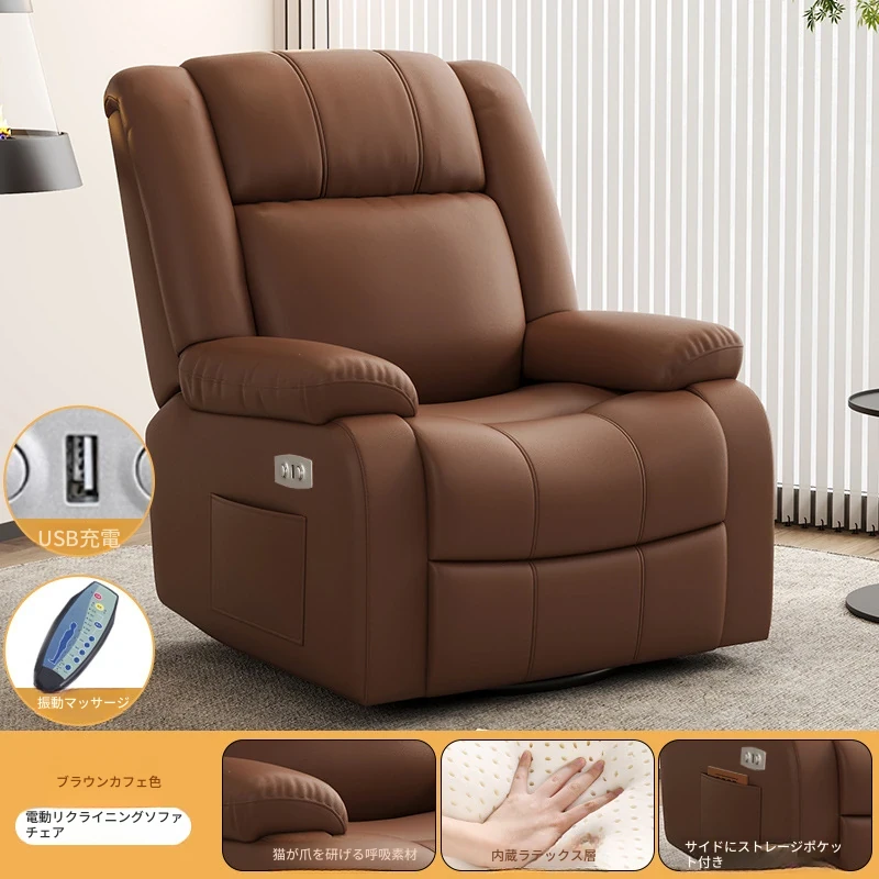 【キャットスクラッチレザー】ブラウン-電動リクライニング+回転+振動マッサージ