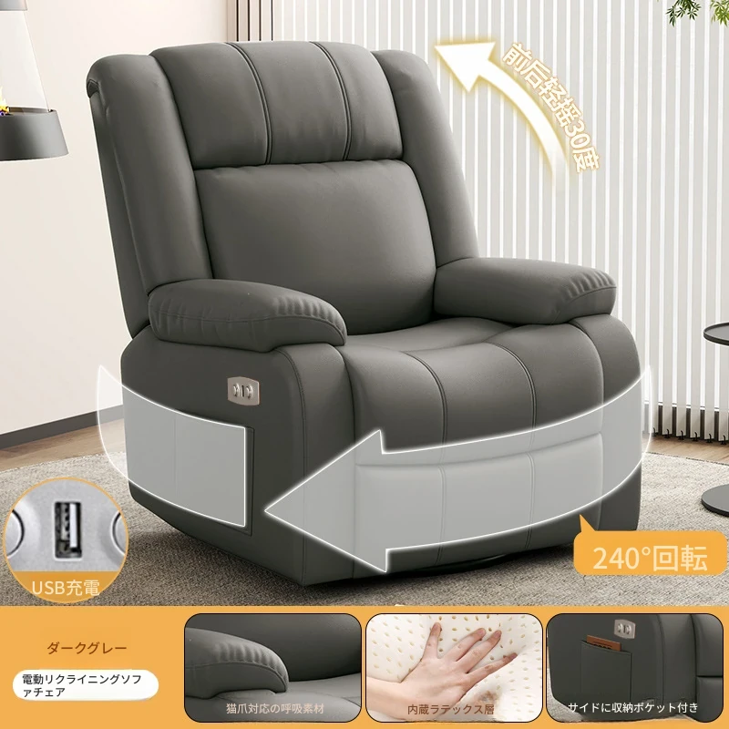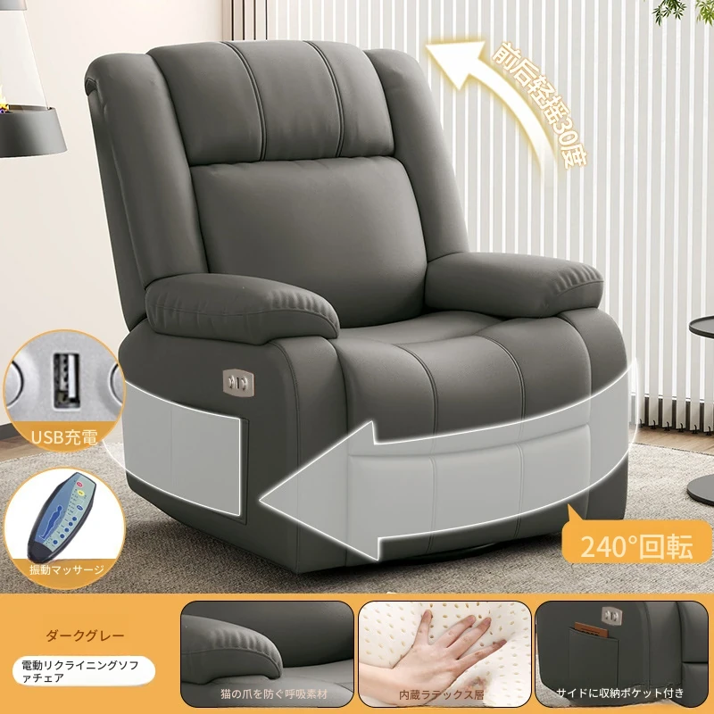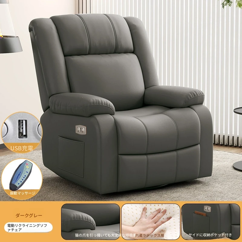 【キャットスクラッチレザー】ダークグレー-電動リクライニング+回転+振動マッサージ