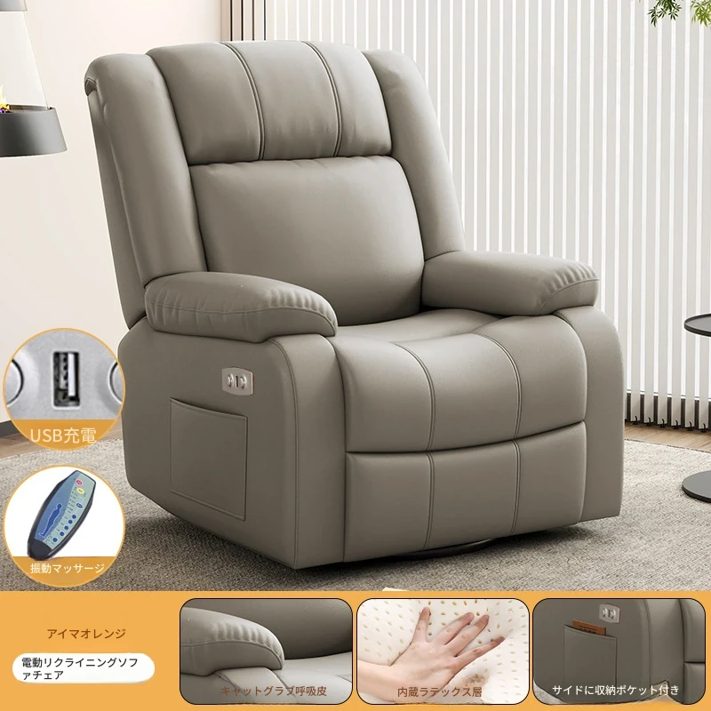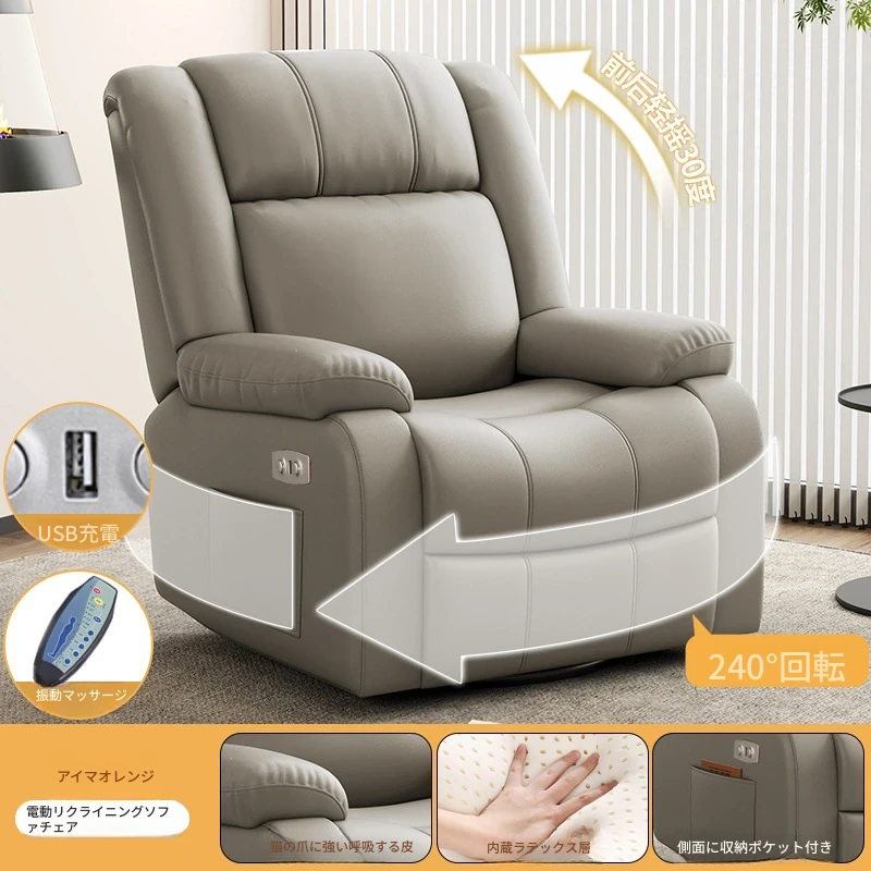 【キャットスクラッチレザー】ライトグレー-電動リクライニング+回転+振動マッサージ
