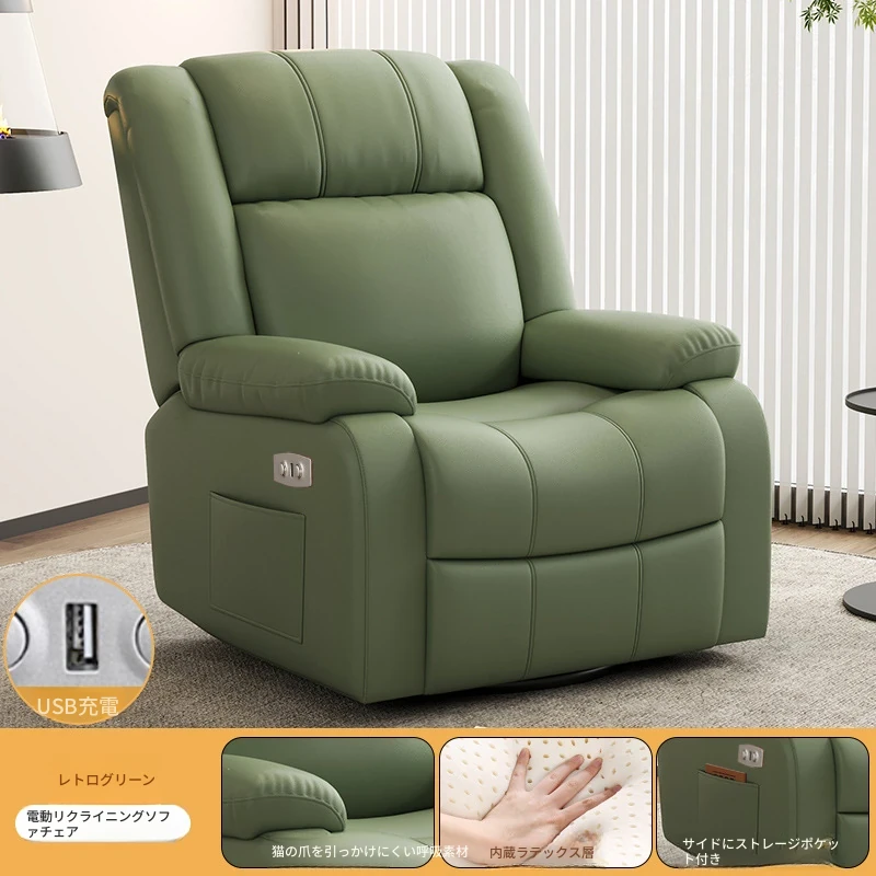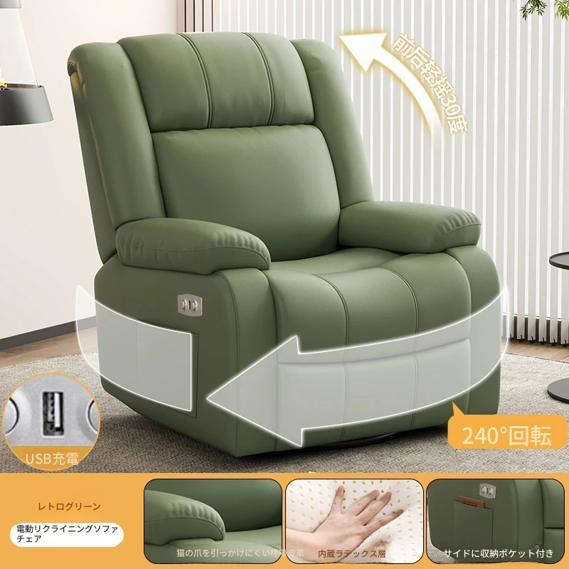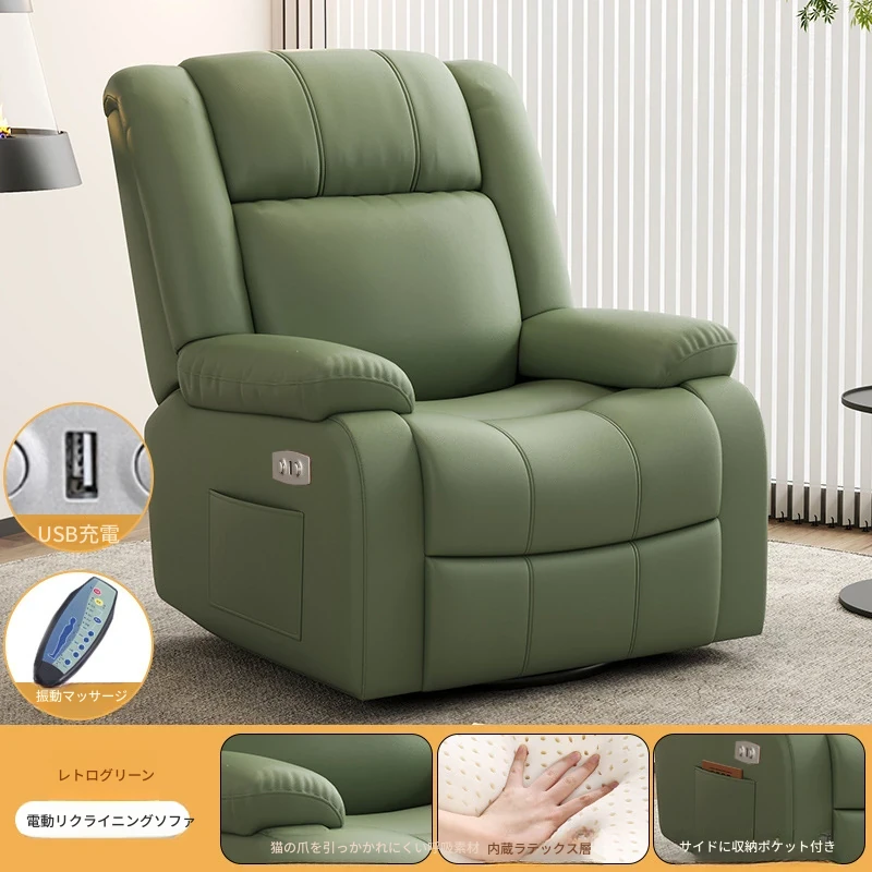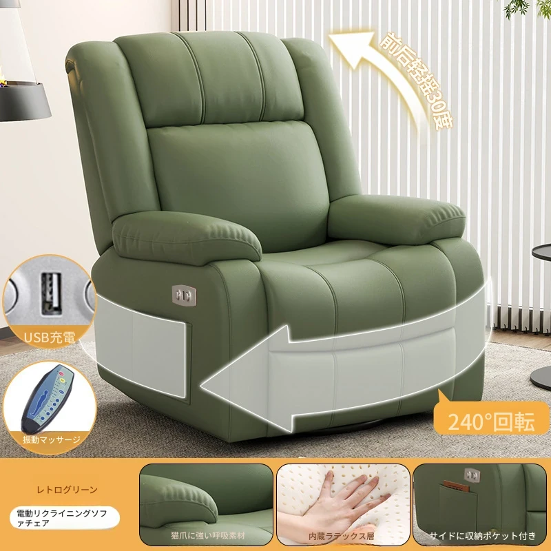 【キャットスクラッチレザー】ビンテージグリーン-電動リクライニング+回転+振動マッサージ